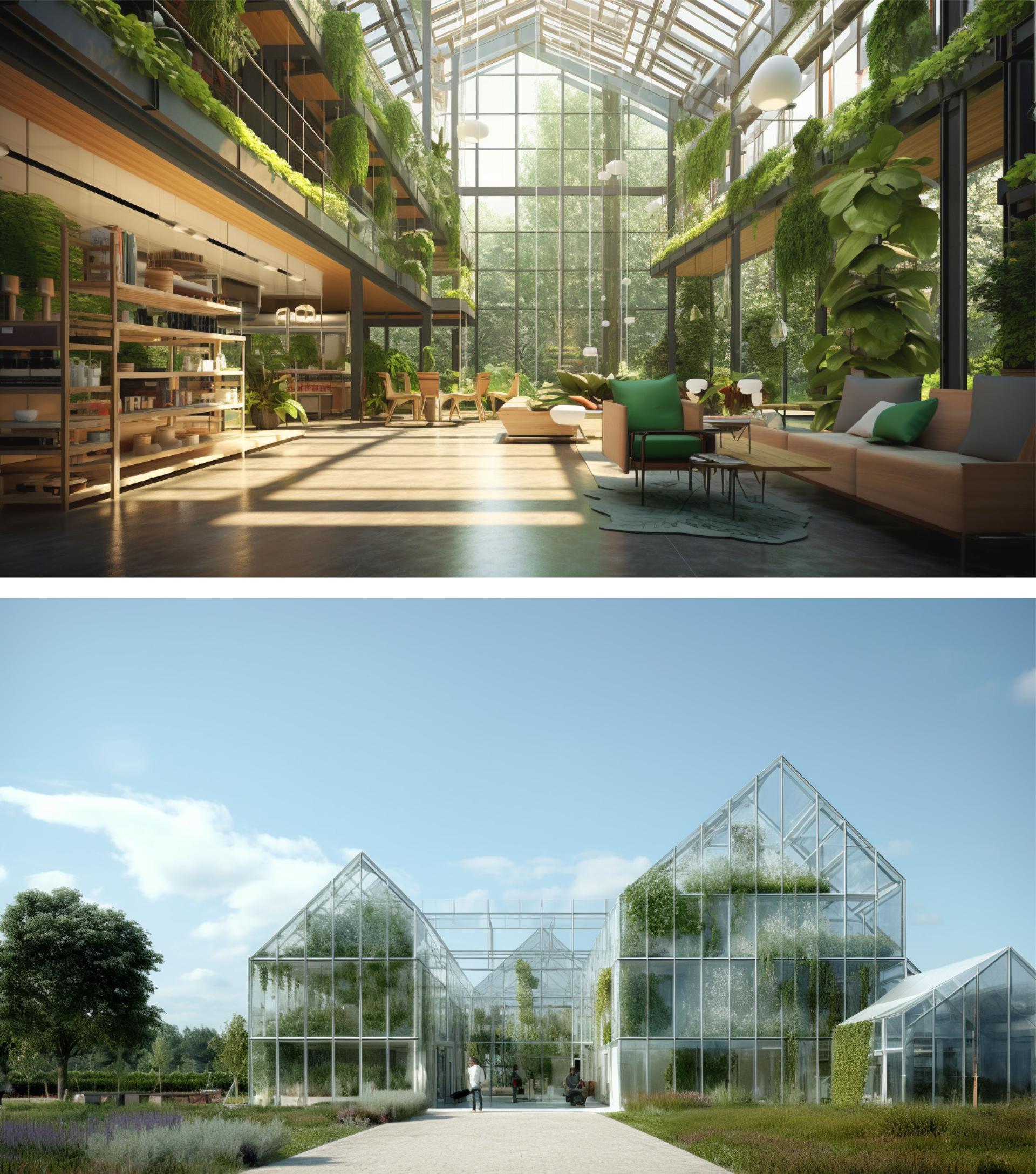 3. Preservation and Regenerative Village: We opt to spread out the new buildings flat, not only to preserve the existing topographical but also to minimize effect to the bird migration flight paths. We encourage mixed functions of the buildings, creating “villages” for I&T residents intertwined with houses, greenhouses and communal facilities atop the I&T buildings. “Farm-to-community” - local villagers farm at the conserved agricultural lands at ground level, connect directly with the I&T community above, creating a sustainable and transparent food system, reduce the distance between producers and consumers, and promote the consumption of fresh, locally sourced food.