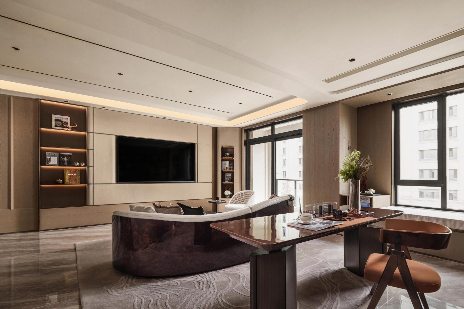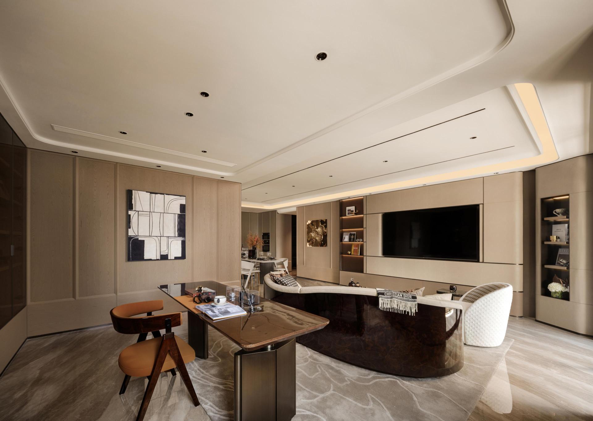 Guided by the concept of Metaverse Integration and Refined Serenity, the design dissolves the boundaries between functions, connecting areas for socializing, reading, and relaxation. Warm materials and gentle lighting shape a multidimensional spiritual atmosphere, reflecting a philosophy of balance and composure in contemporary living. Between openness and stillness, the living area becomes a vessel where art and life coexist in harmony.