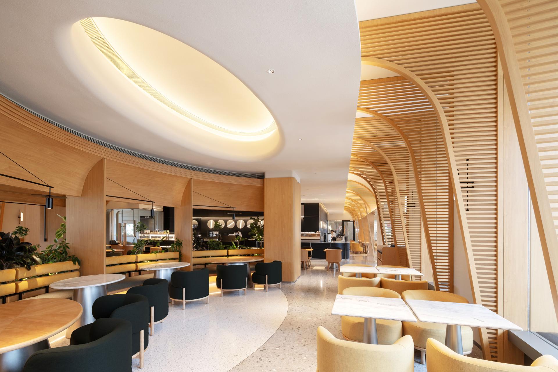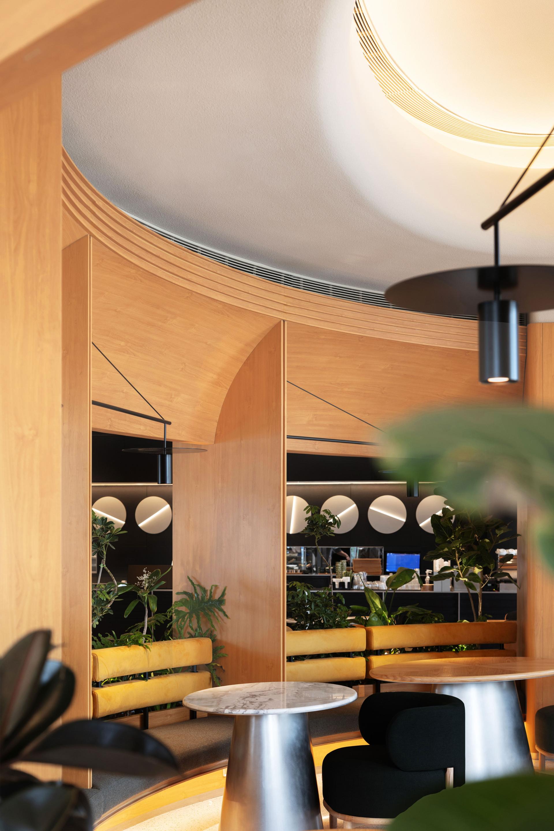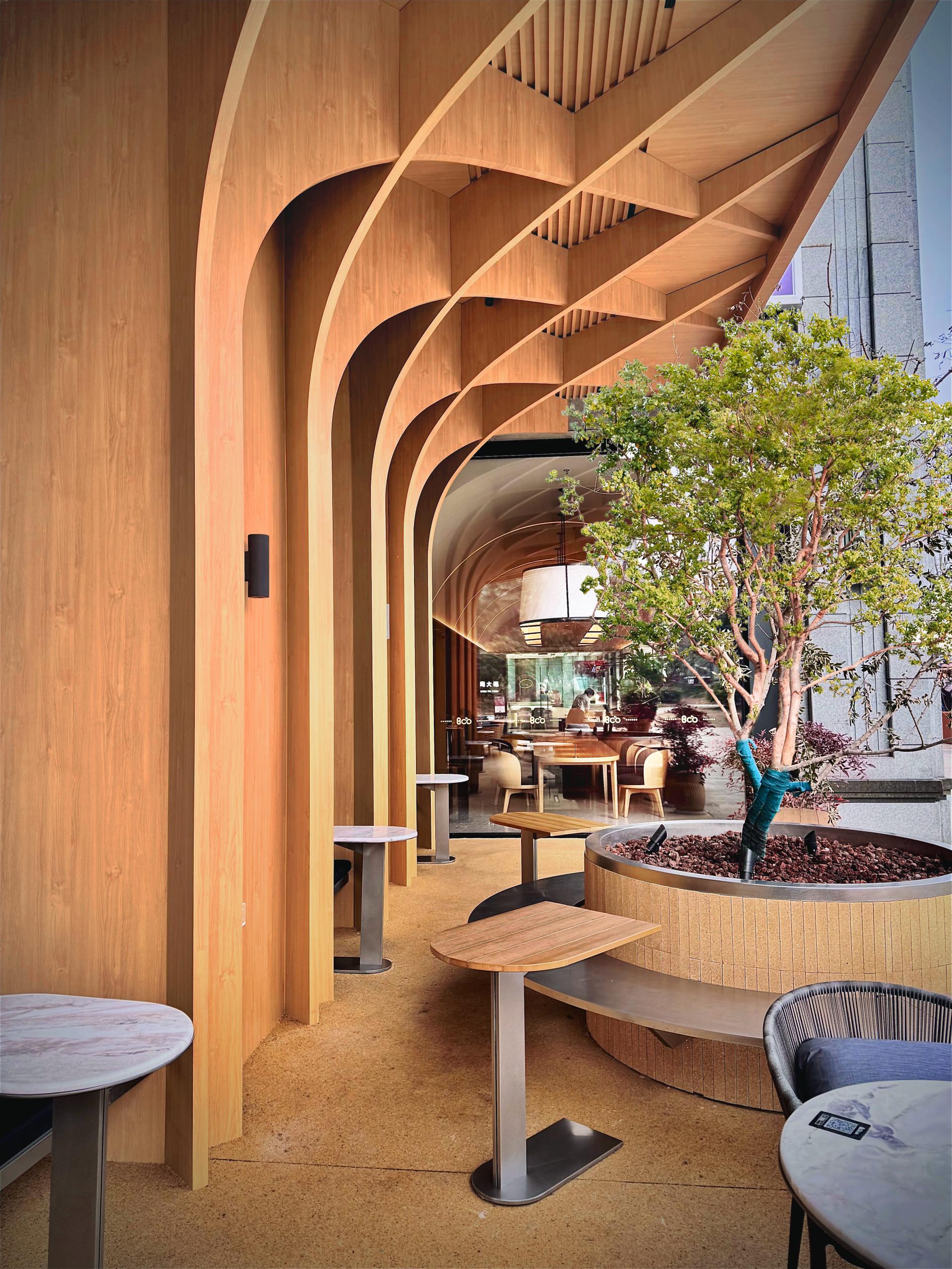 BCO is an emerald in the city’s steel ribs. A seven-meter glass vault spills liquid sunlight over the space, dissolving it into soft silhouettes. The timber bar meanders like a river, while the kettle’s silver stream sketches an improvised violin string in midair. The concrete walls soften into warm rice paper, where moss and ferns grow into breathing mountains. Trailing pothos slip downward like starlight smuggled from the clouds.
