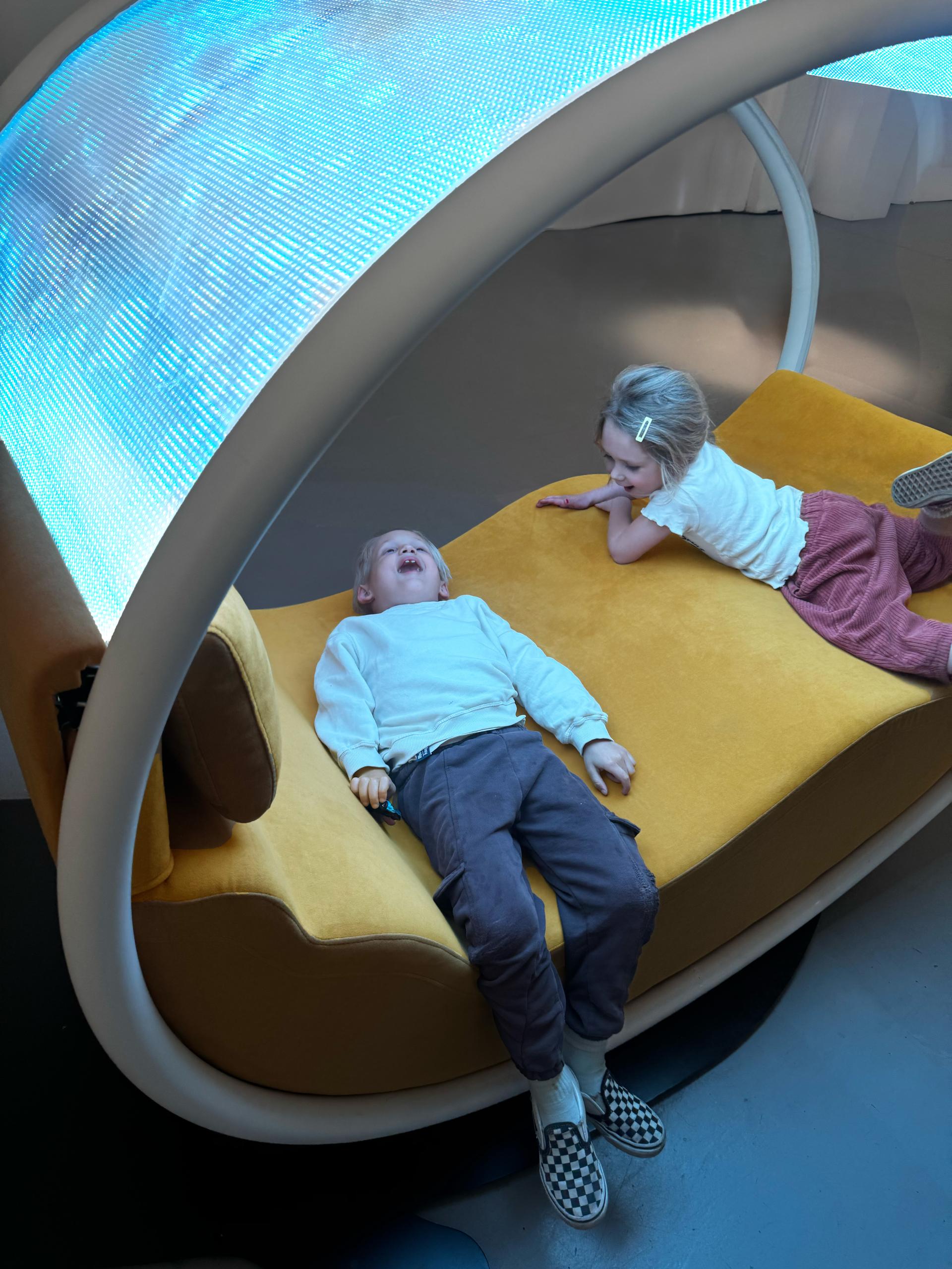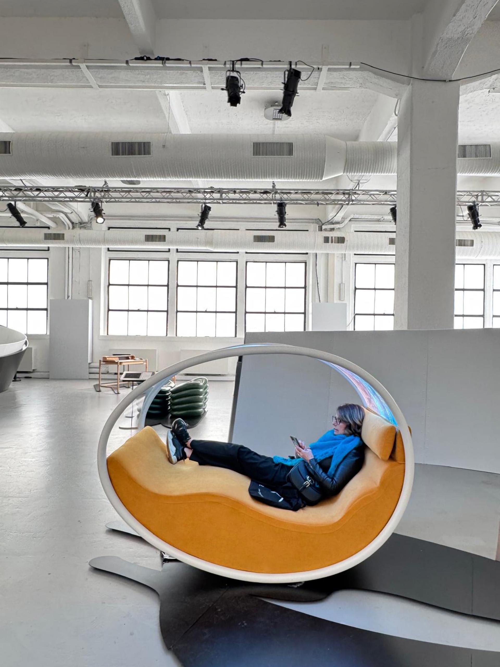 Other than sight, integrated speakers hum with environmental sounds—wind threading through leaves, waves folding onto shore. The “Egg-citing” is more than a piece of furniture but a threshold between the self and something vaster.