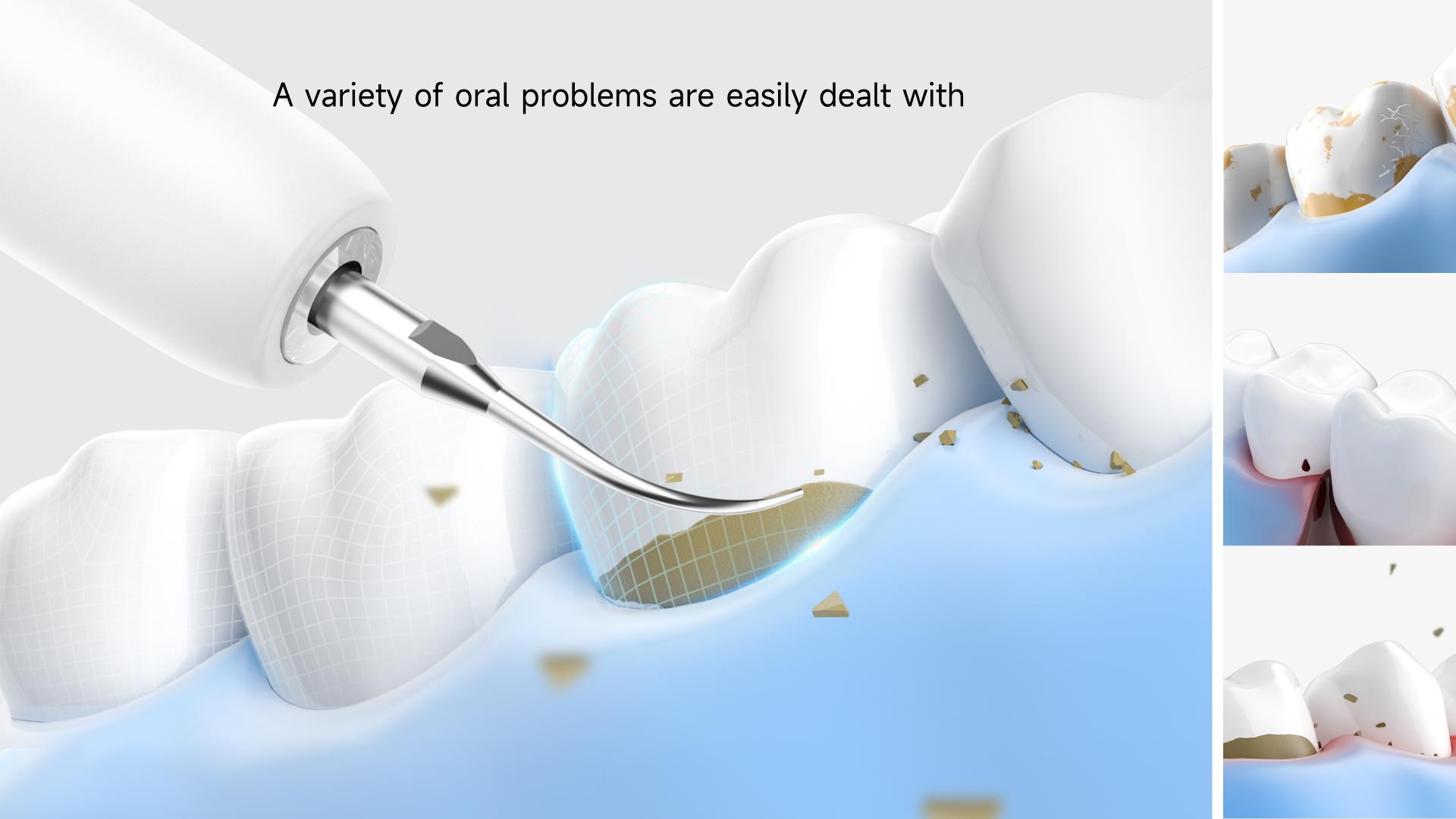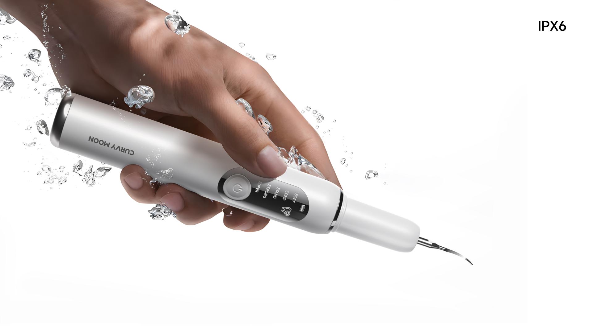 This ultrasonic dental cleaner is equipped with advanced waterproof technology and a seamless sealing process to prevent water vapor penetration. lt has an IPX6 waterproof rating, which means the whole body can be soaked and washed. You can use it safely in a wet environment like the bathroom, ensuring both convenience and safety.