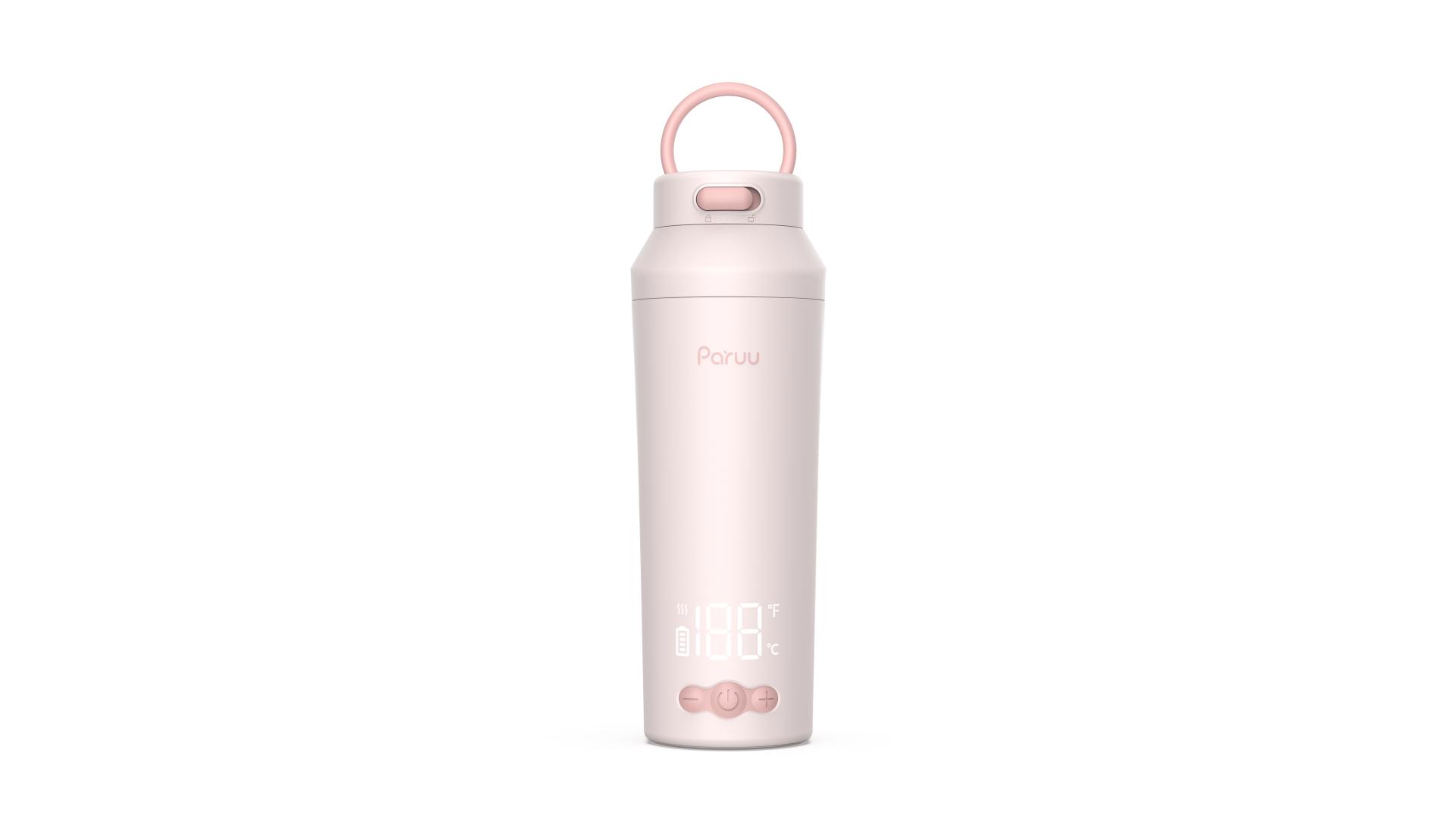Paruu Portable Bottle Warmer MW100 showcases comprehensive innovation in both appearance and functionality. The bottle features a distinctive inverted triangle shape—wider at the top and narrower at the bottom—setting it apart from the typical cylindrical designs on the market. This unique form not only enhances visual recognition but also aligns with ergonomic principles, making it easier to hold with one hand. The dual-sided beveled surface improves grip, ensuring a secure hold even when hands are wet, greatly enhancing safety and comfort during use.