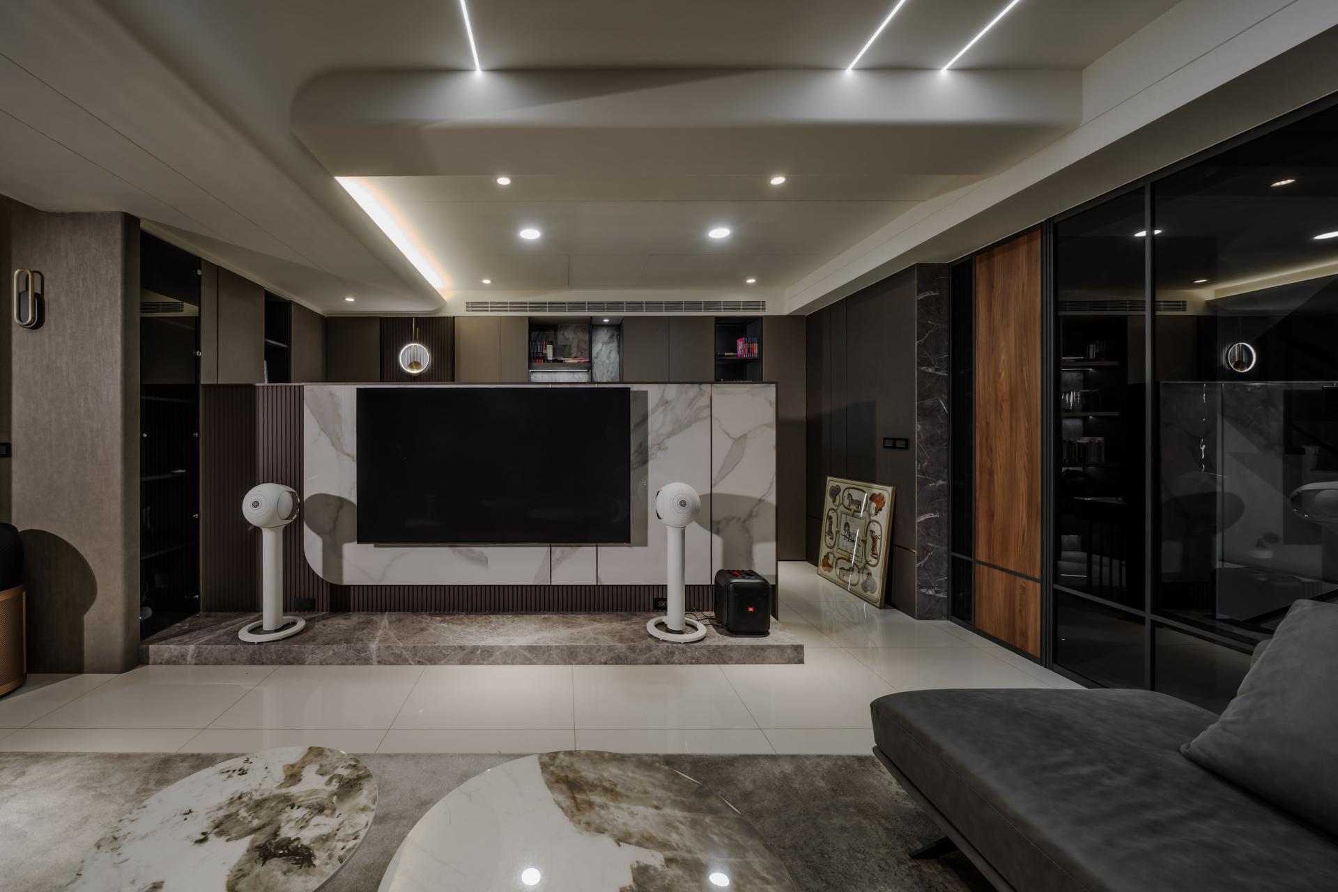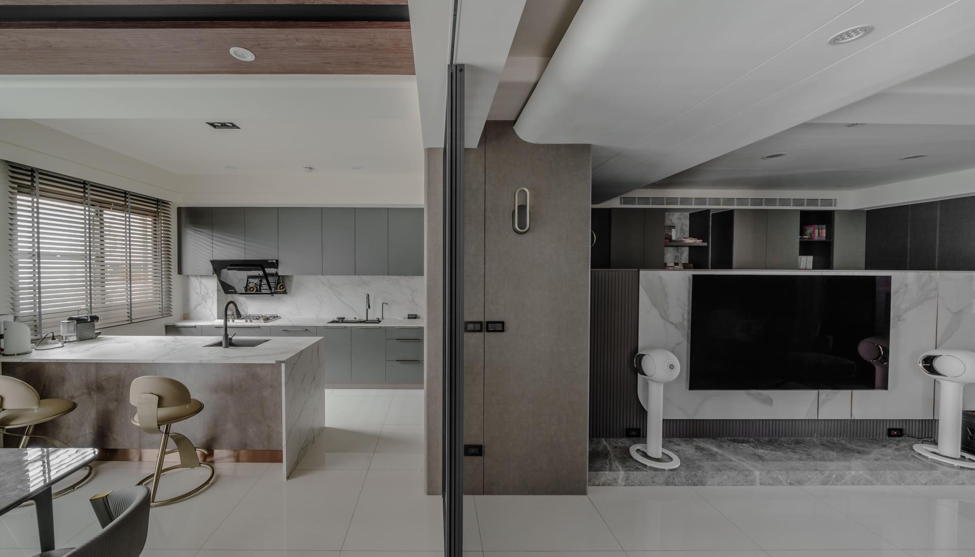 This project harmoniously combines stone, metal, wood grain, and leather to create a sophisticated and inviting home where family members naturally come together. Materials are not just decorative elements, but the core of spatial expression.