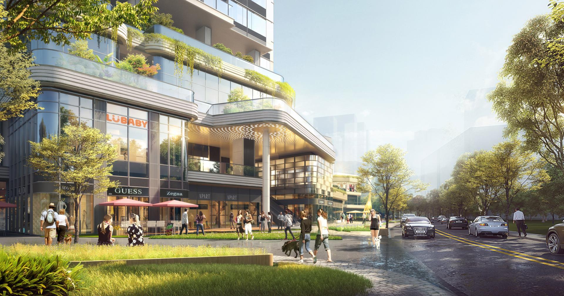 The podium adopts an outward-facing street layout, which optimizes circulation while balancing the interests of commercial resettlement stakeholders. The residential towers feature a butterfly-shaped plan to mitigate the impact of surrounding existing buildings, ensuring that every resettled household enjoys equitable access to views and sunlight.