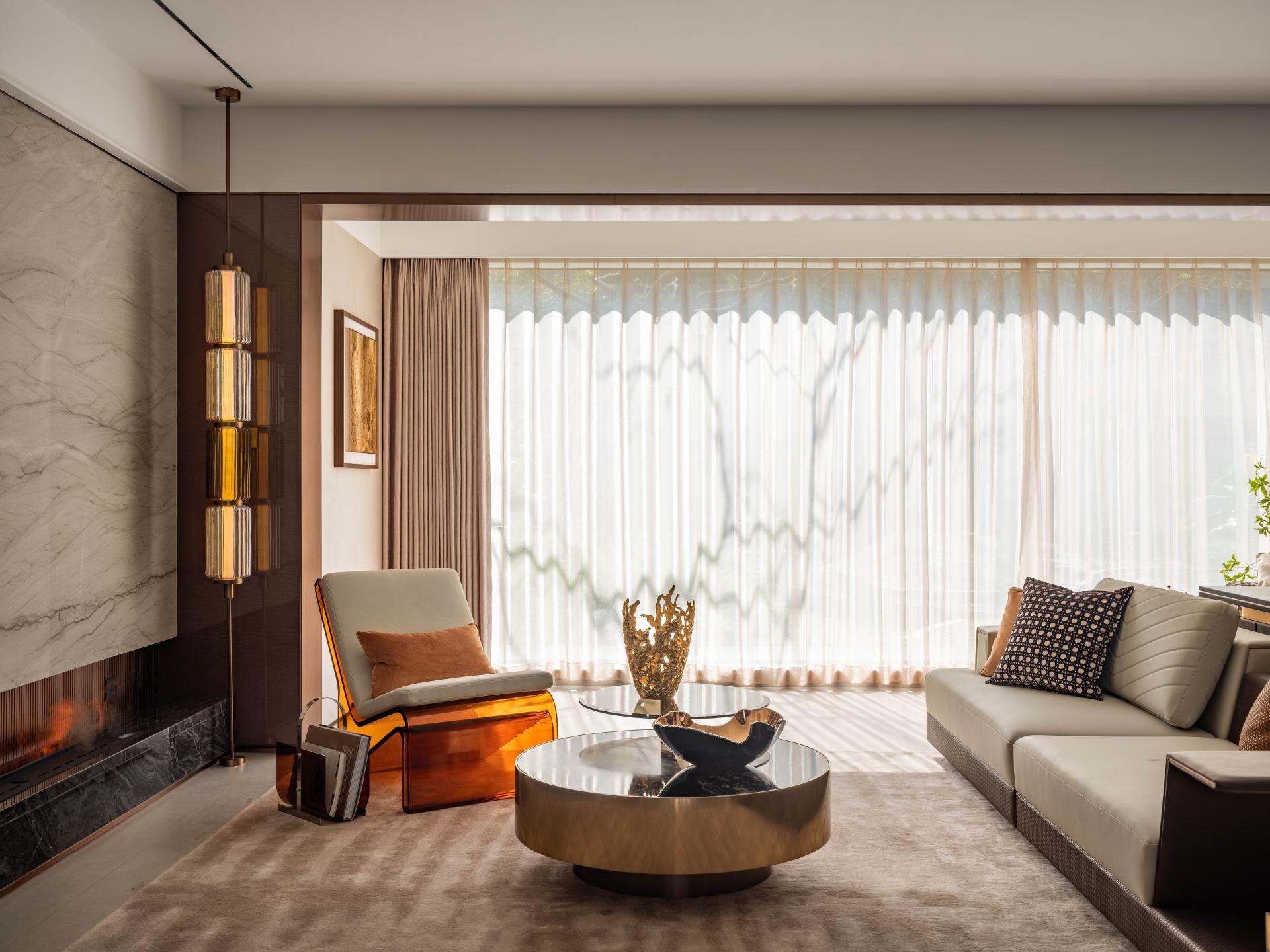 The design of the 128 - model unit in Zhaoqing Poly Langyue Garden takes “Urban Elegance and Tranquility, Quality of Life” as the core concept. The space uses low - saturation colors, combined with warm wood works and exquisite metal lines, to create a calm and yet warm atmosphere.