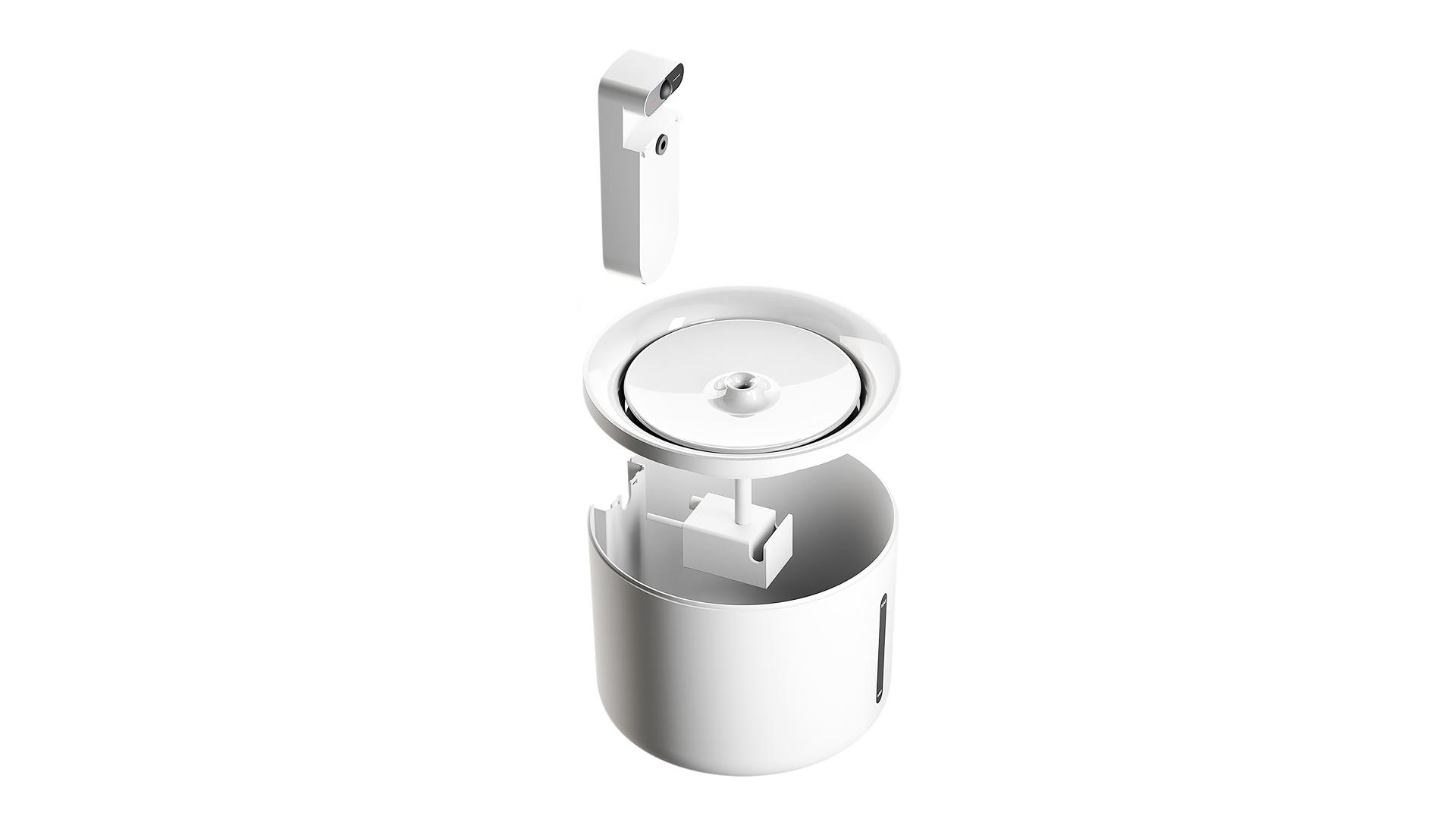 The ET20's design is inspired by animal ethology, the science of animal behavior. By simulating a natural bubbling spring, it awakens your pet's instinctual preference for drinking from moving water, which significantly increases their water intake and effectively reduces the risk of urinary system diseases. Unlike conventional waterfall or static water fountains, the ET20 features a built-in smart sensor that activates the spring-like bubbling as your pet approaches, capturing their attention and encouraging interaction. This fusion of science and nature creates a drinking device that truly "thinks for your pet." The ET20 breaks away from traditional, all-in-one designs with its highly modular structure. The three key modules—the water pump, reservoir, and control unit—can be independently upgraded and freely combined. This caters to the evolving needs of multi-pet households, growing pets, and different budgets. From the entry-level model to the premium version with app-based smart control, users can flexibly swap or upgrade components as their needs change, extending the product's lifespan and reducing the need for complete replacements. A rich selection of accessories, including a wireless sterilization pump, an extra-large reservoir, and a long-life controller, is also available to meet personalized and professional demands. The ET20 is not just functionally thoughtful; it pursues perfection in every detail. It incorporates a silent water pump with a ceramic shaft, a unique guided water return structure to prevent splashing sounds, and an inner-wall buffering design for the water flow. This brings the noise level down to a mere 16dB—far quieter than the industry average—ensuring a peaceful night's sleep for both you and your pet. Visually, the ET20 features a clean, cylindrical design. Its pure white body is complemented by the top sensor, creating a fresh look and allowing for intuitive operation. The water level indicator is discreetly placed on the side, serving as a useful reminder without disrupting the overall minimalist aesthetic. The ET20's water quality management system embodies its "health-first" philosophy. Its five-stage filtration system combines both physical and chemical purification to ensure pristine water.