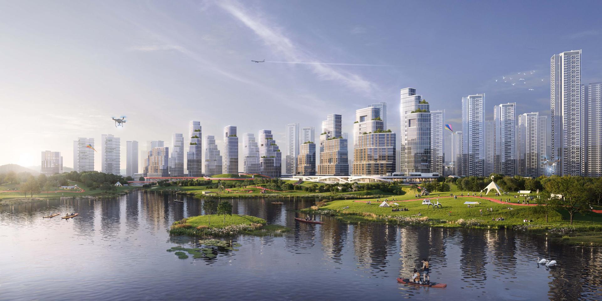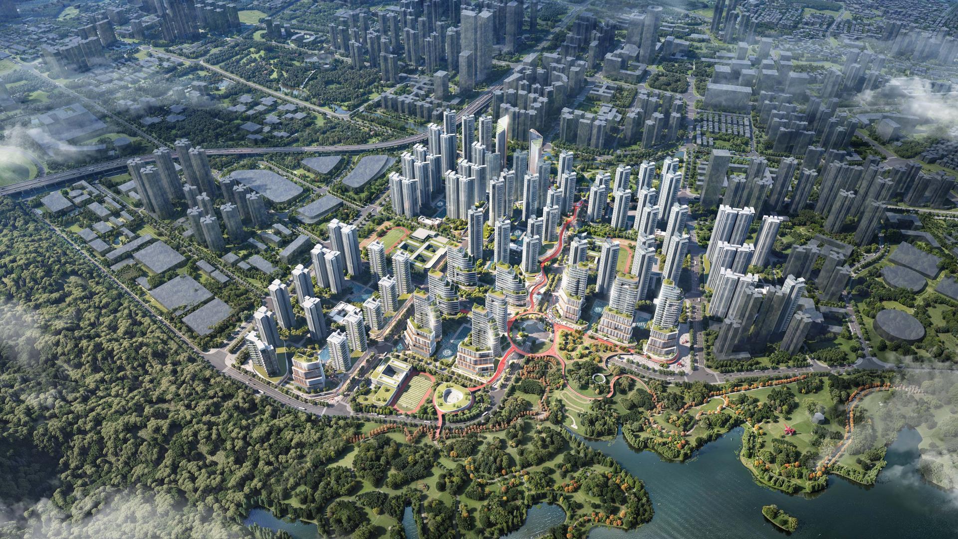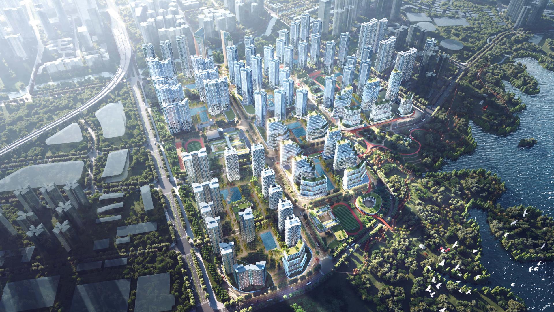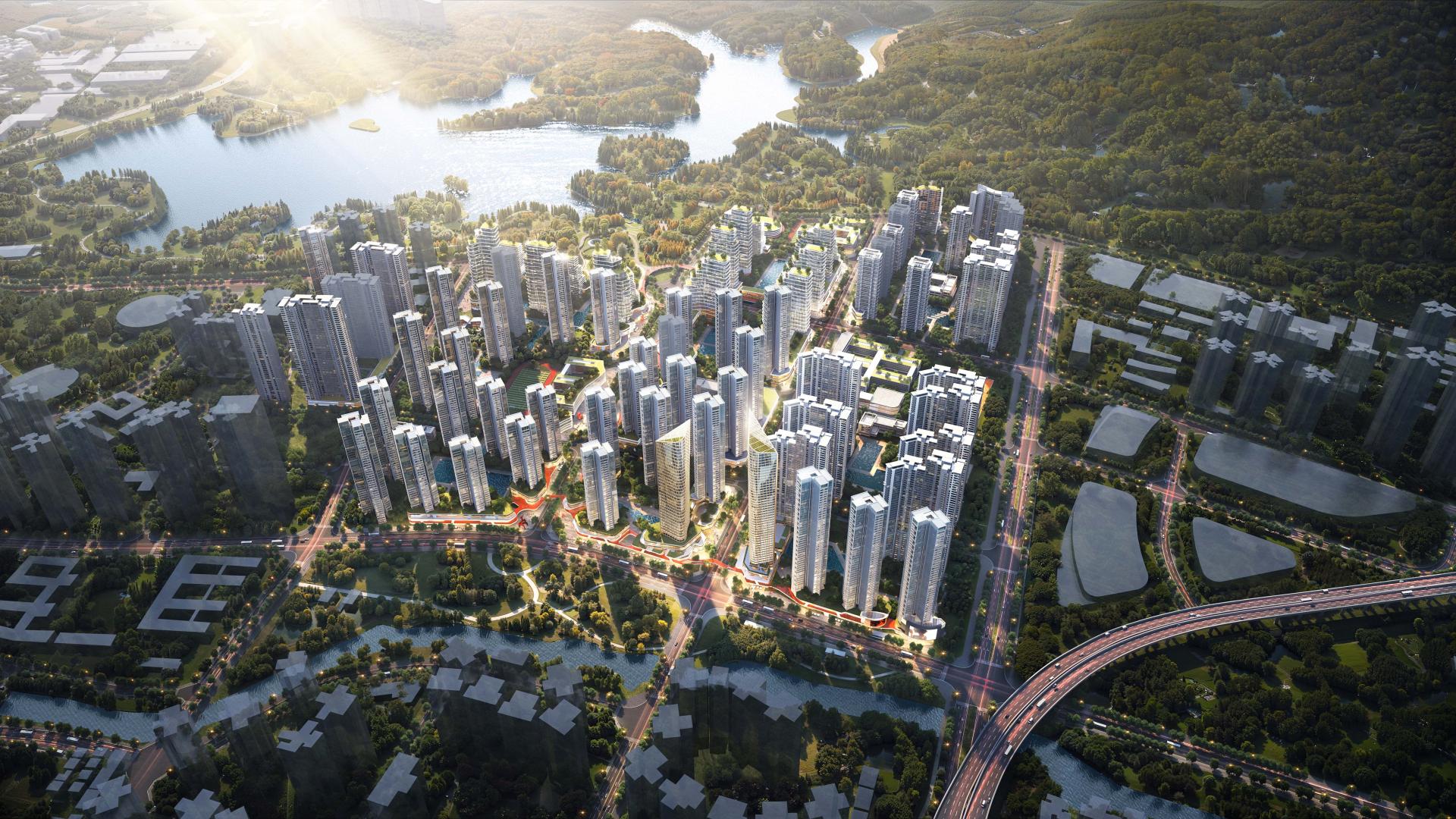 Envisioned as a "Future Mountain-Water Community", the project places special emphasis on creating harmonious green-blue spaces while implementing TOD principles around metro stations, establishing a vibrant, 24-hour livable environment. The architectural design incorporates cutting-edge innovations including intelligent building facades, low-altitude economy applications, new urban infrastructure, and fourth-generation residential concepts. These elements collectively shape an international-grade, eco-conscious community that balances leisure, commerce, and high-quality living within a natural framework.