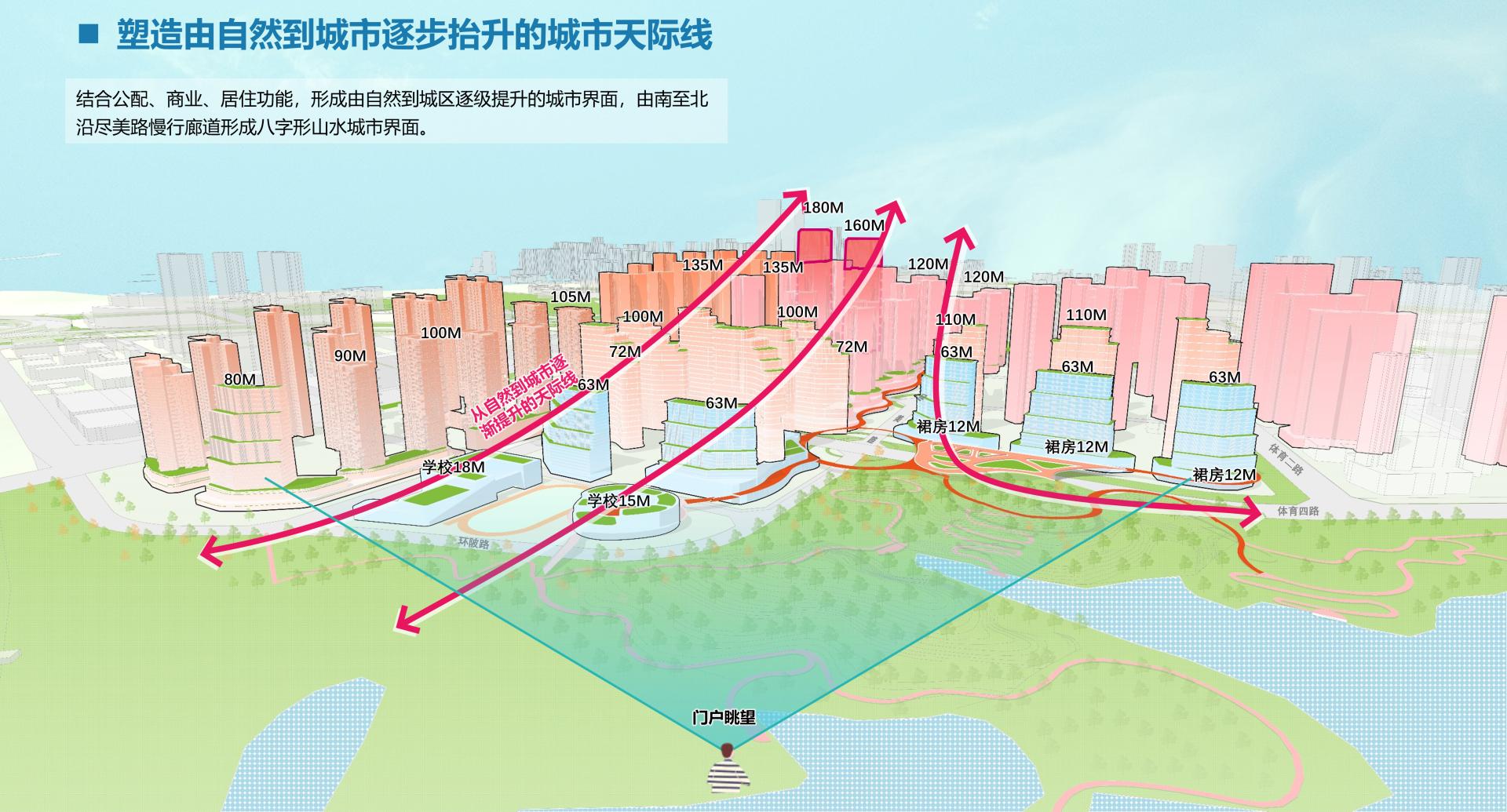 Leveraging its prime central location, metro connectivity, and unique mountain-water landscape, the project harmonizes urban development with nature through the following strategies: