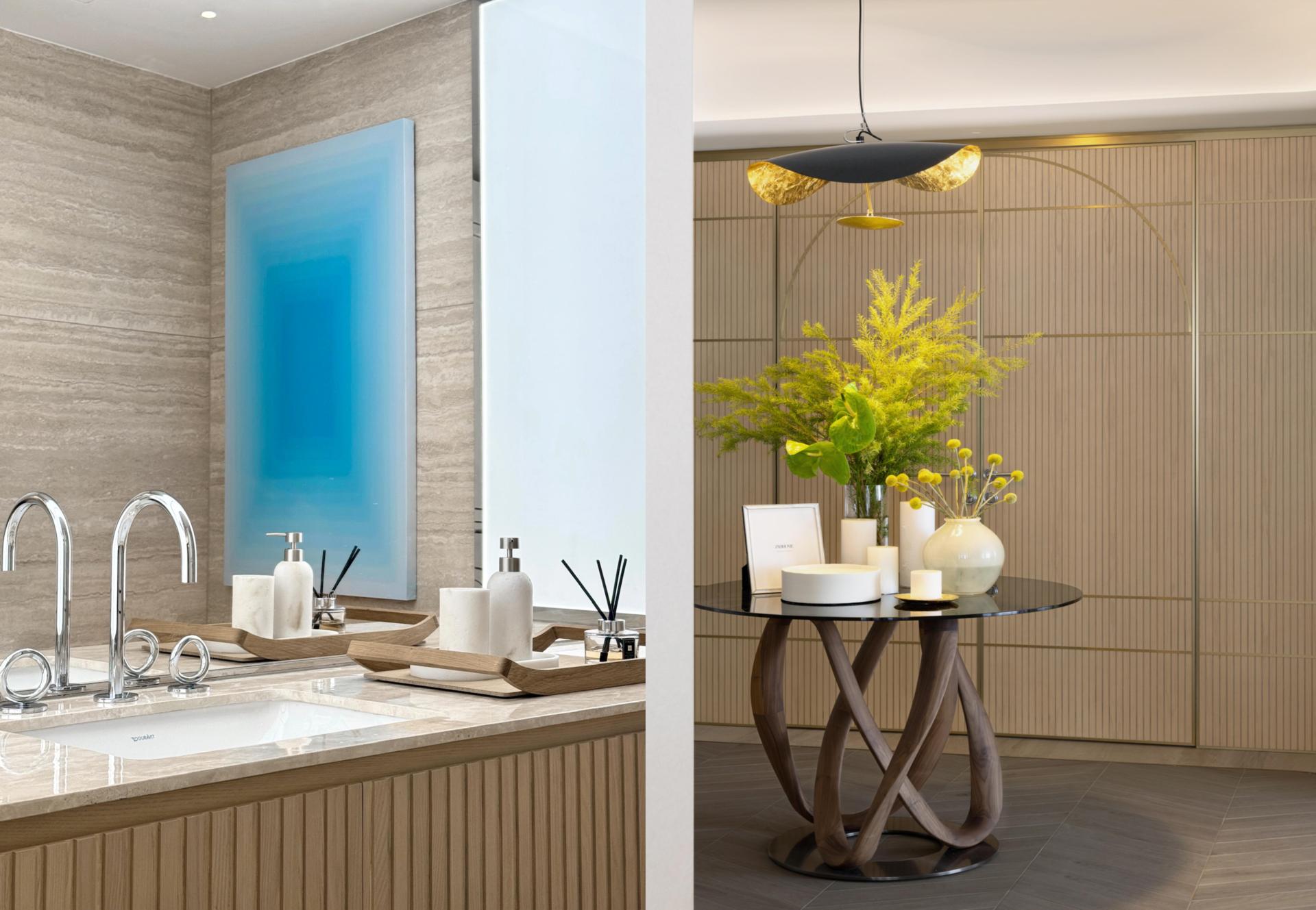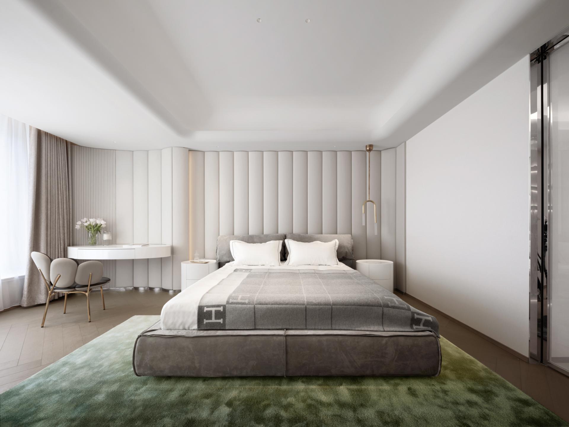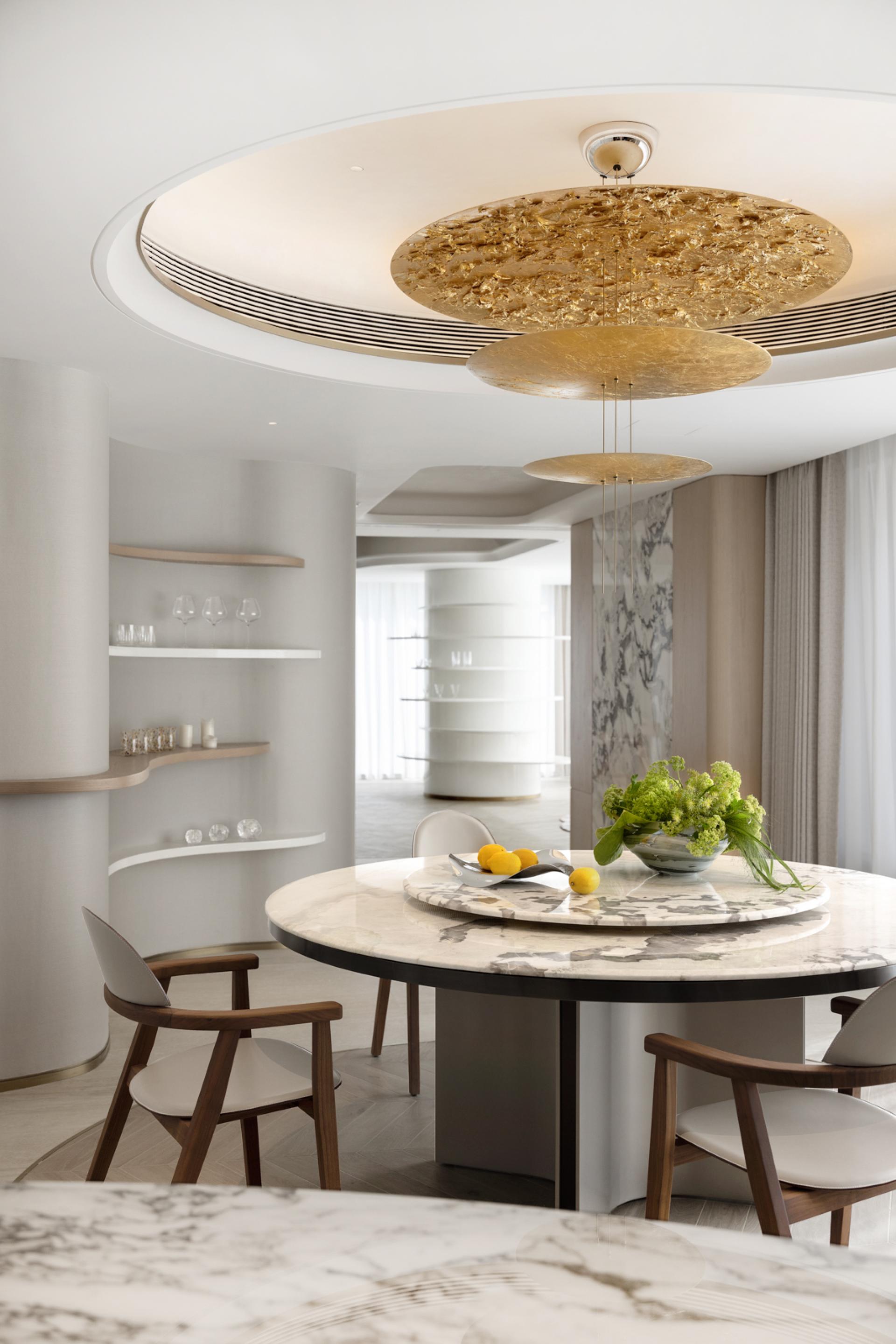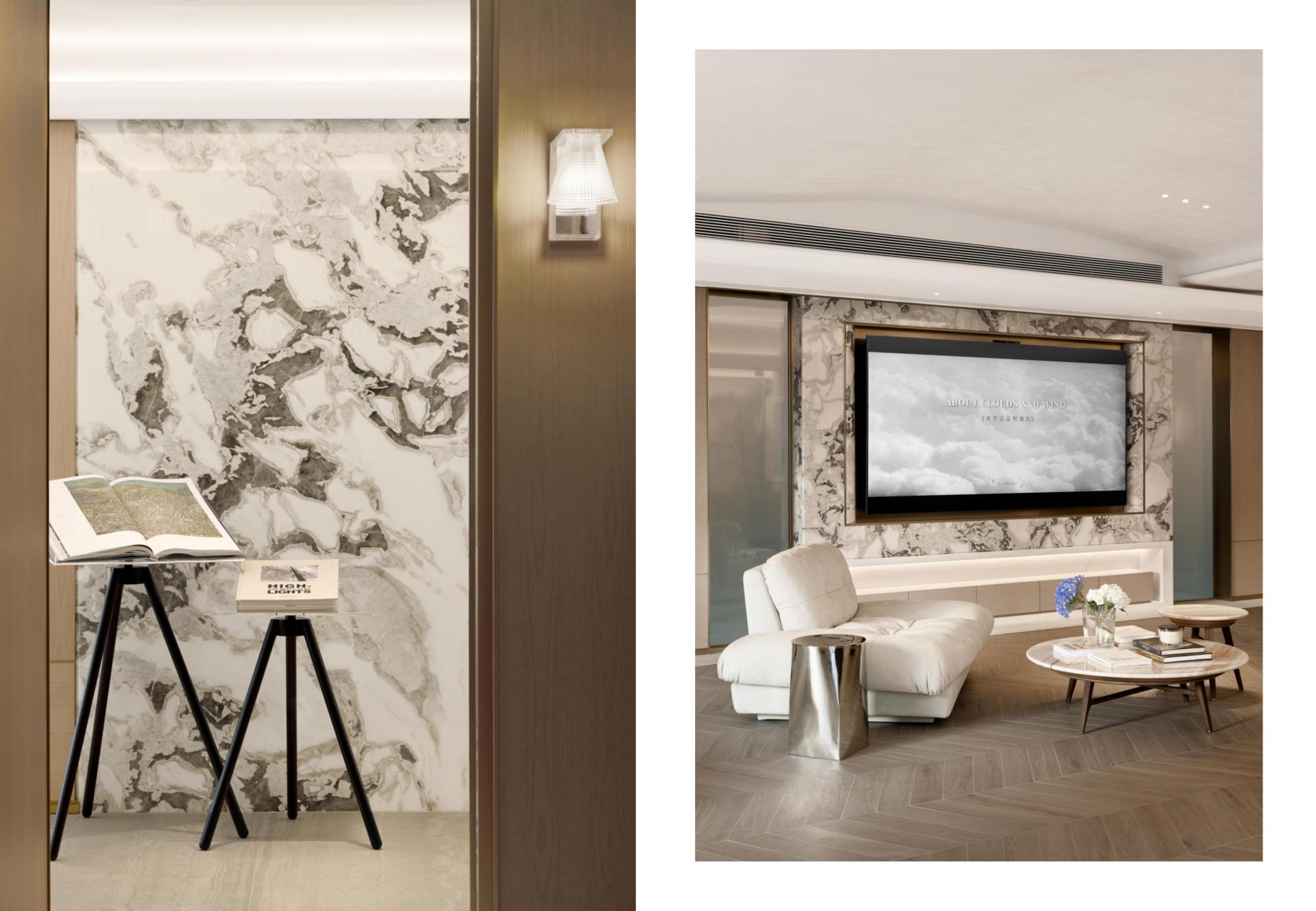 project is located in the CBD of Xi'an New District, and the owners have studied abroad for many years and have received multicultural influences. FL+Design team took this as an opportunity to reorganize the definition of “home” for them. The designer cleverly handled the abrupt beams and columns. The ceiling naturally forms waves, and the columns are surrounded by display shelves, with random shapes that resemble a gentle breeze. The clever design makes them part of the functional and aesthetic design, blending seamlessly with the space. When the artistic design language meets with the life trajectory of the residents, the space becomes a flowing dialogue, which is not only a game of rationality and sensibility, but also a symbiosis of functionality and poetry. Designers creates not only a container for furniture, but also a growing art space, where the clients' stories continue to ferment, and ultimately create unique spatial imprints.