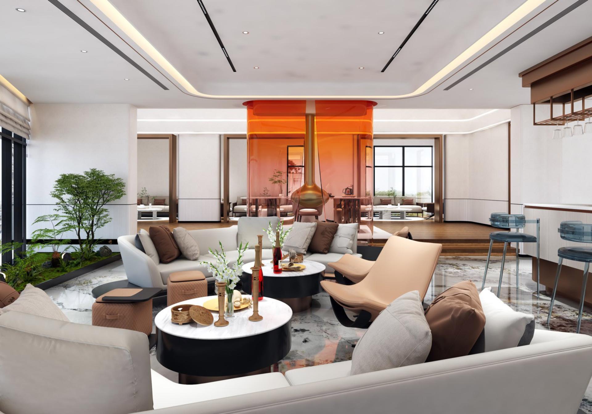 In terms of technological application, the exhibition area is equipped with electronic screens to dynamically display project infor-mation, and the negotiation area is set up with intelligent interactive devices. The intelligent lighting system automatically adjusts the light environment. In terms of environmental protection design, it adopts marble flooring, low-formaldehyde paint, arranges green plants to puri-fy the air, and is equipped with a rainwater recycling system.