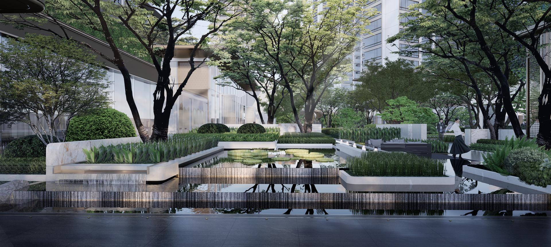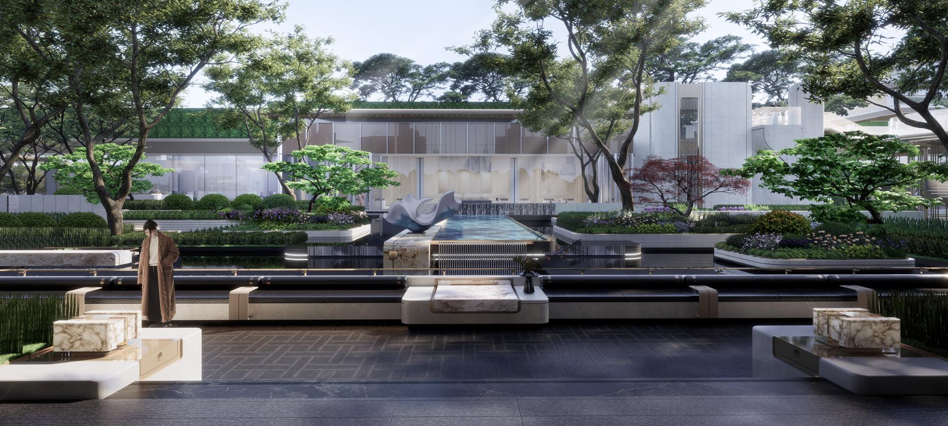Located in a rapidly developing urban area rich in natural resources, this landscape project responds to the modern desire for harmony between city life and nature. Inspired by the theme of "Blue Sea and Forest Islands," the design transforms a residential environment into a tranquil retreat that reflects both ecological values and high-end aesthetics. Seven key landscape zones—including a sunken courtyard, waterfront, and flower street—form a layered spatial experience grounded in nature, art, and human comfort, offering residents a serene and emotionally engaging environment.
