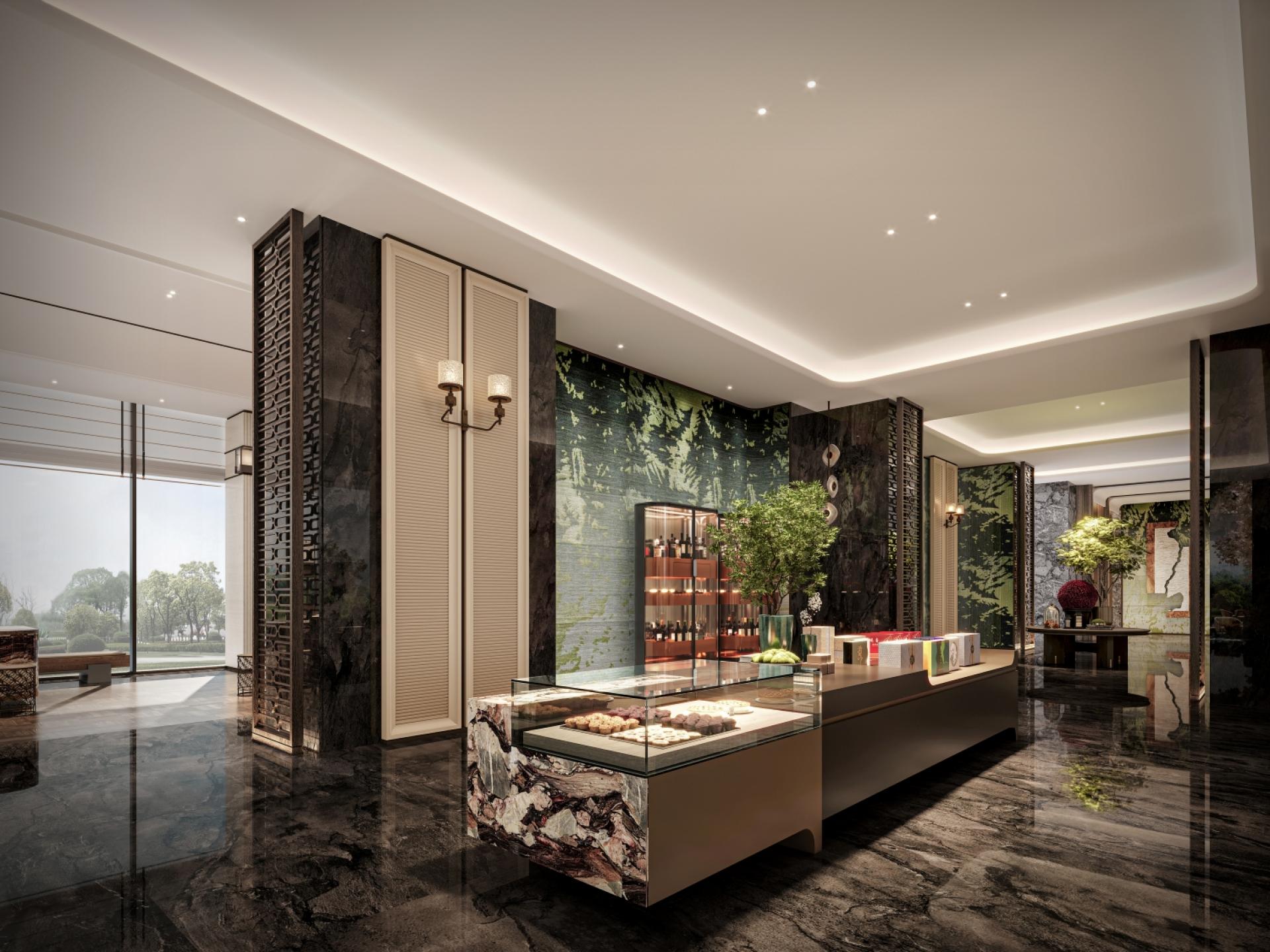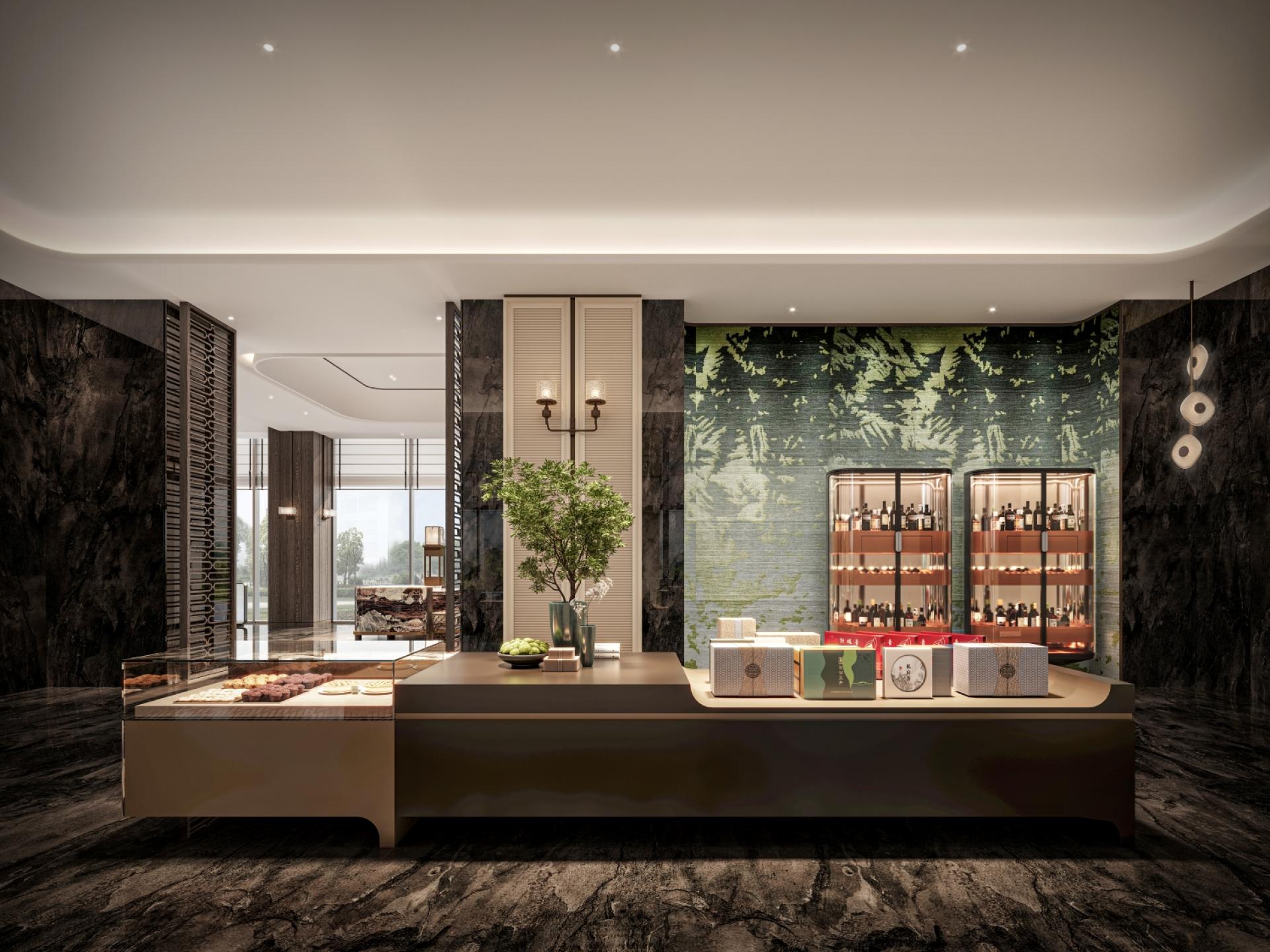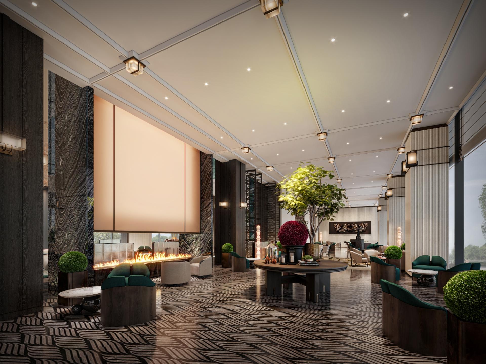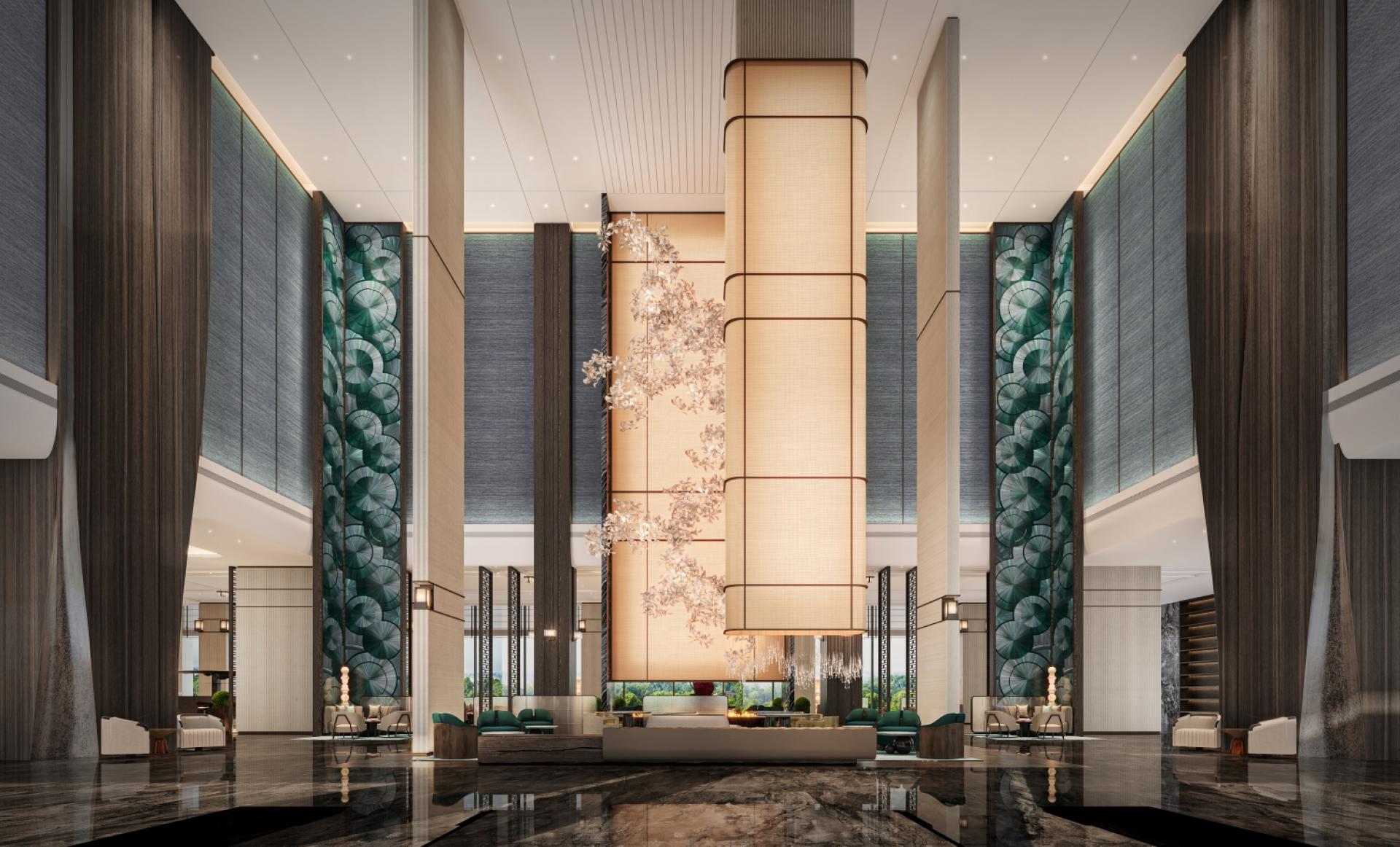Inspired by Sulawesi Island, Wenzhou Sulawesi Hotel translates the is-land’s tropical forests and rare-earth nickel mines into an immersive resort under the theme “Gift of the Red Earth.” Lobby columns echo rainforest roots while light installations evoke hidden ores. In the all-day diner, perforated metal screens and nickel-alloy leaves merge industry with nature. The wellness zone suspends kinetic bird-like art above the pool and lines the spa with veined, translucent stone to narrate the island’s geology. Guestrooms in earth tones feature nick-el-vein textures, floor-to-ceiling frames of forest canopies, abstract island murals, and bathrooms that balance terracotta with metal. Every step journeys through a tropical mineral realm.