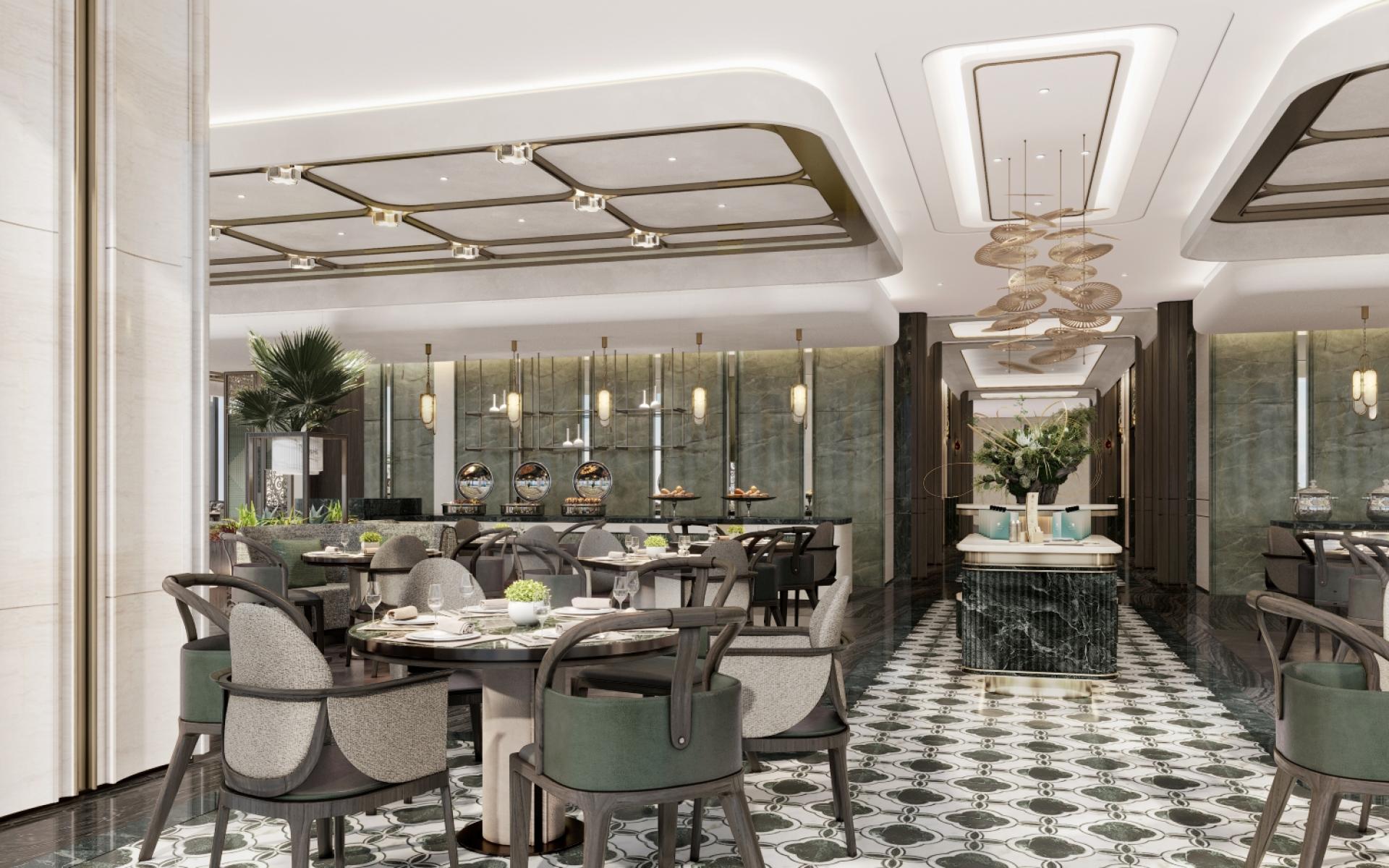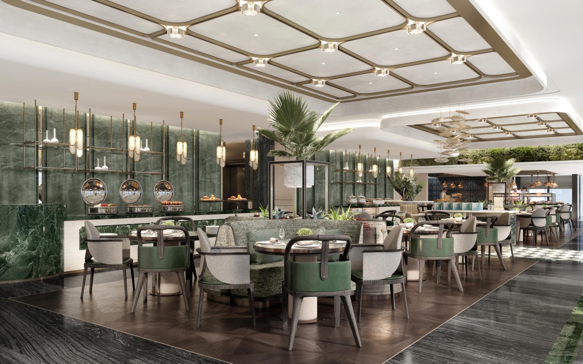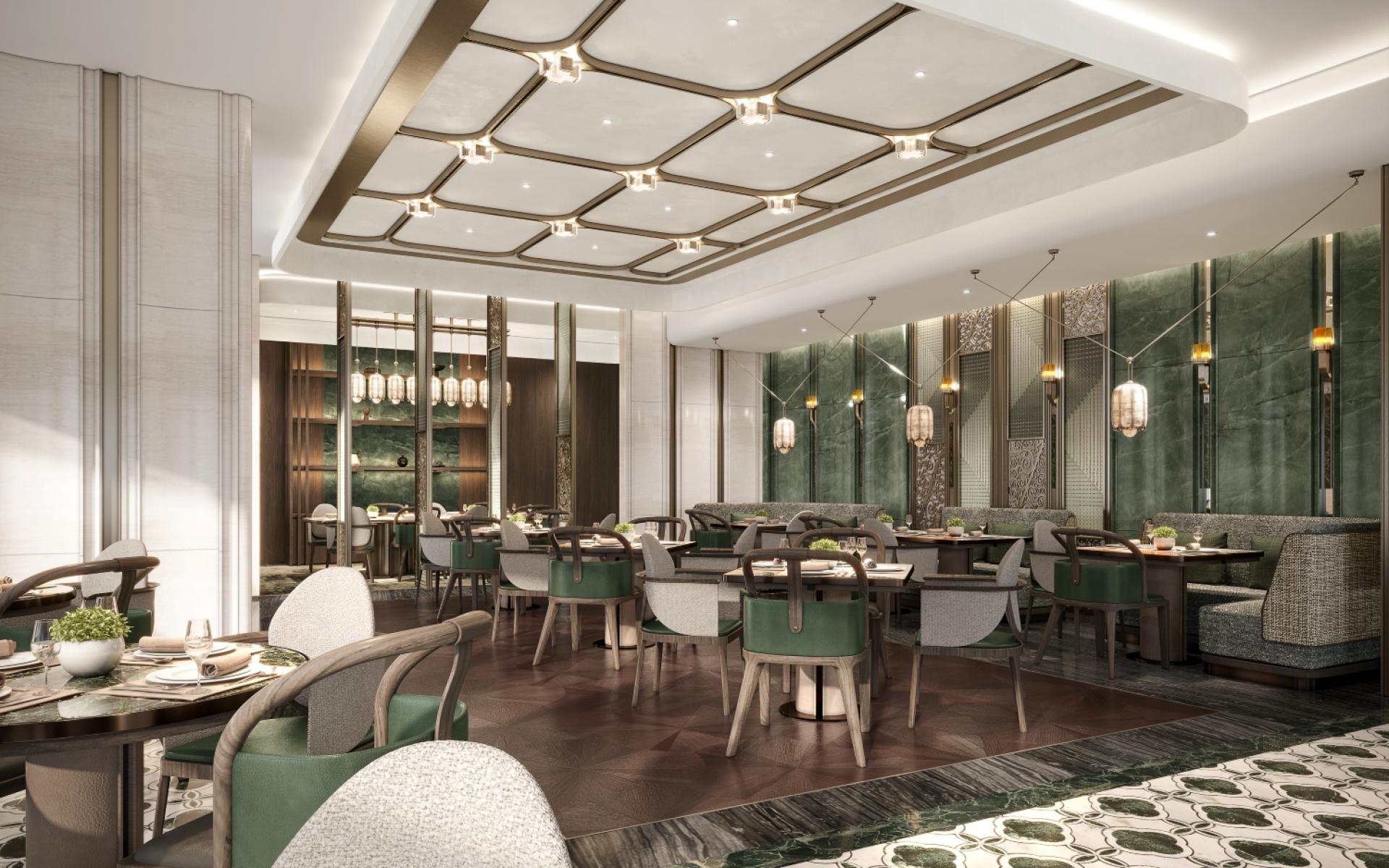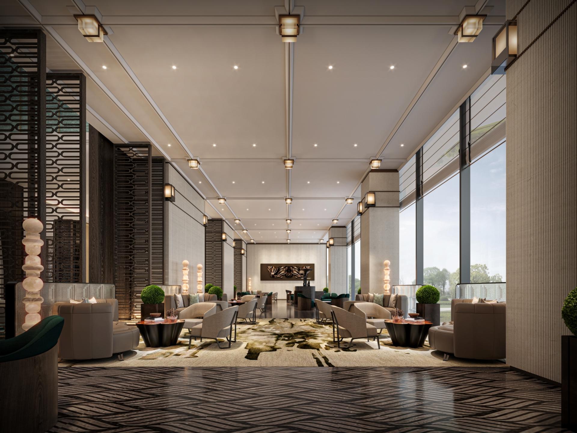 Inspired by Sulawesi Island, Wenzhou Sulawesi Hotel translates the is-land’s tropical forests and rare-earth nickel mines into an immersive resort under the theme “Gift of the Red Earth.” Lobby columns echo rainforest roots while light installations evoke hidden ores. In the all-day diner, perforated metal screens and nickel-alloy leaves merge industry with nature. The wellness zone suspends kinetic bird-like art above the pool and lines the spa with veined, translucent stone to narrate the island’s geology. Guestrooms in earth tones feature nick-el-vein textures, floor-to-ceiling frames of forest canopies, abstract island murals, and bathrooms that balance terracotta with metal. Every step journeys through a tropical mineral realm.