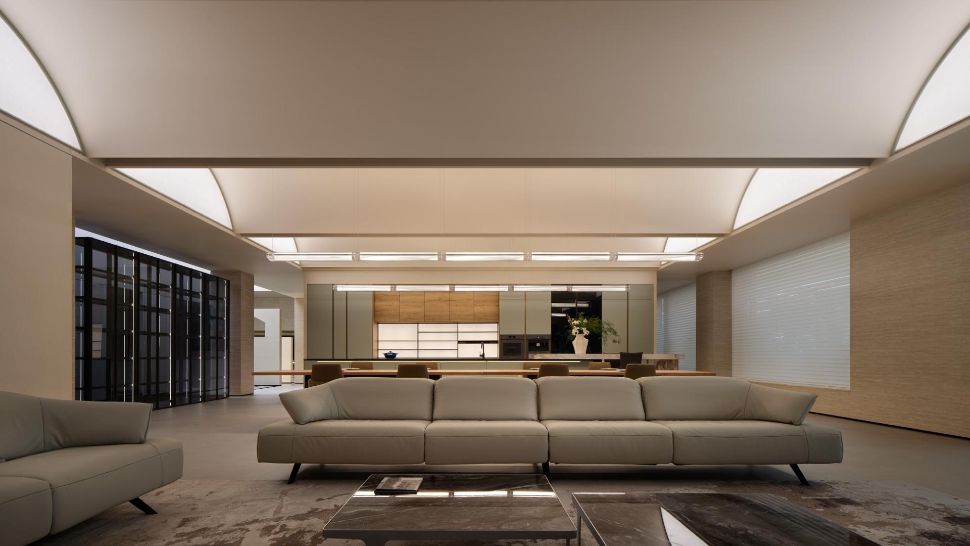 The core exhibition area is unfolded with an open layout of living room, dining room and island, and the 10.2-meter long combination cabinet is like a flowing exhibition wall, vividly showing the exquisite craftsmanship of the product and interpreting the texture expression of the ideal residence.