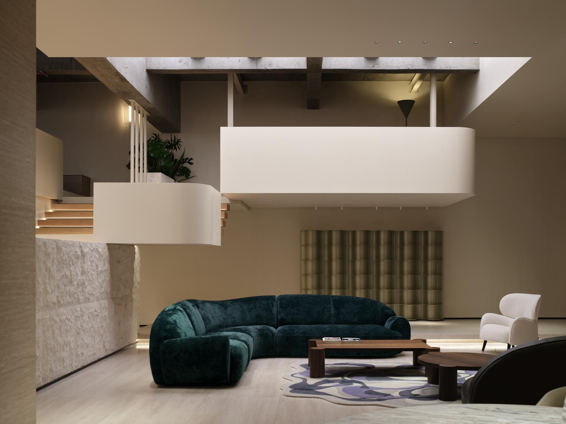 Adjacent to the water feature, the clubhouse extends from the west cabinet to a 6-meter-long dining table, and the island, bar and guest sofa complete a functional closed loop. On top of the functional layout, the spatial context gradually emerges, and the rhythm of the vault reshapes the publicity of the space. The light flows along the curved surface, and the equipment is hidden in the structural gaps, leaving a pure curved surface that extends upwards, giving the space an almost sacred sense of scale.