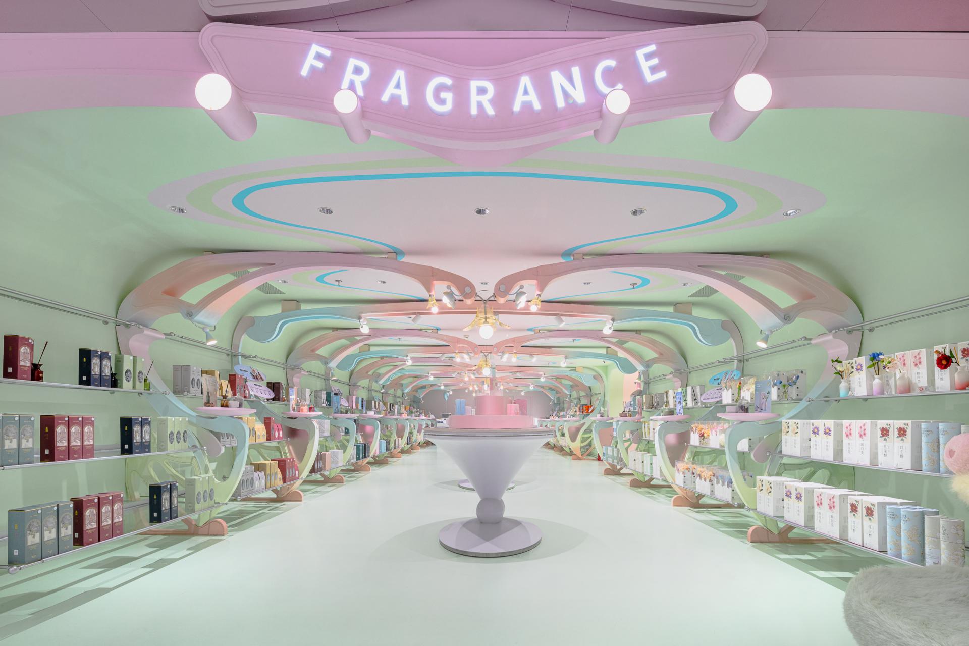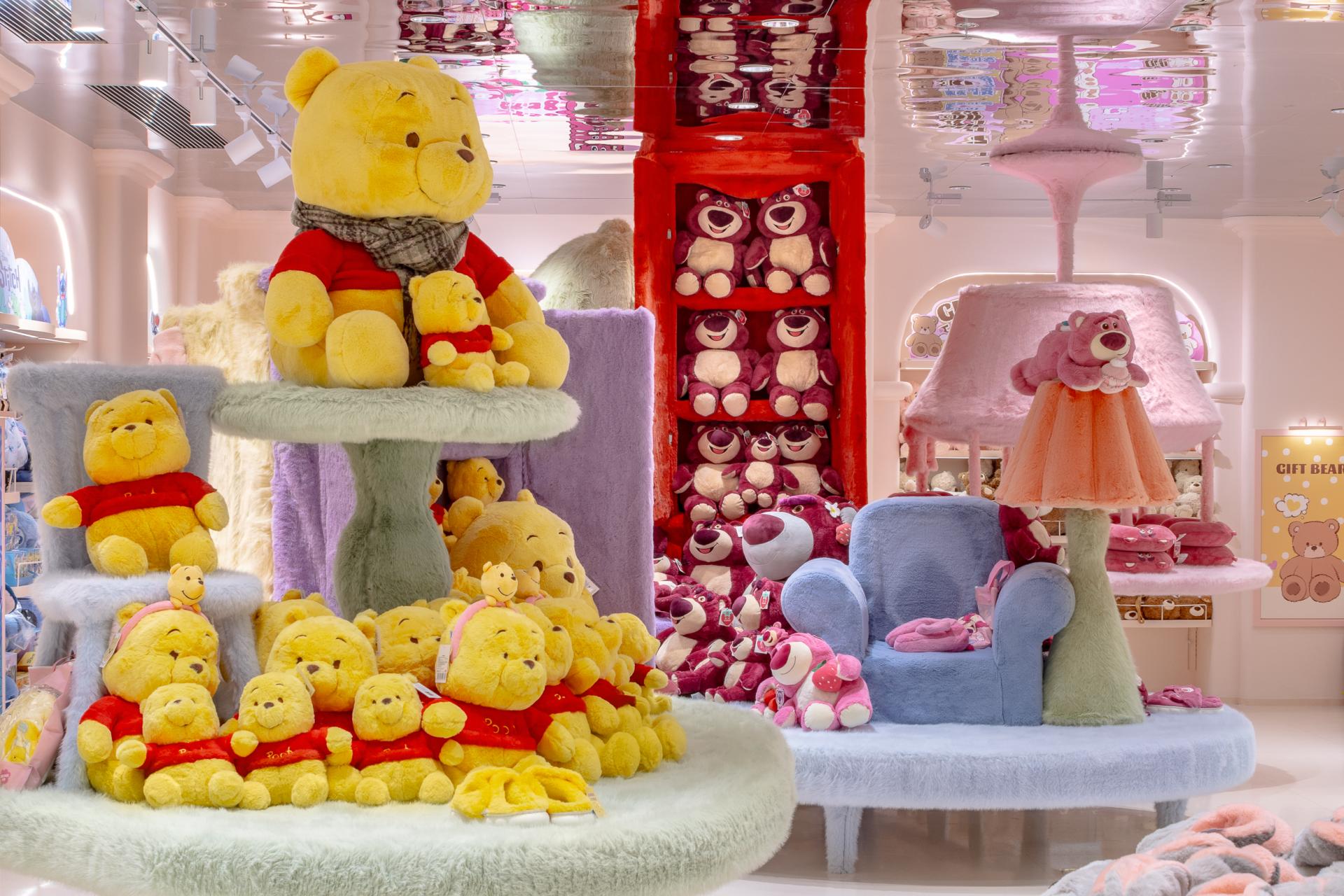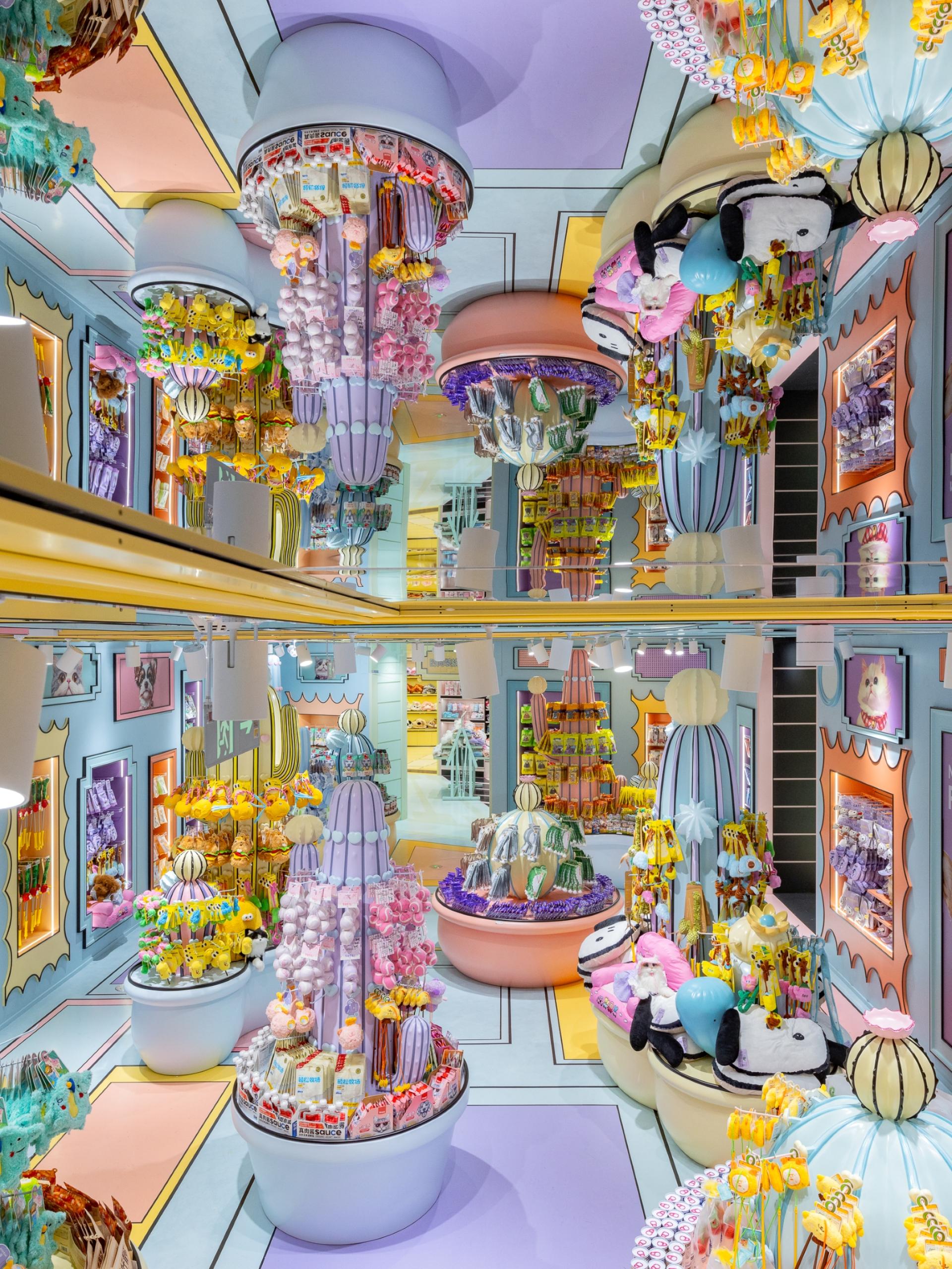 Within the store, bold color choices, diffused lighting, rhythmic color gradients, and rounded geometries dissolve traditional retail boundaries, integrating spatial storytelling with emotional cues to transform shopping into a curated journey. 80% of sales are from IP franchise collaborations, drawn from over 150 global IPs including Harry Potter, Sanrio, and Disney collections—including 19 global debuts.