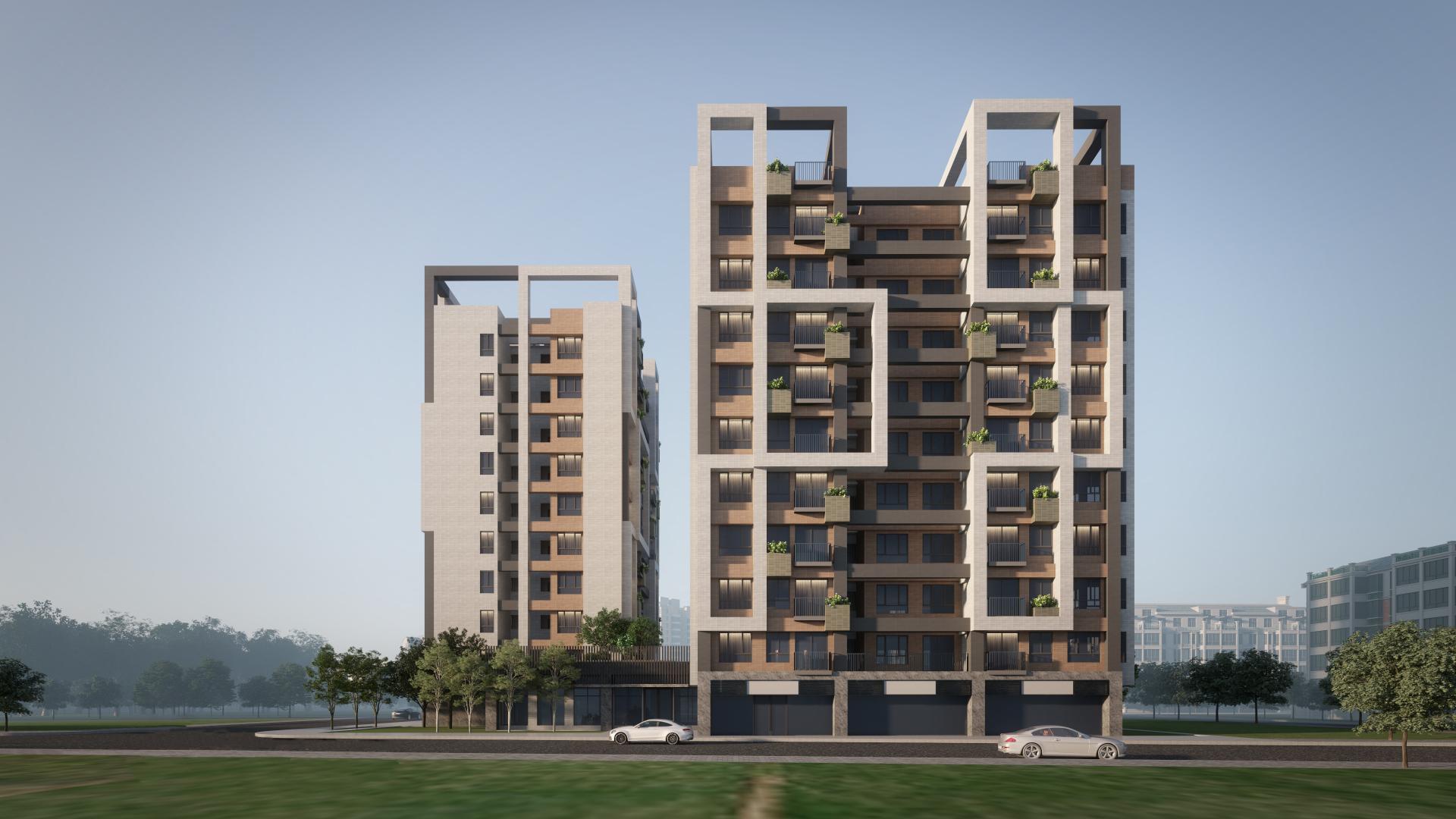Another highlight lies in the project’s low building coverage ratio. Out of the 3074.38 square meters site, only 30% is occupied by buildings, leaving the other area as open lawn. This generous green space extends the visual field and becomes a stage for community interaction and children’s play. Two residential towers rise ten stories each, with five units per floor, reducing density while improving elevator efficiency. The façade employs grilles and recessed-relief layering to create a distinctive character, ensuring that each direction presents a unique expression. This approach allows residents to identify their homes at a glance, fostering a sense of belonging.