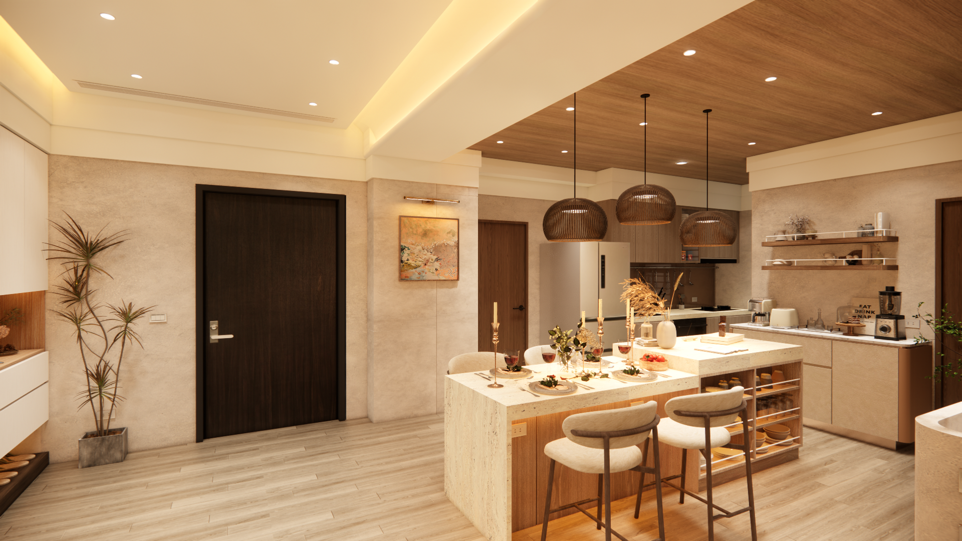 Simultaneously, the shared living domain was expanded to enhance interaction, fluidity, and emotional engagement. By interweaving spatial functionality with subtle storytelling, the design fosters an atmosphere where family bonds and daily rituals naturally unfold.