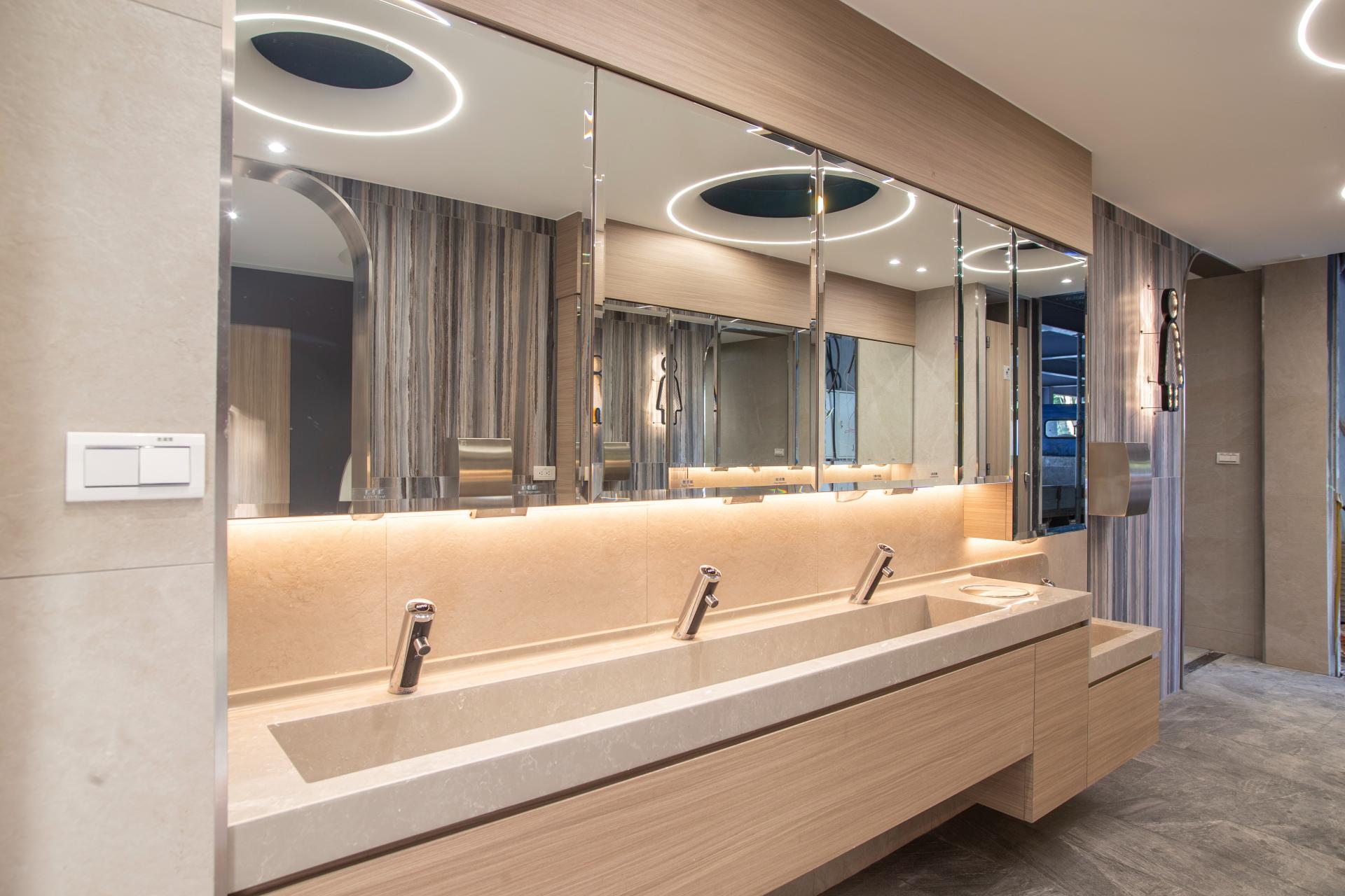 Light is treated not merely as illumination but as a spiritual medium. Indirect LED strips, embedded skylights, and diffuse surfaces create layers of visual calm. Materials were chosen for their symbolic weight and sensory clarity: Italian-imported tiles, titanium-coated metal, ripple panels, marble, and insulated glass define the space with refined restraint. Every finish speaks to balance—between old and new, solid and void, permanence and change.