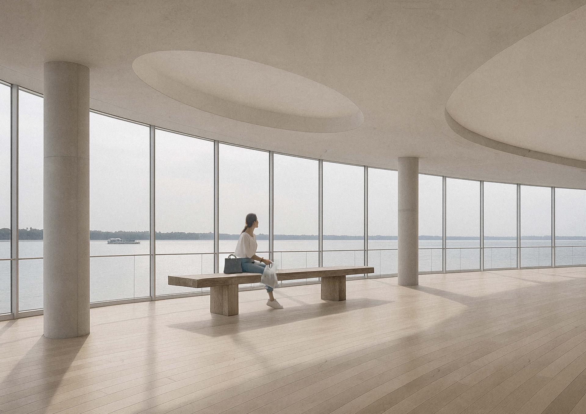 Rooted in the site’s cultural memory as a trading port, the center reimagines the pier not just as a place of departure or arrival, but as a space of cultural convergence and coexistence. Sustainable design strategies include passive ventilation, rainwater harvesting, and porous landscape integration with the surrounding riverfront park.
