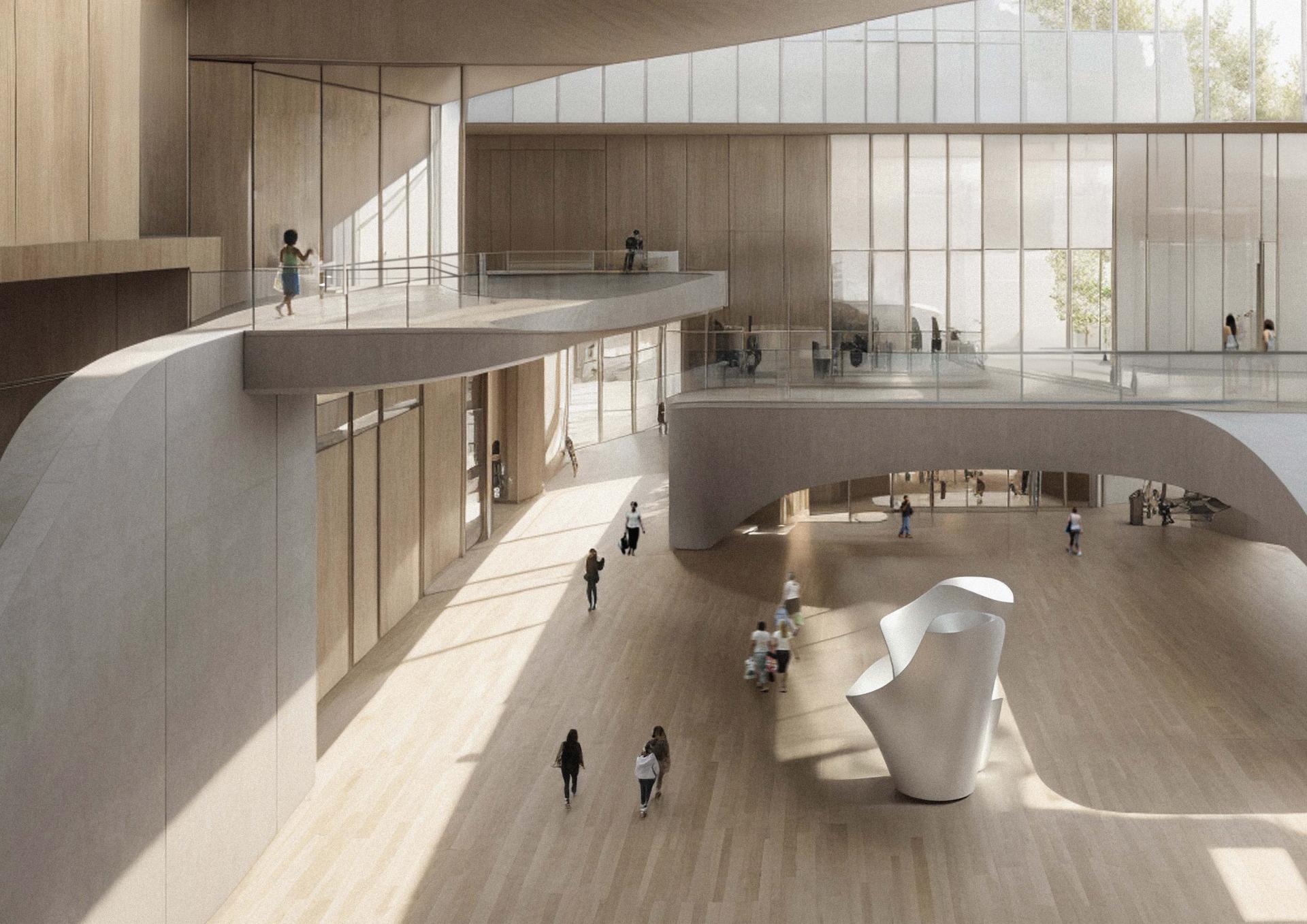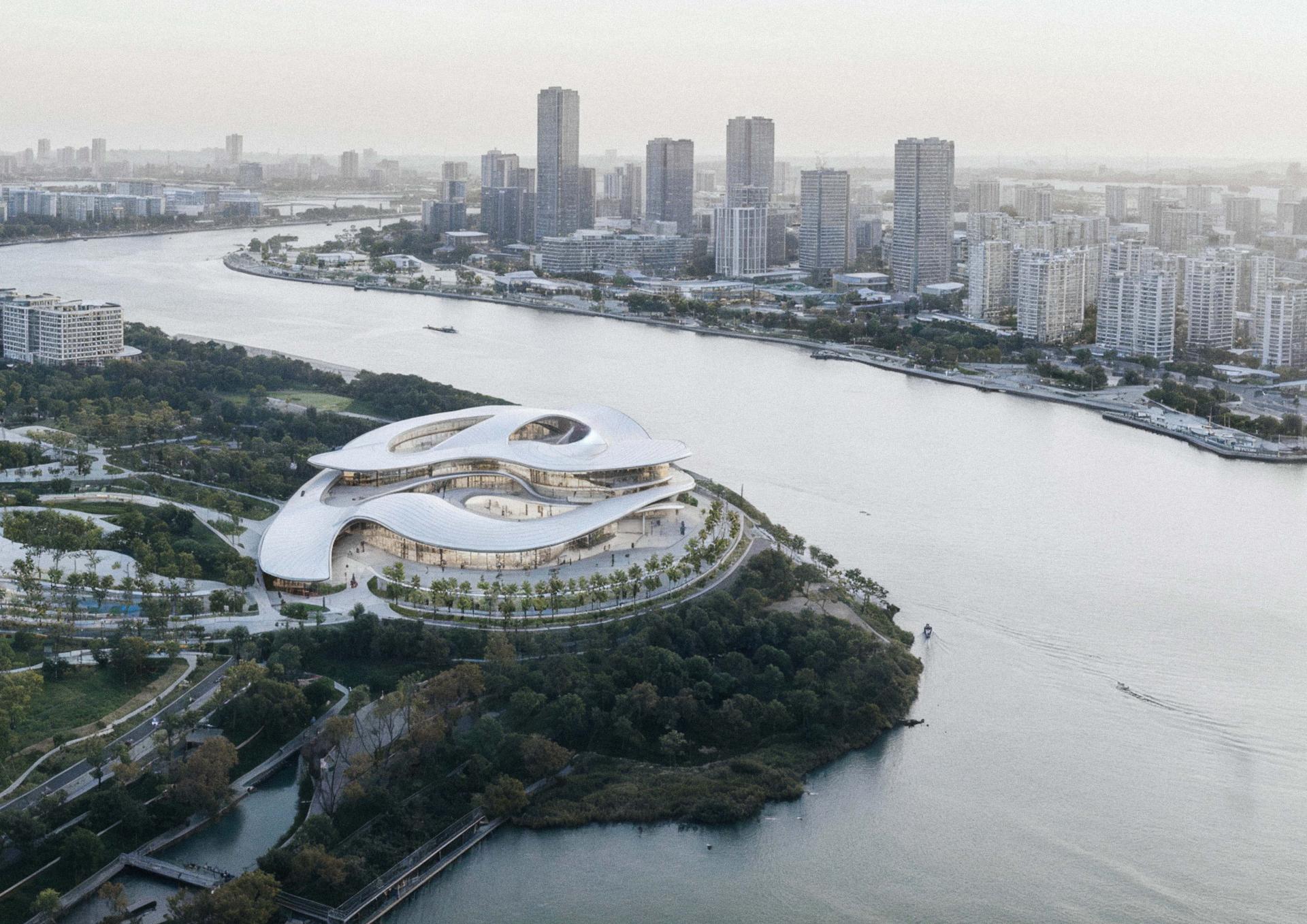 The center’s interlocking forms mirror the symbolic interplay of Yin and Yang, with two fluid volumes intertwining along the riverbank. This gesture not only reflects the eternal flow of the river but also metaphorically bridges the two shores, connecting past and present, tradition and innovation, East and West. As a cultural anchor, the building celebrates pluralism and inclusivity, offering a shared platform for diverse civic expression.