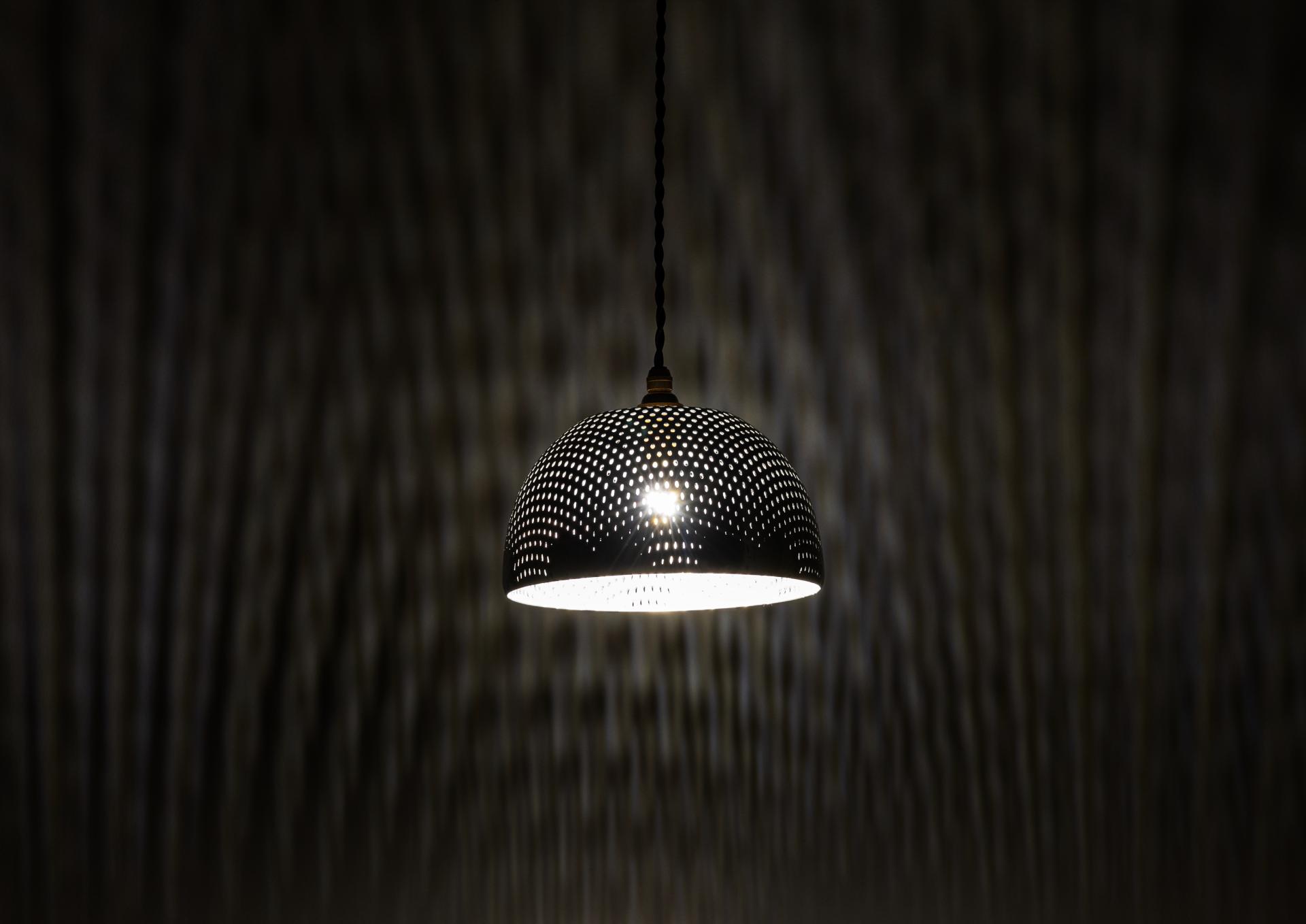 Normally, metal plates are used, but the highly skilled craftsmen add a spinning process to perforated metal plates. The spinning process stretches the perforated metal, changing the regular perforation pattern to create special patterns. Furthermore, the light that leaks out from the special pattern creates beautiful patterns of light and shadow.