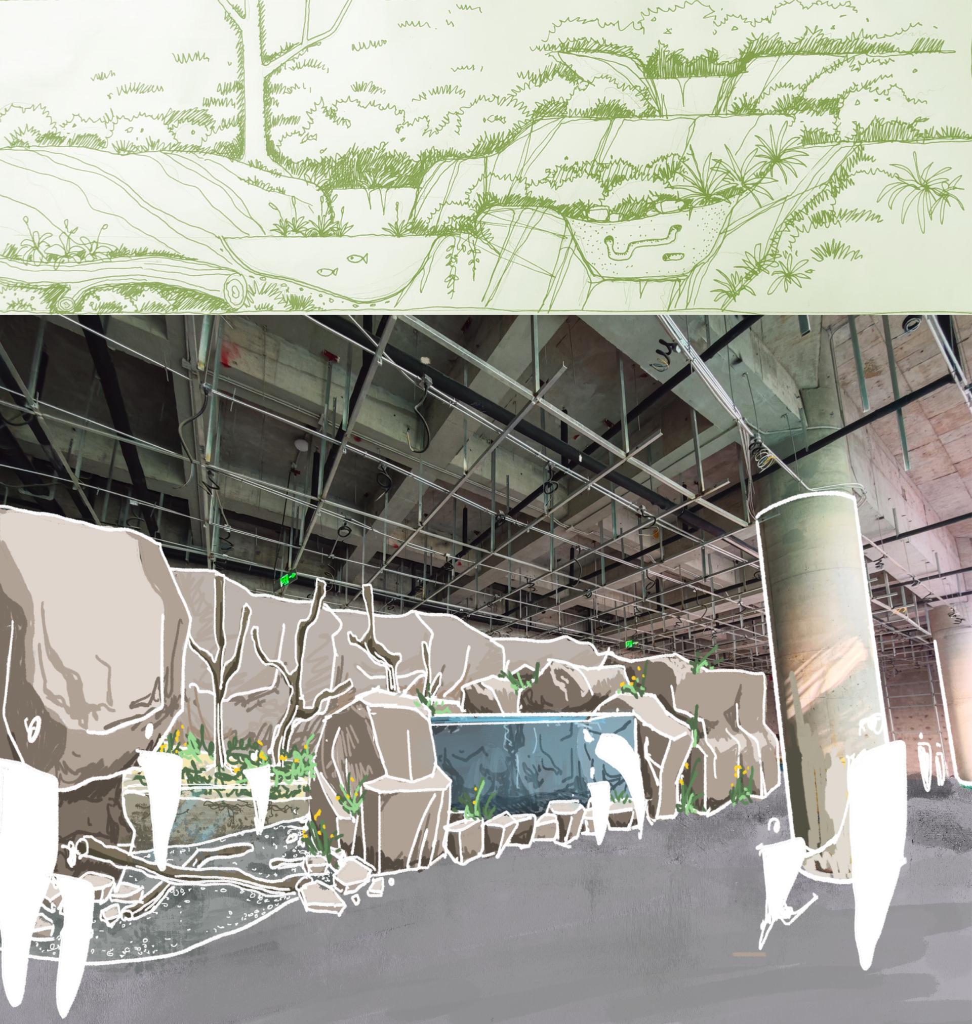 The design incorporates fallen logs and rock ecologies to showcase forest material cycles and geological evolution, and introduces ecological water tanks that combine rainwater harvesting with micro-ecosystem regulation—revealing the self-sustaining capacity of natural systems. During the operational phase, interactive installations and educational activities will foster public ecological awareness and strengthen the emotional connection between the city and its native environment.