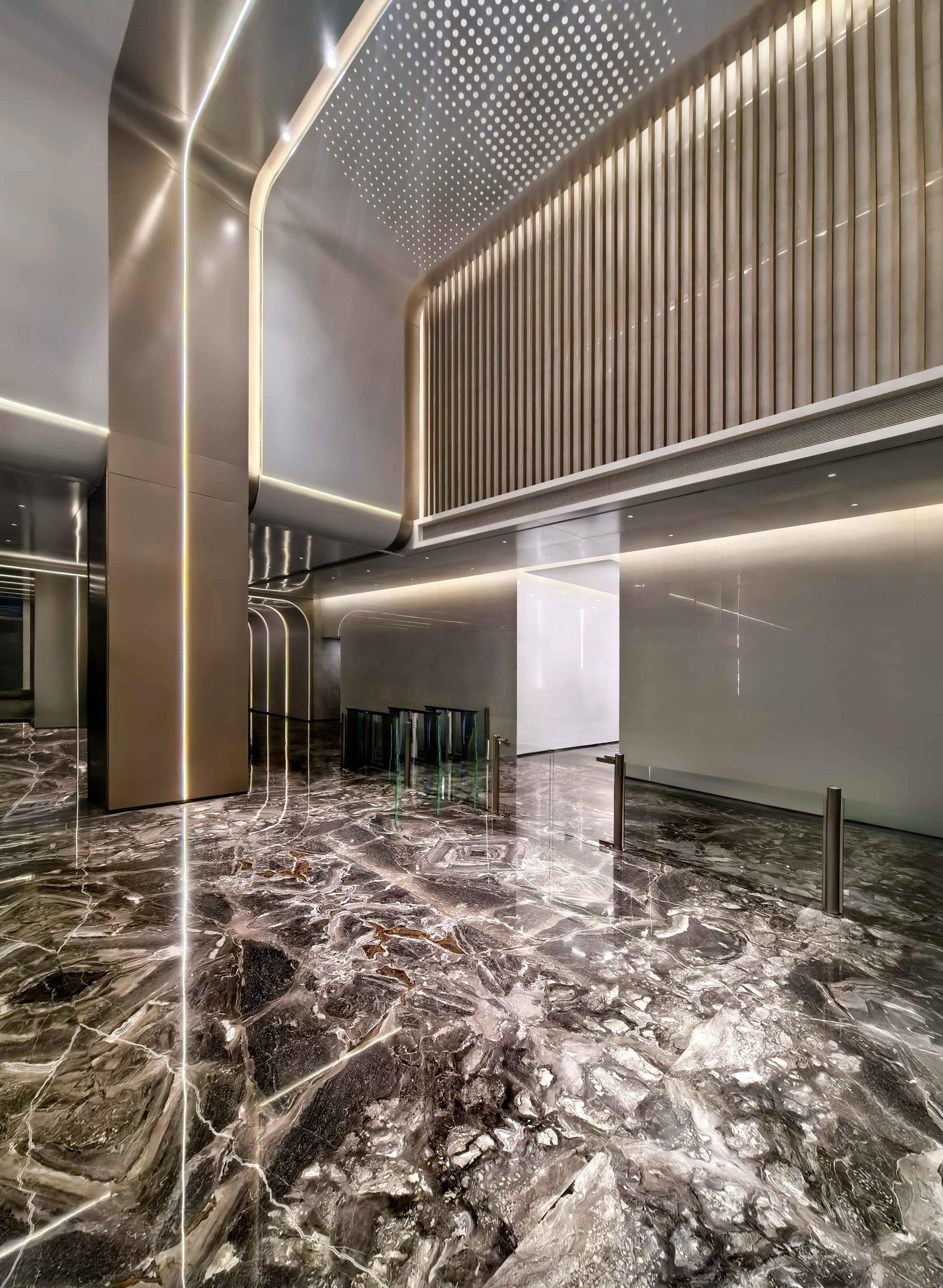 The grand hall is a realm of marble. Natural stone veins shimmer like liquid gold, evoking roiling beer in vessels or Henri Matisse’s The Dance, where swirling figures lend rhythm to the space. Under evening lights, it conjures visions of golden halls, transforming the area into an artistic sanctuary.