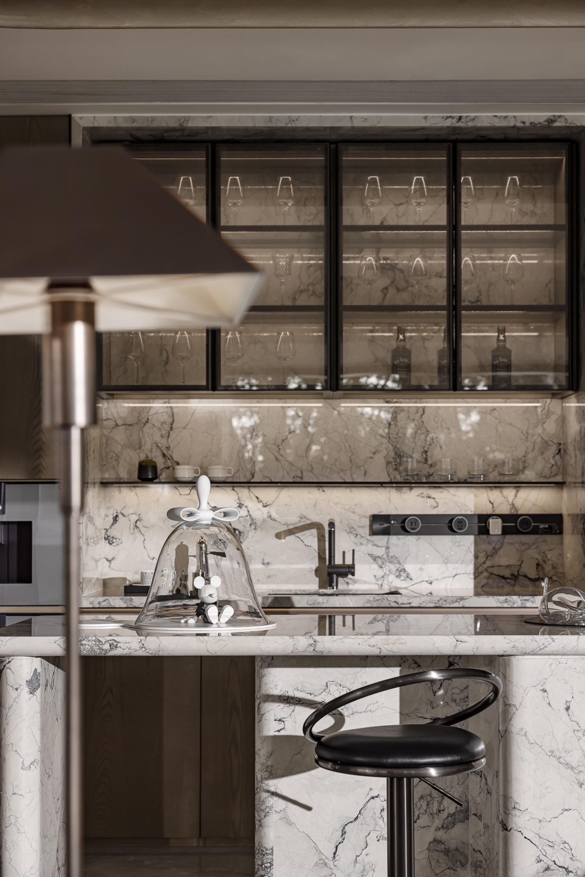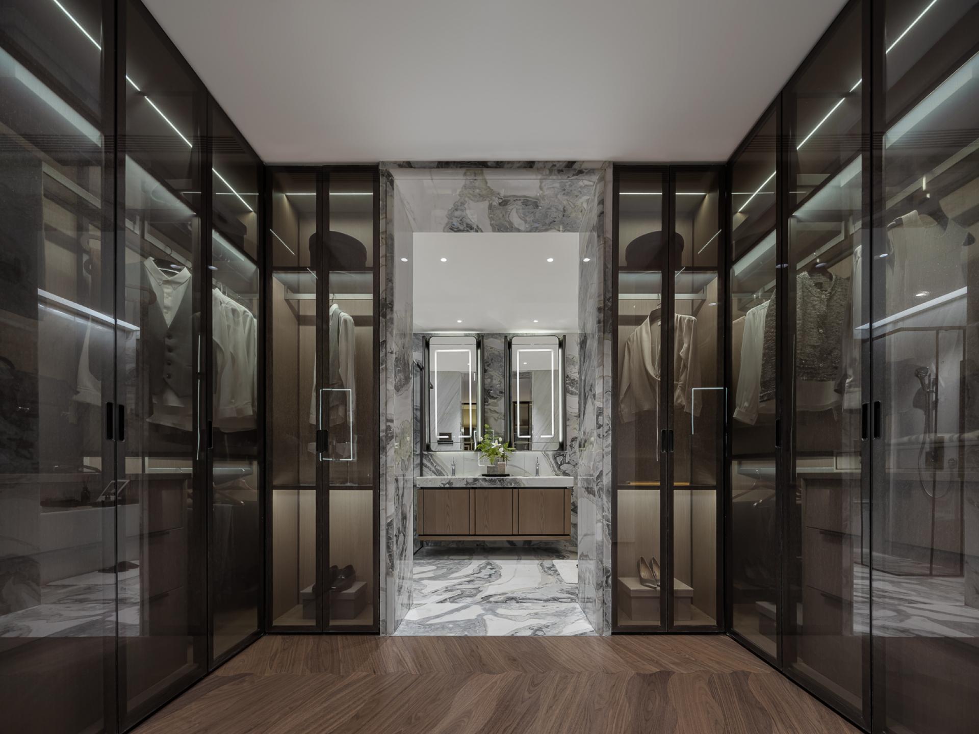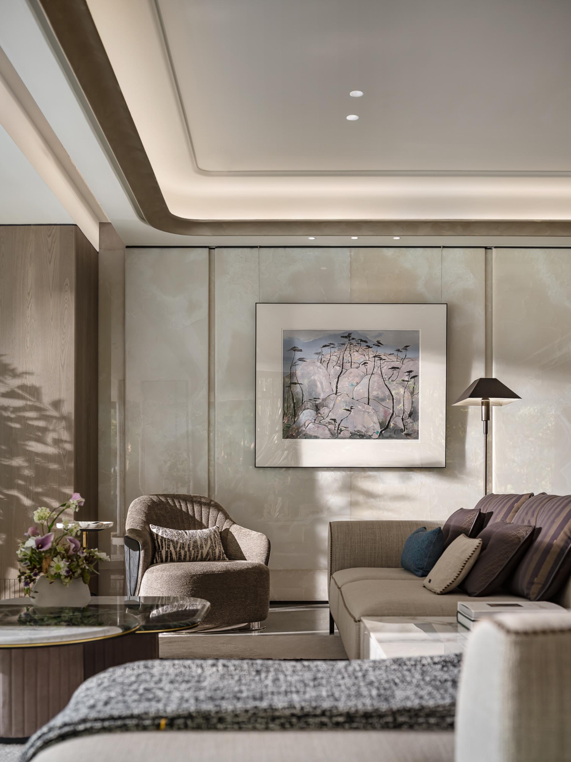 Premium imported materials and curated artworks redefine the aesthetic standards of luxury living. Selected pieces such as Wu Guanzhong’s prints Water Alley and Pines and Rocks of Mount Lao, alongside Shi Jinsong’s Garden in the Living Room, enrich the space with cultural depth through artistic storytelling, adding differentiated value to real estate marketing. Natural textures engage in dialogue with craftsmanship, layering light, tactile sensations, and visual harmony to create an immersive "five-senses" experience—redefining contemporary elegance.