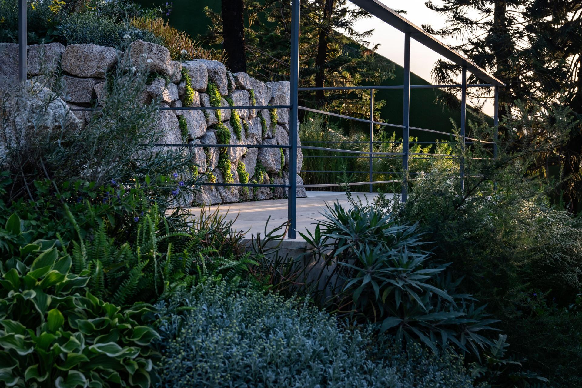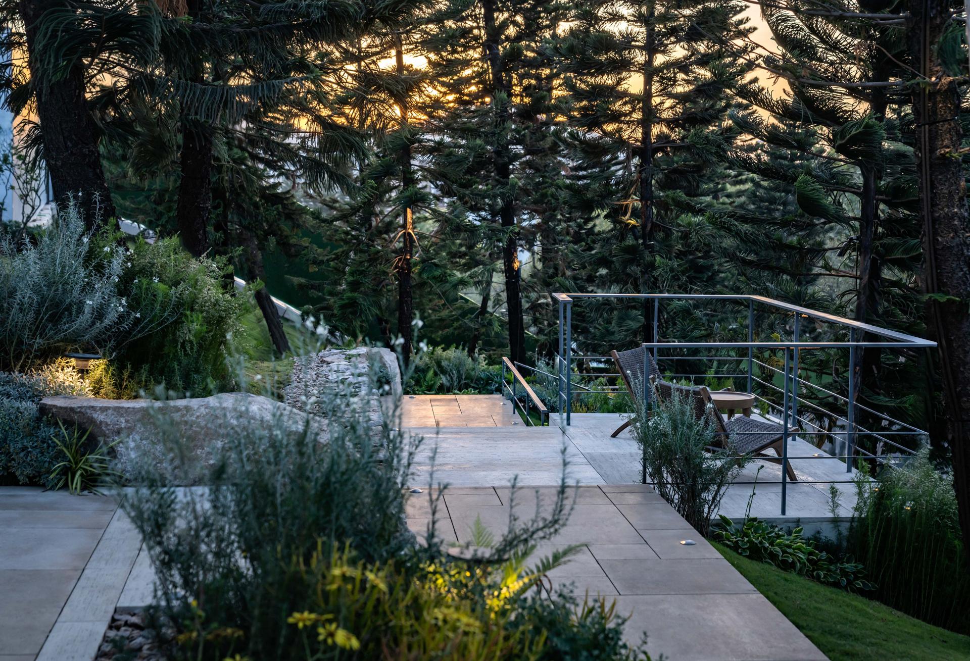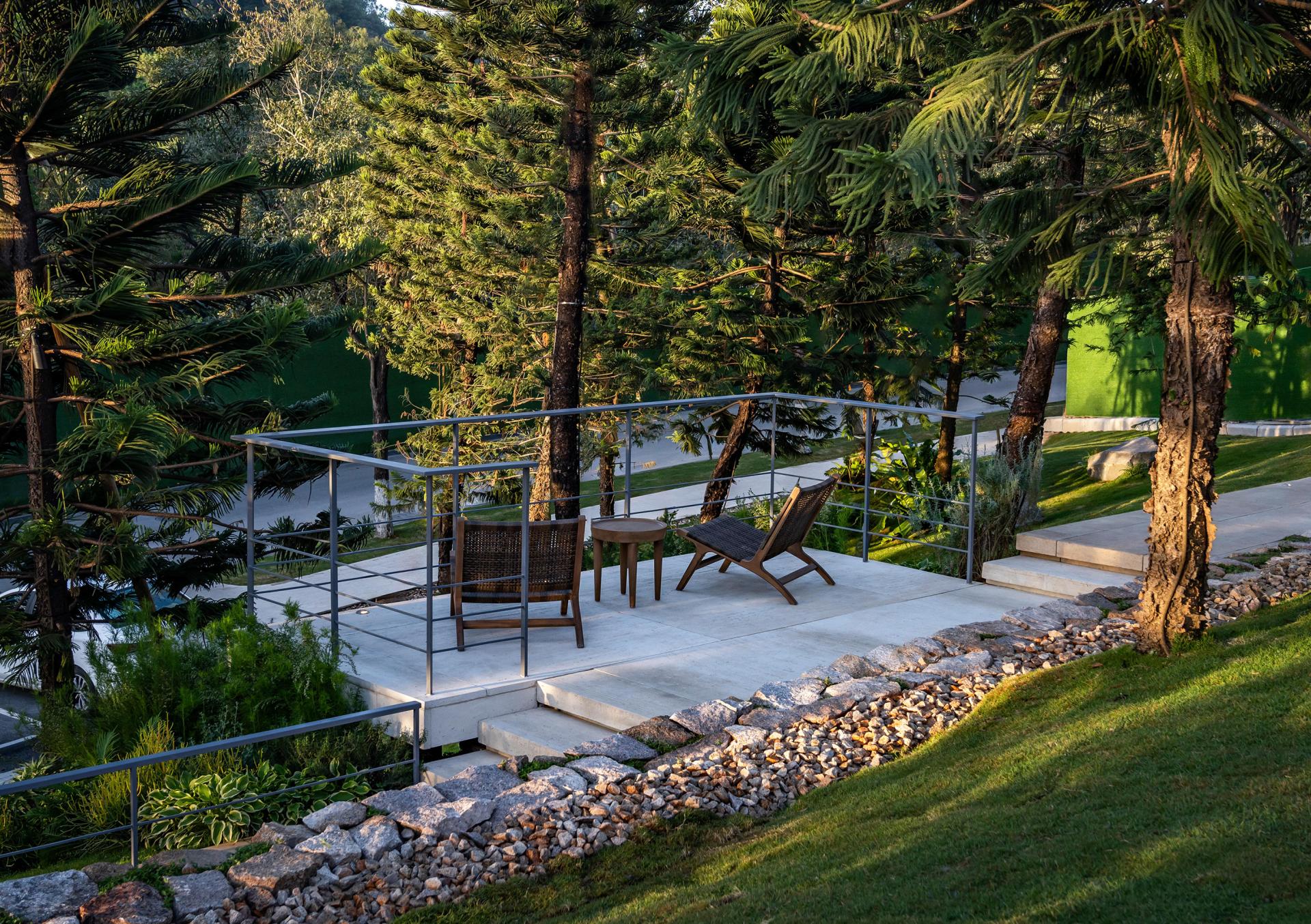 The spatial design adopts a restrained, nature-led approach. A palette of native greens, stone grays, and warm wood tones forms a minimalist language in harmony with its surroundings. Existing mature trees are preserved, while obstructive shrubs are cleared to open sightlines. Strategies such as sunlit lawns, rock gardens, and ecological drainage channels shape a clear, open, and layered environment that invites exploration.