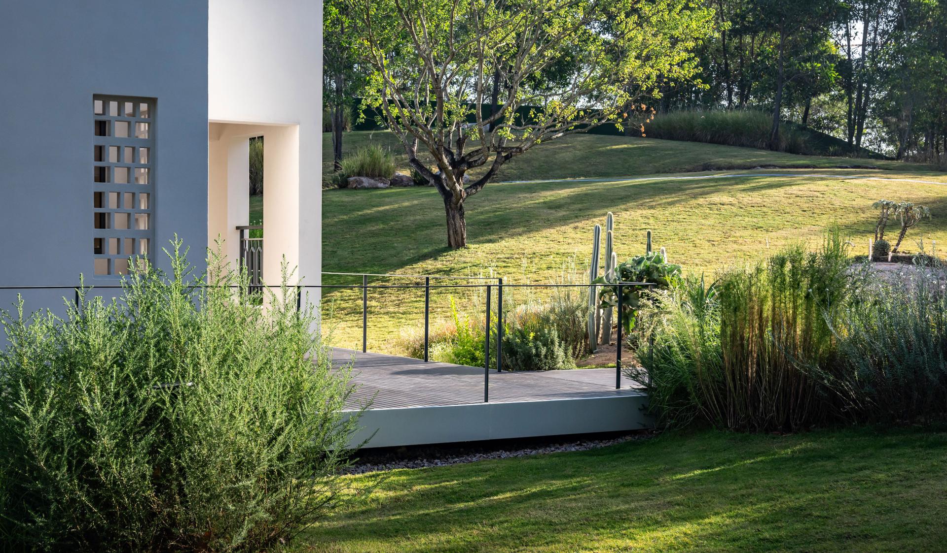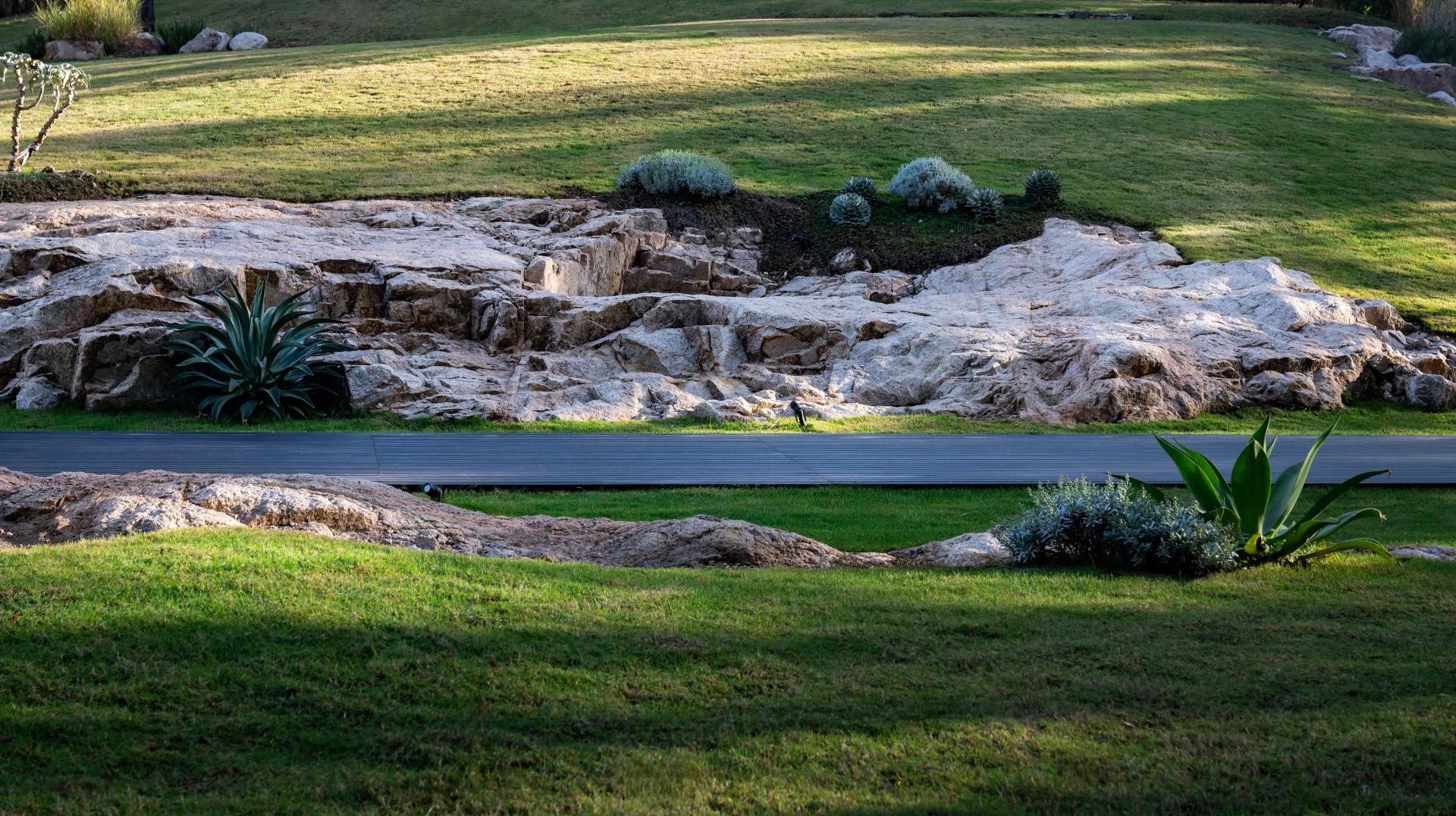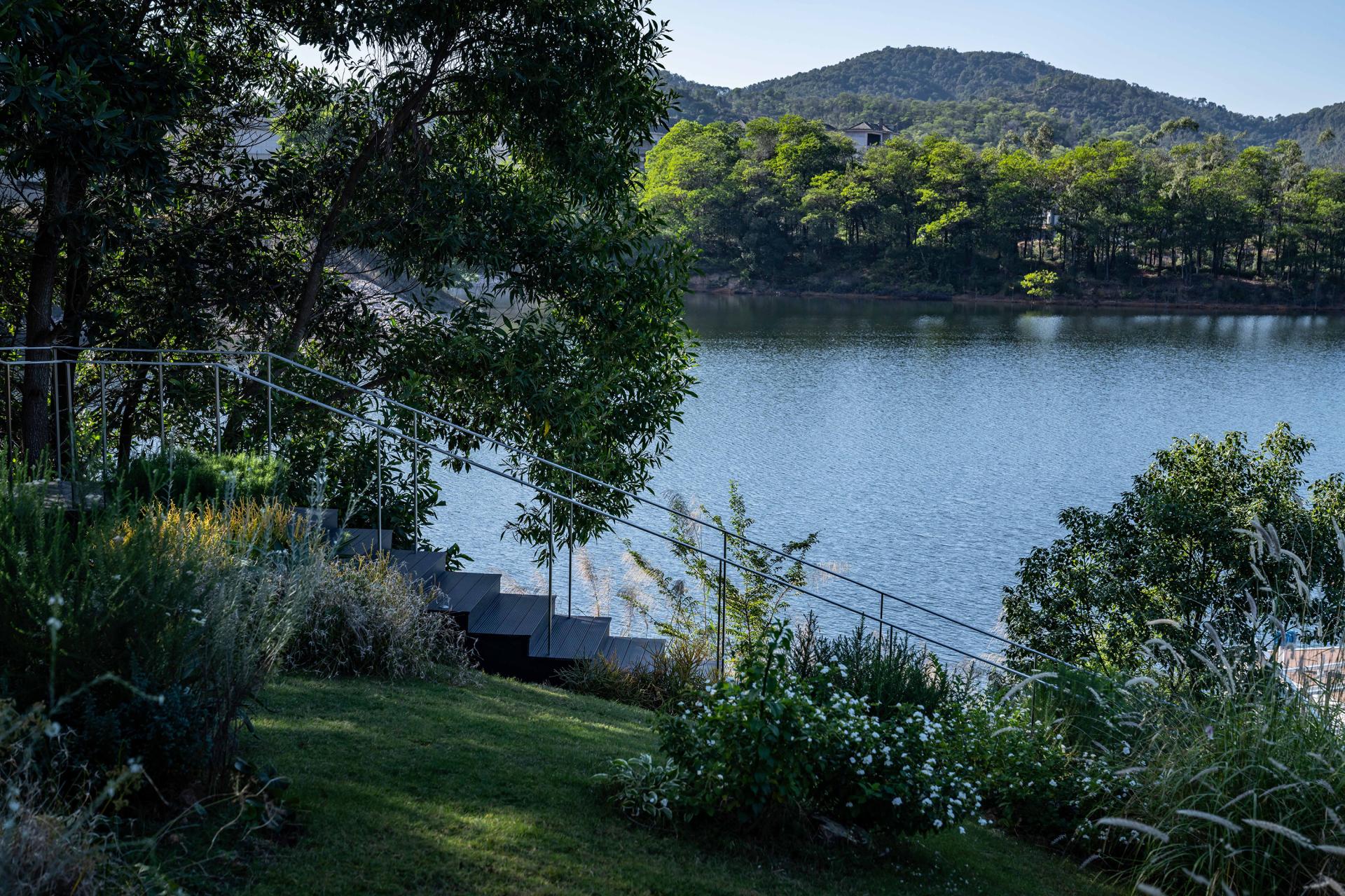 The spatial design adopts a restrained, nature-led approach. A palette of native greens, stone grays, and warm wood tones forms a minimalist language in harmony with its surroundings. Existing mature trees are preserved, while obstructive shrubs are cleared to open sightlines. Strategies such as sunlit lawns, rock gardens, and ecological drainage channels shape a clear, open, and layered environment that invites exploration.