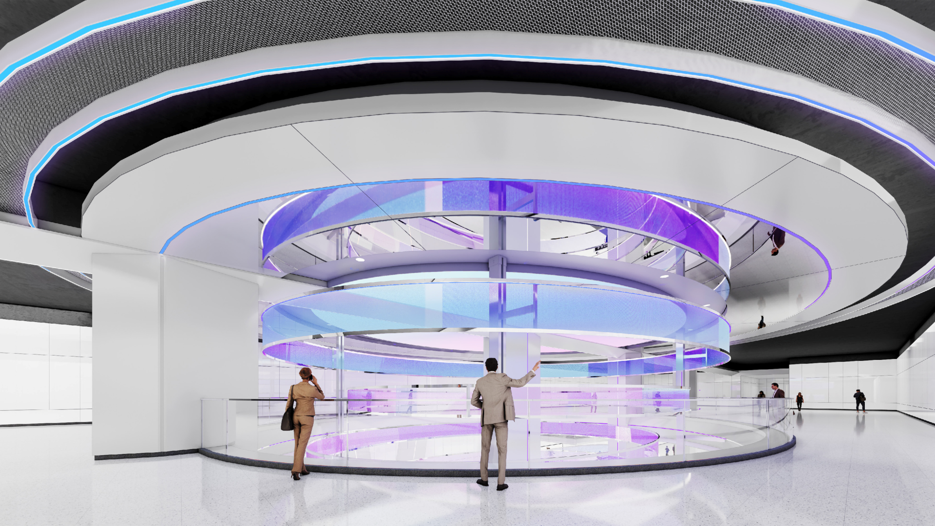 Coloration is based on “minimalist white,” with localized accents of route identification colors to strengthen recognizability. Paired with an anti-glare ambient lighting system, uniform and soft light control shapes a clean, technological, and futuristic spatial atmosphere, balancing functionality and visual comfort.