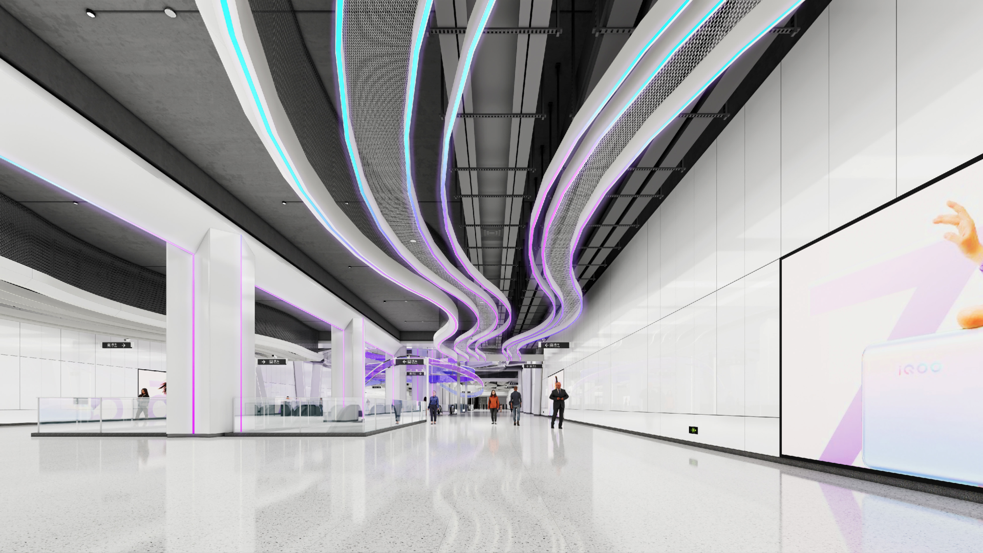 Jingxi Road Station is positioned with “Scientific and Technological Innovation Engine · Hub Gateway” as its core concept, and adheres to the design philosophy of a “simple, efficient, and convenient future-oriented station.” Focusing on the dual attributes of regional industrial upgrading and transportation hub, it integrates spatial, technological, and artistic strategies to create an underground transportation hub that combines functionality, technological appeal, and regional characteristics.
