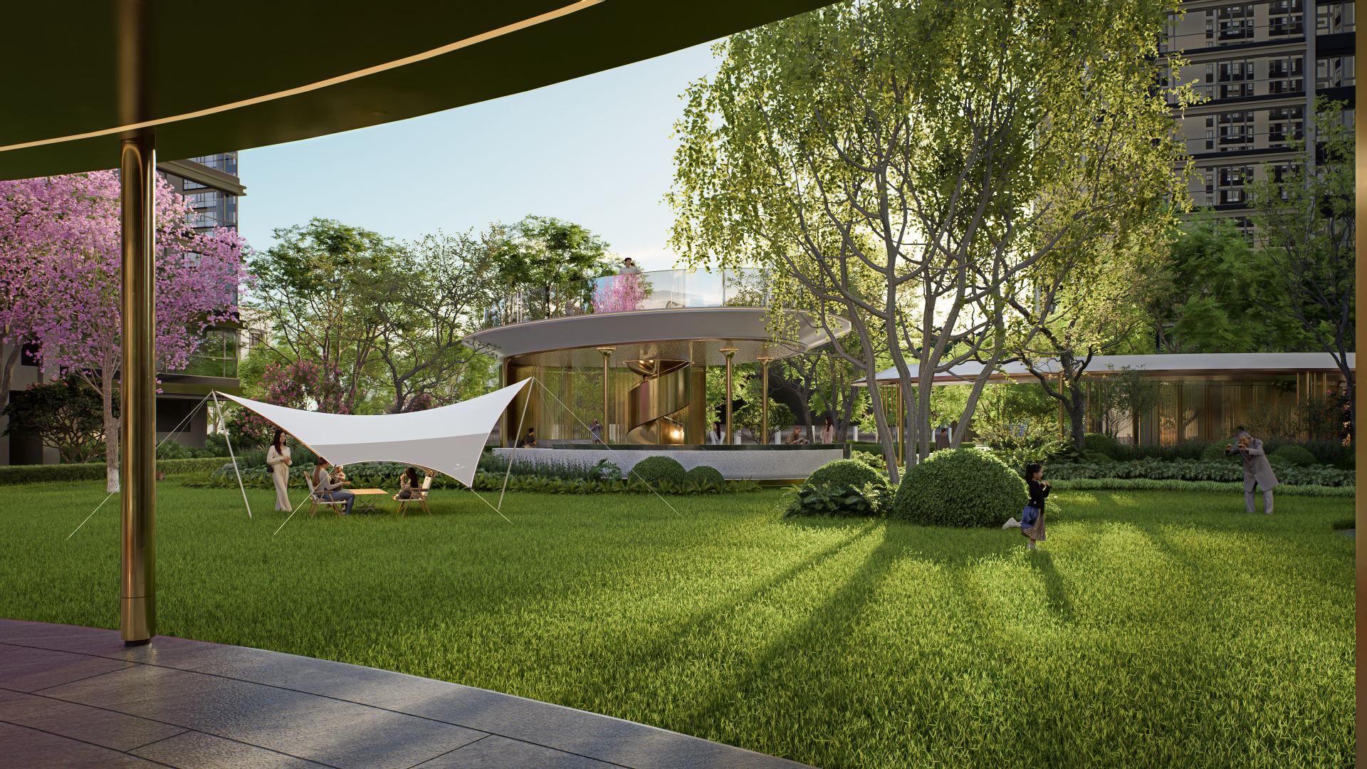 The spatial journey flows seamlessly from “Heavenly Eye” to “Return to Heart · Shore Fragrance Dawn,” with each scene distinctive yet integrated into a continuous riverside narrative. ‘First Appearance · Sunken Jade Water Landscape’ creates a grand arrival, symbolising the beginning of a new life; ‘Chasing Waves · Golden Light Realm’ offers tranquil island woodlands and golden cascades that evoke peace and poetry; while ‘Picking Fun · Riverfront View’ captures the joy of riverside leisure, enabling residents to immerse themselves in the beauty of nature and the vitality of life.