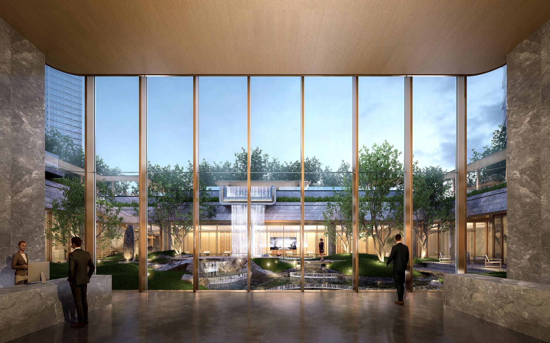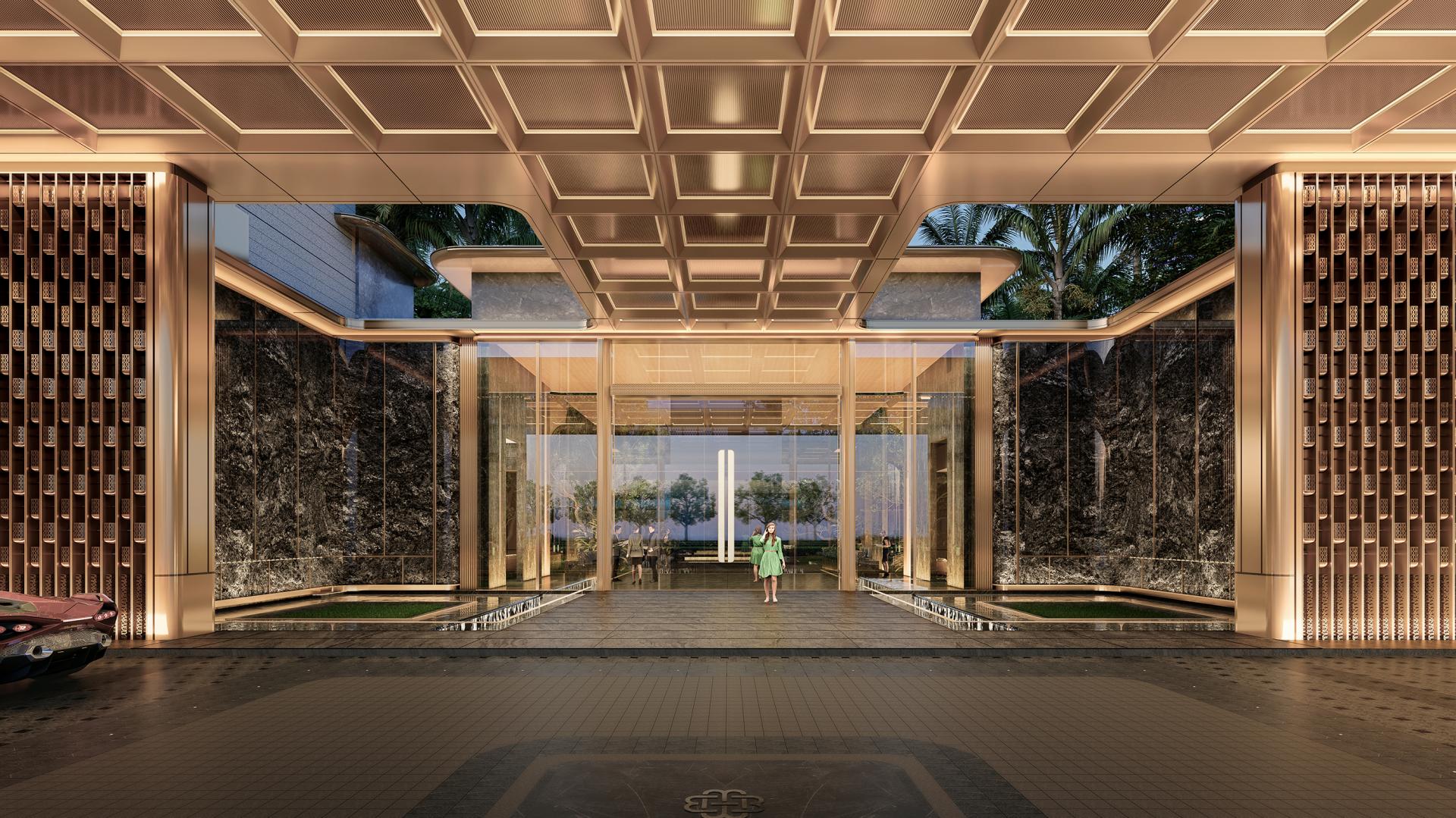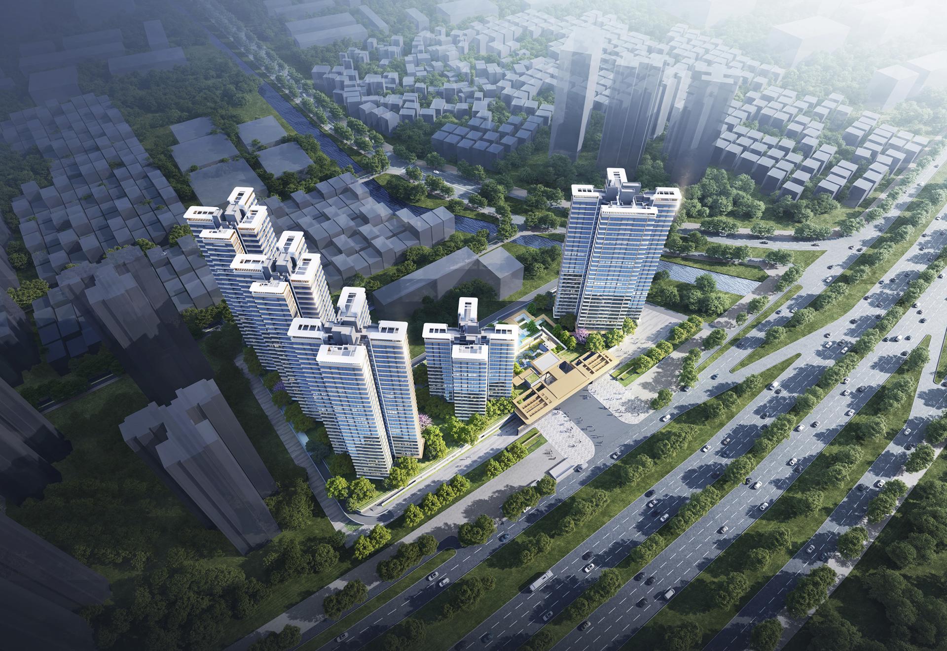 The building façades embody a modern minimalist aesthetic that expresses the architecture's unique character, creating an urban interface that is both grand and distinctive. Large expanses of glass enhance indoor lighting and views. Utilizing primarily glass and aluminum panels, the façades feature meticulous attention to detail and refined components, elevating the overall architectural quality. The grand and dignified entrance gatehouse, with its simple yet refined materiality and construction, reinforces the project's premium positioning. Given the scarcity of land in central urban areas and the need to maximize value, the project responds with creative and distinctive residential architecture.