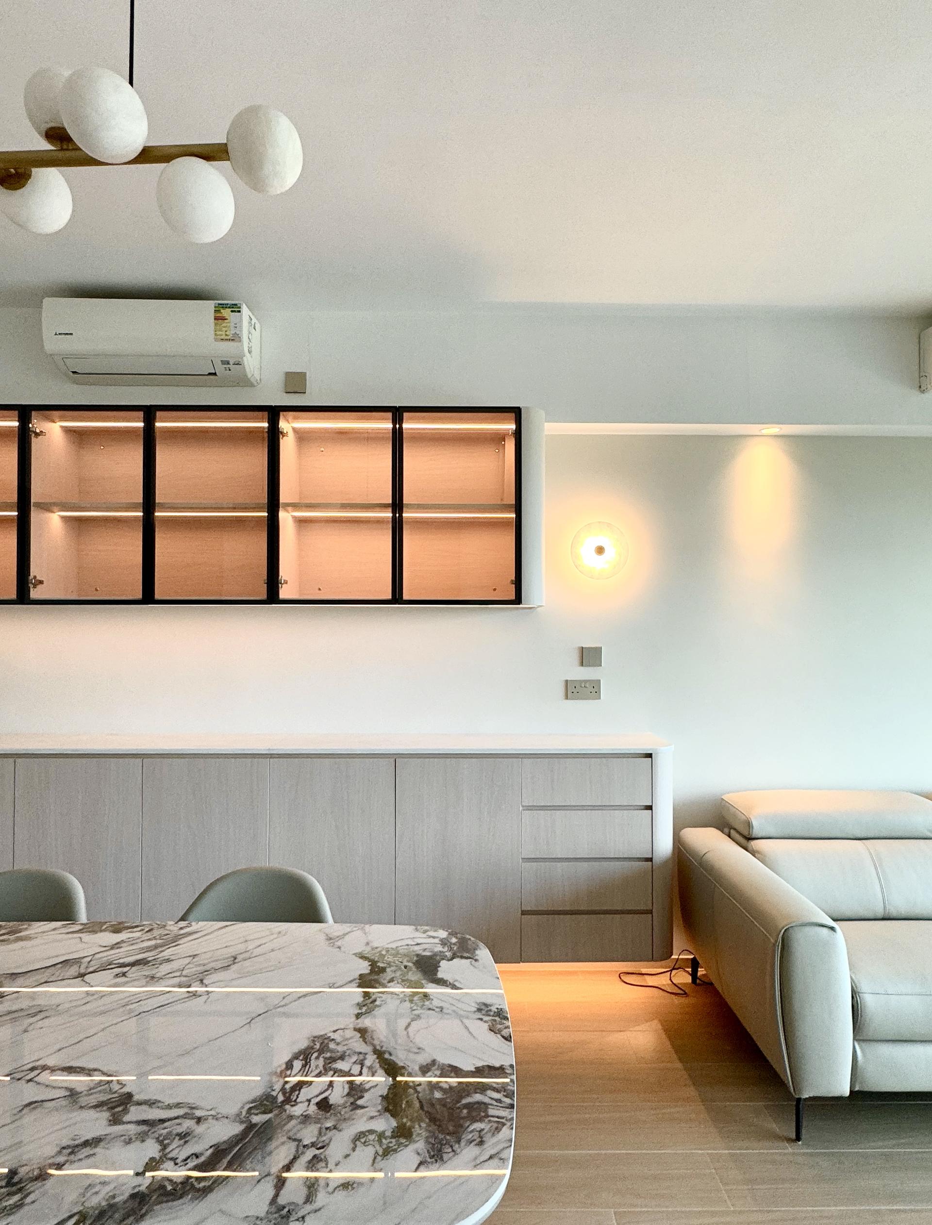 Originally configured as a 1-living-room, 3-bedroom unit with a master ensuite and maid’s room, this residence was redesigned to meet the lifestyle needs of a retired couple and their two adult children. The challenge was to create a layout that blends the aesthetic preferences of two generations while optimizing space and functionality.