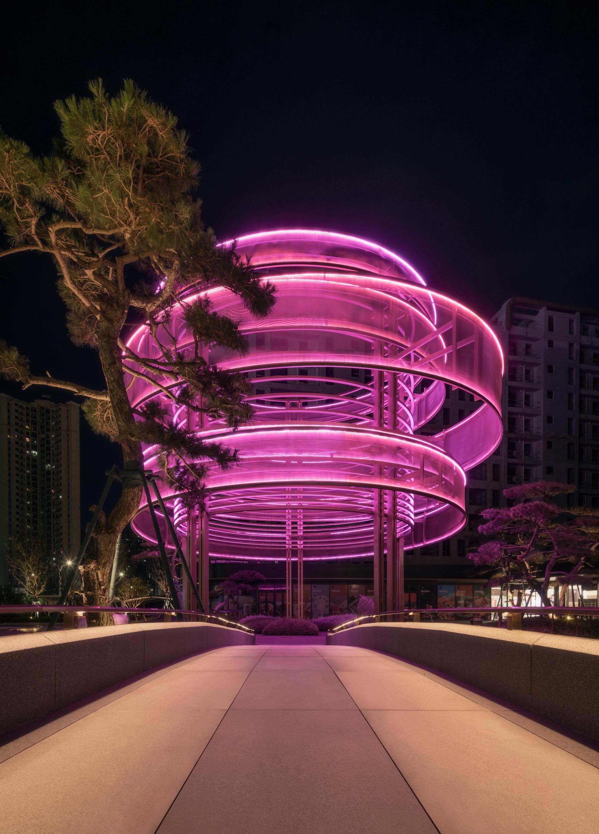 Drawing on Yingtan’s legend—“ripples swirl within, eagles soar above”—the design transforms this imagery into a landmark community structure. Through digital modeling and precision engineering, an urban lighthouse installation was created, shimmering with metallic brilliance by day and offering immersive audio-visual interactions at night, forging a symbolic link between city and community.