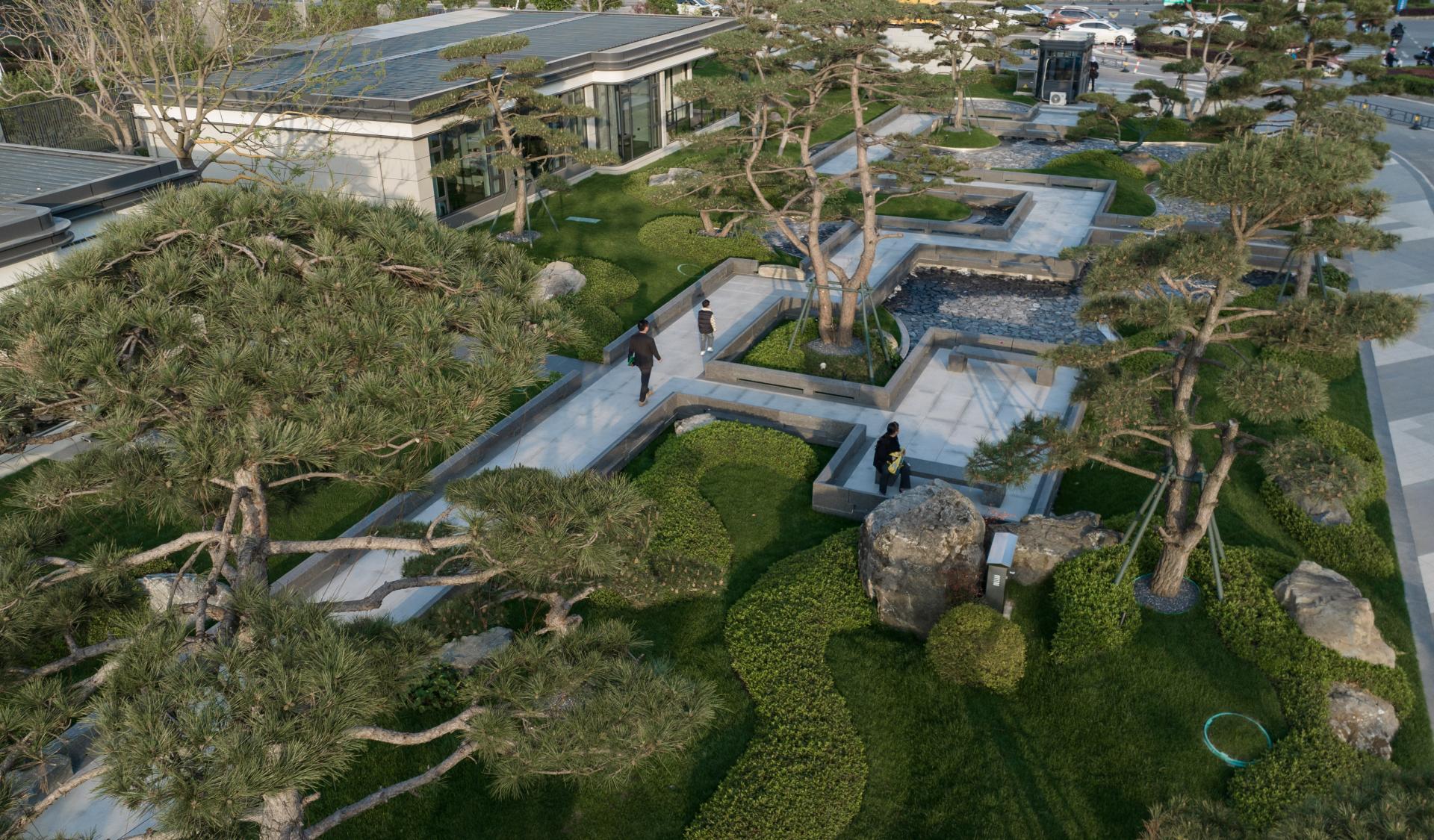 Departing from conventional “multi-layered greenery”, the landscape strategy combines sculpted terrain with the placement of signature pine trees, focusing investment on the Wanhe Songfeng urban frontage. This approach ensures cost efficiency while delivering a distinctive and memorable plant palette.