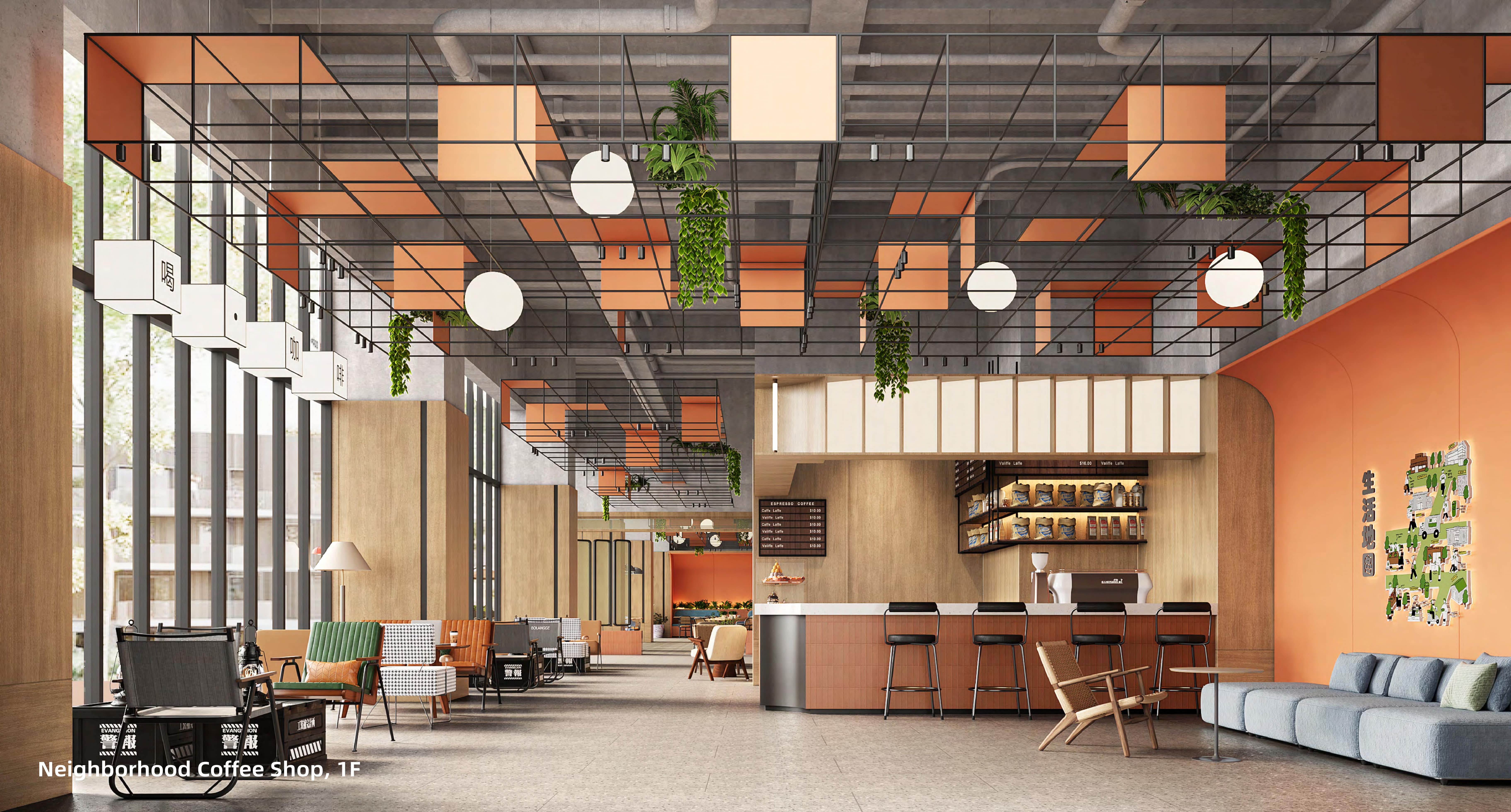 The design employs a "box-style" modular structure to break traditional boundaries, constructing diverse living scenarios through flexible combinations. Floors 1-3 create an open public activity area, encompassing composite functions such as community dining, calligraphy and painting, and parent-child classrooms, presenting vibrant and sustainable social gatherings. Floors 4-7 focus on rehabilitation and living for the elderly, providing multi-level care support and family-like environmental experiences, emphasizing the warmth and dignity of residence.
