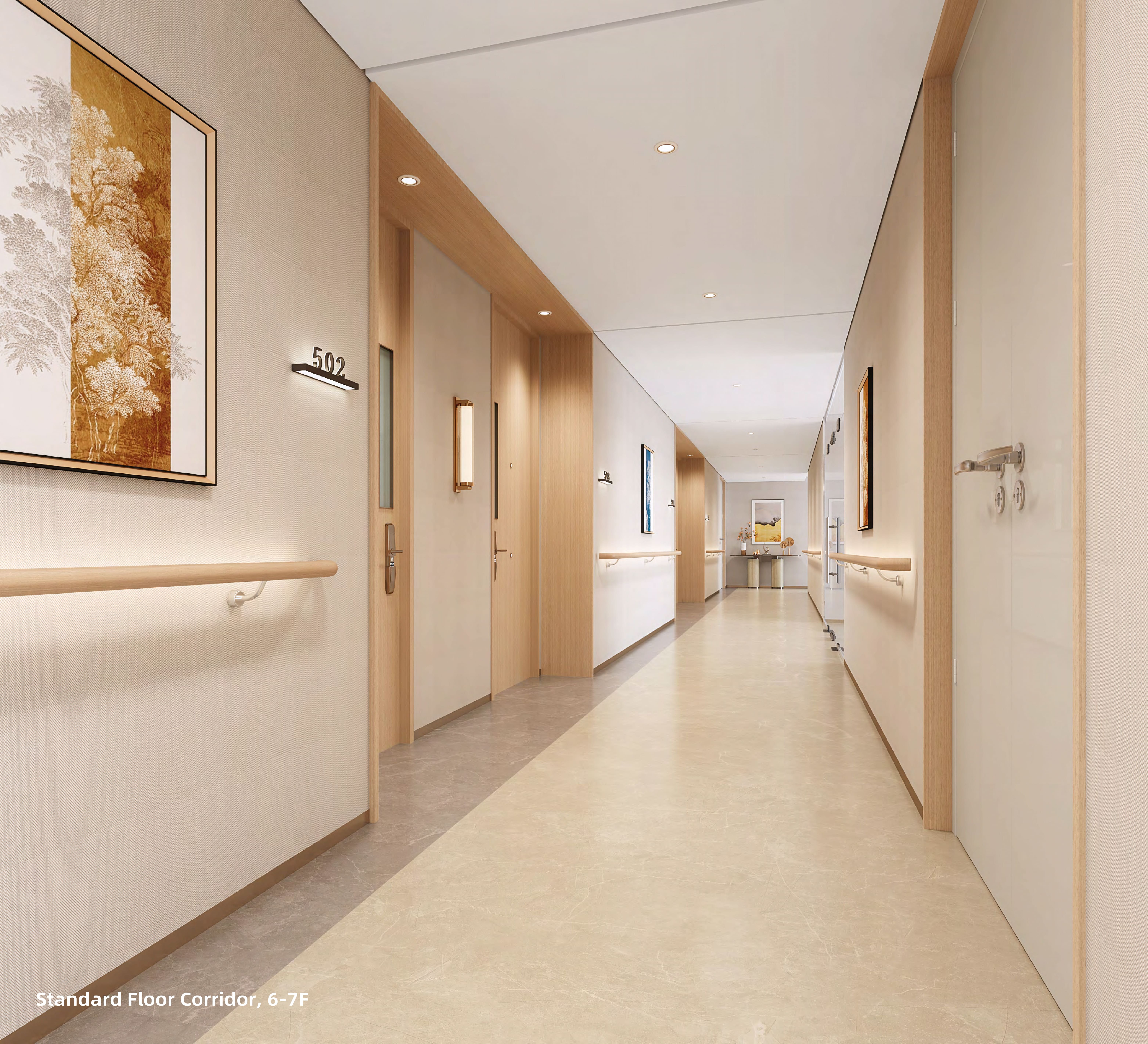 This is the first healthcare project developed by the owner. It is located on floors 1-7 of Building 11, Jiyu Wanxiang, Wuhan City. The GFA of the project is 7,730 ㎡. The design adheres to the philosophy of "multi-dimensional integration, flexible diversity, and respect for life," centering on an all-age shared functional framework to achieve a balance between spatial aesthetics and age-friendly details. It aims to create a future-oriented elderly care community model with design leadership and emotional resonance through refined spatial crafting, integration of age-appropriate technologies, and humanistic warmth, thereby exploring a new paradigm for all-age elderly care communities in urban core areas.