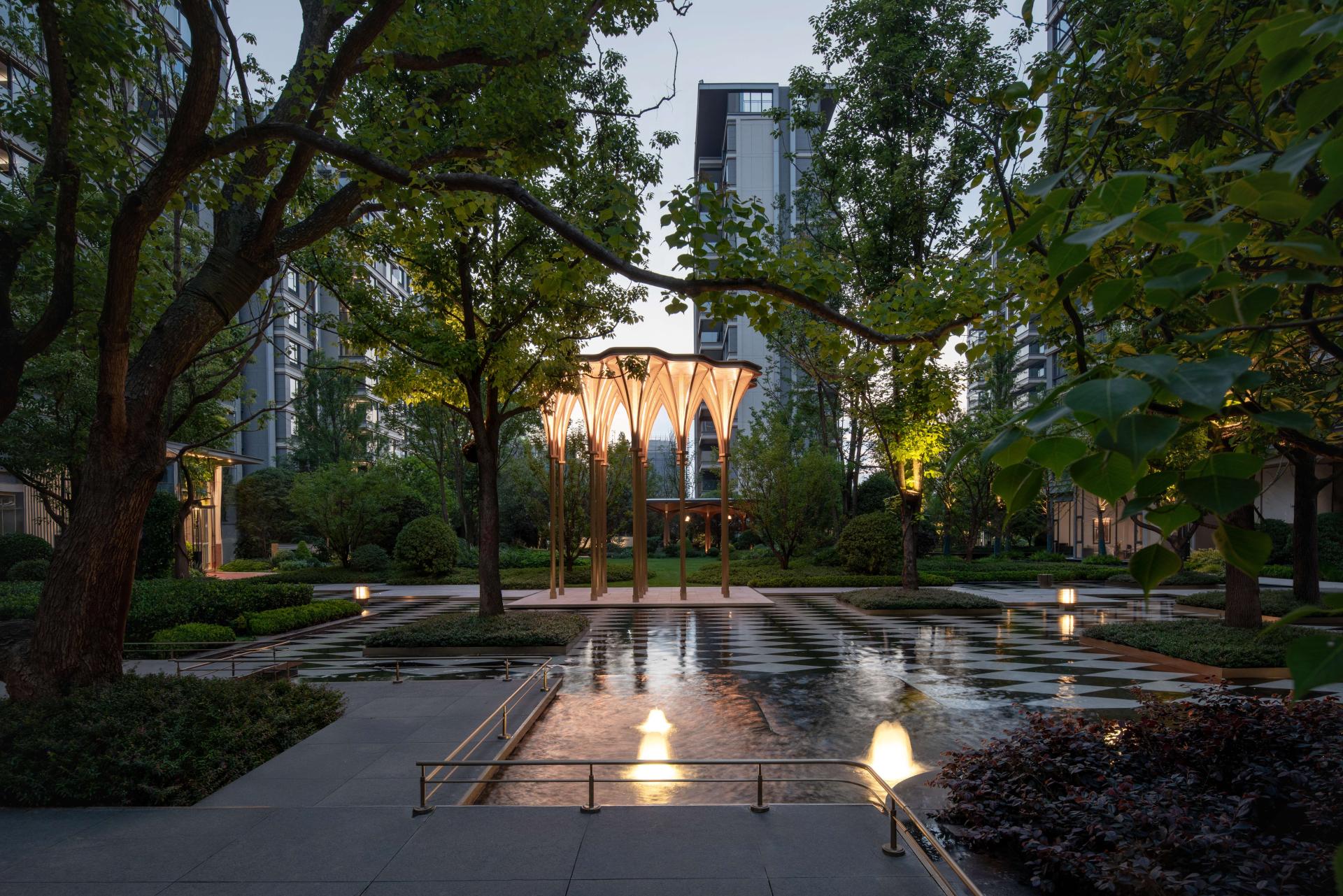 Drawing core inspiration from "Shu embroidery" (Sichuan's traditional embroidery art), the landscape design for Greentown PHOENIX MANSION spans 101 mu, treated as an "embroidery hoop" to craft a spatial layout of "one axis, two gardens, and sixteen parks."