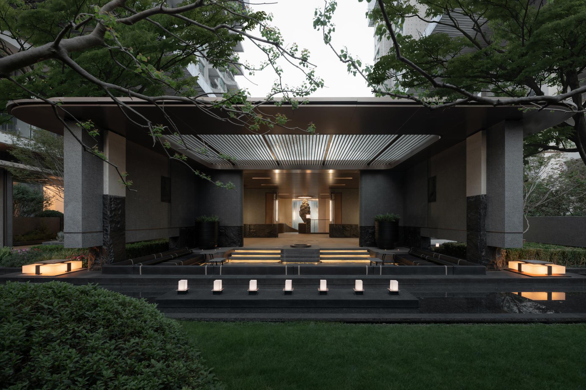 The arrival experience begins with a 70-meter grand entrance, its form evoking dragon scales and phoenix wings, symbolically welcoming residents home.