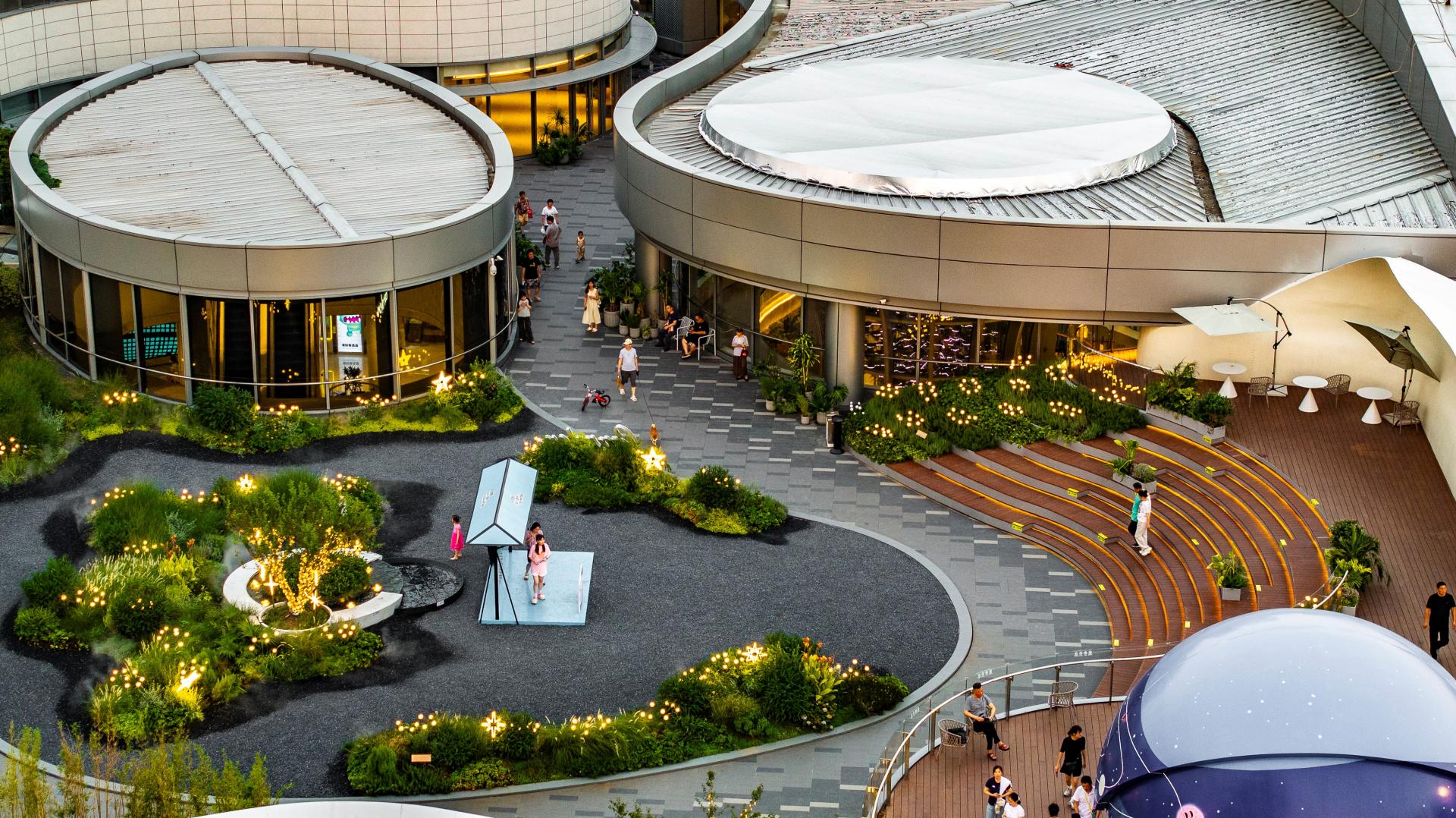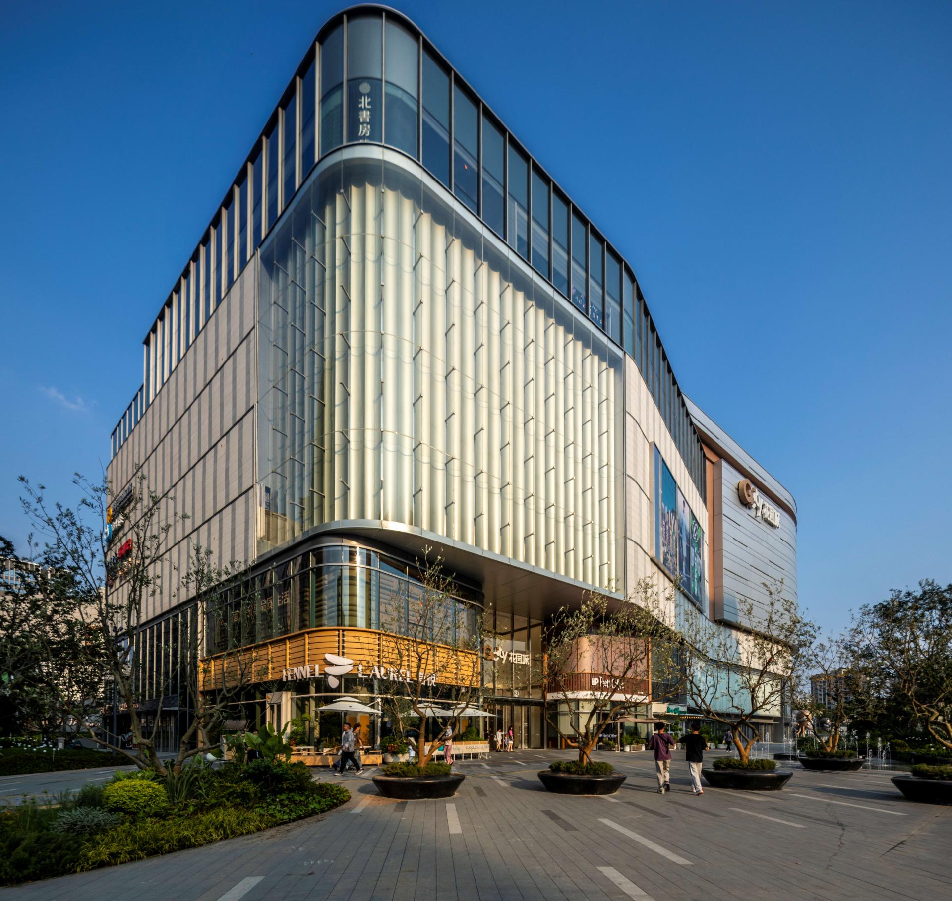 From a 3D LED façade at the main entrance—now a Nanjing nightscape icon—to the glass-walled “Starry Sky Garden” and vertical greenery on upper floors, the complex blends retail, leisure, and nature in one platform.