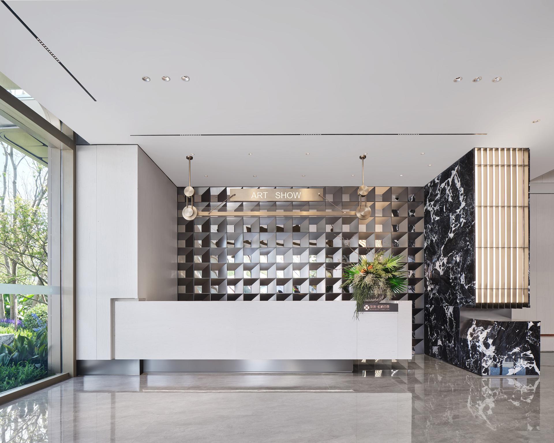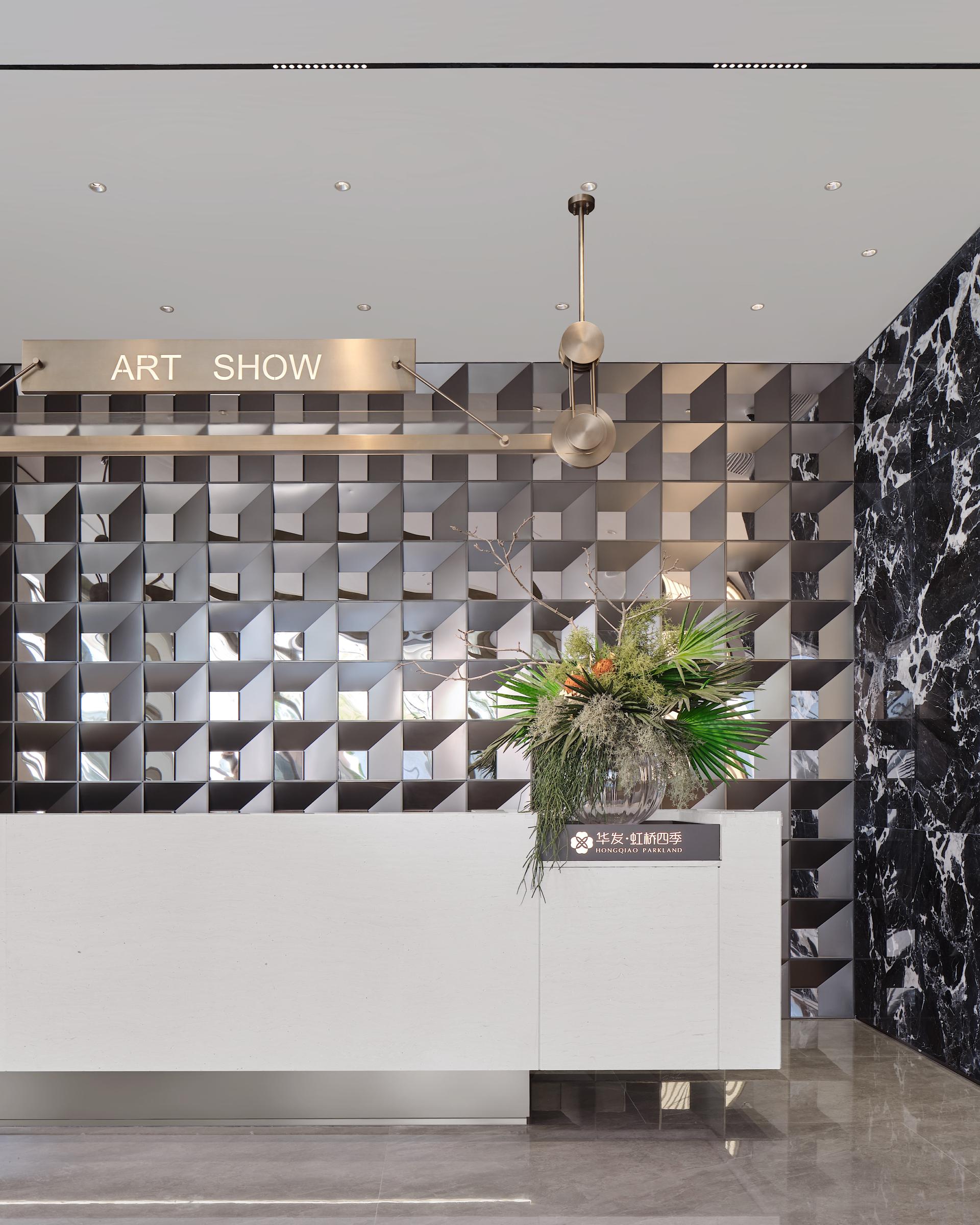 The site originally featured ornate street-facing Shikumen buildings—symbols of Shanghai’s "home gate"—built in 1915 as a tailor shop and pawnshop. These structures embodied Shanghai-style culture, Shikumen alleyways, historical photos, and urban memories. The project reinterprets Shikumen, a uniquely Shanghai architectural style blending Eastern and Western influences, often seen as an emblem of the city’s modern urban heritage. Design elements like columns and gates are echoed in the metal grille walls of the reception and display area. Material finishes include Niccolo Stone walls, Fendi Grey marble flooring, accented with Bvlgari Black marble and metal frames, creating a versatile, modern Shanghai-style sales gallery.