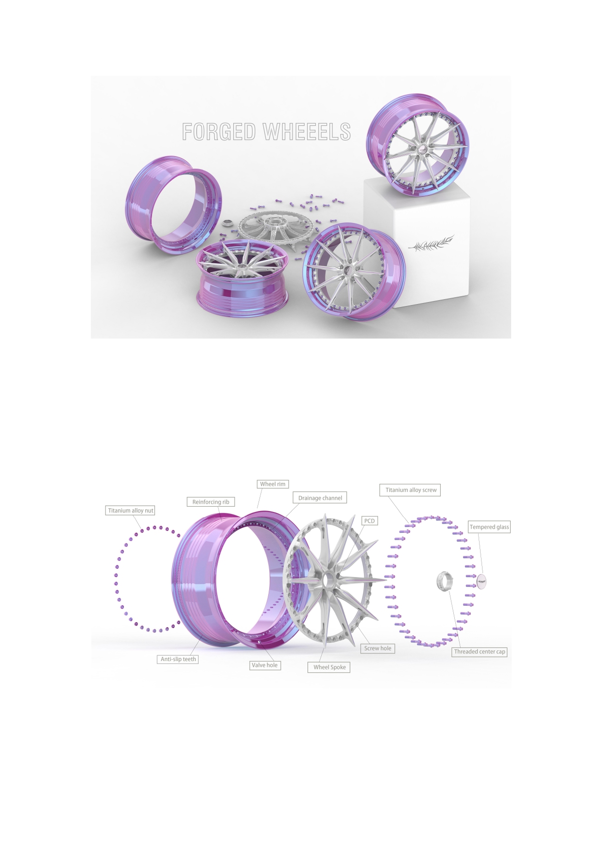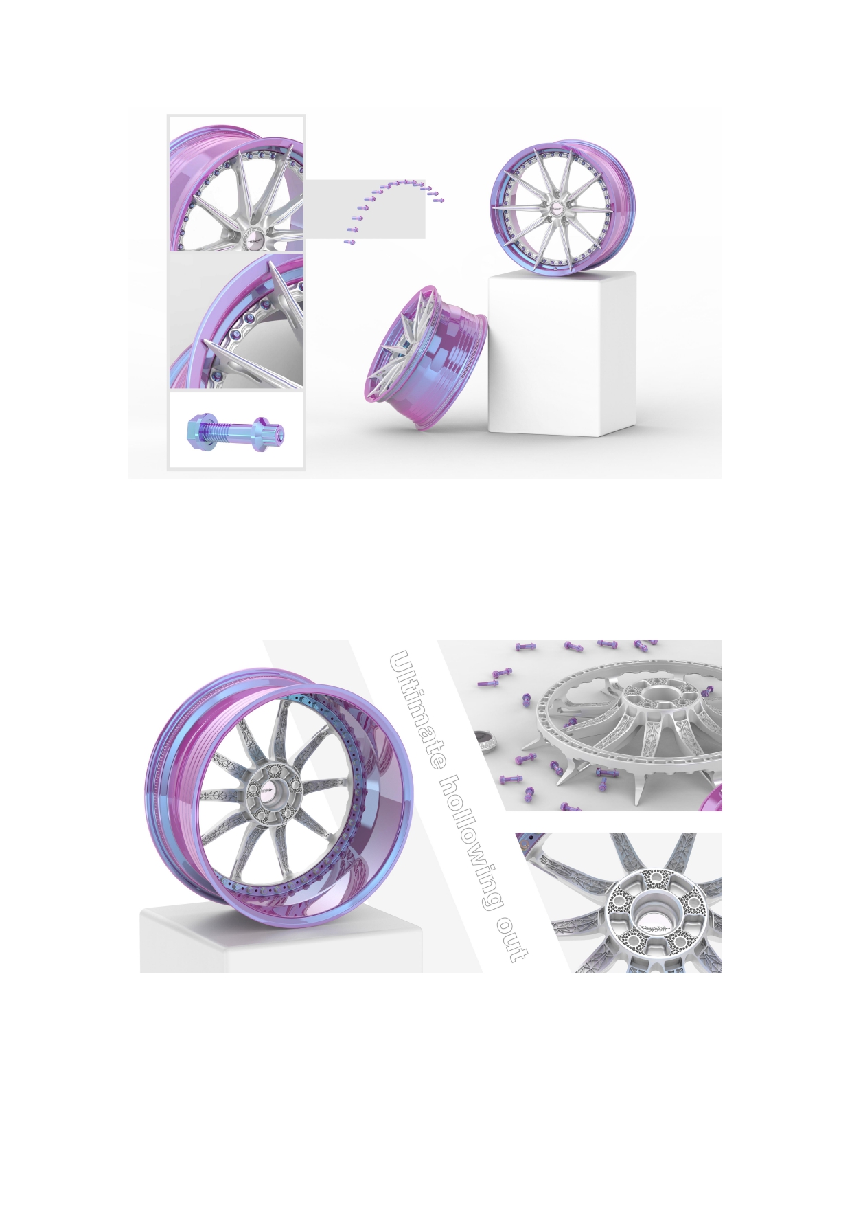 Secured by forty high-strength titanium bolts, the union of rim and hub is uncompromising in precision. At the center, the composite hub cover—crafted from high-strength glass and threaded aluminum—becomes a crystalline signature, refracting light like the heart of a machine built with soul.