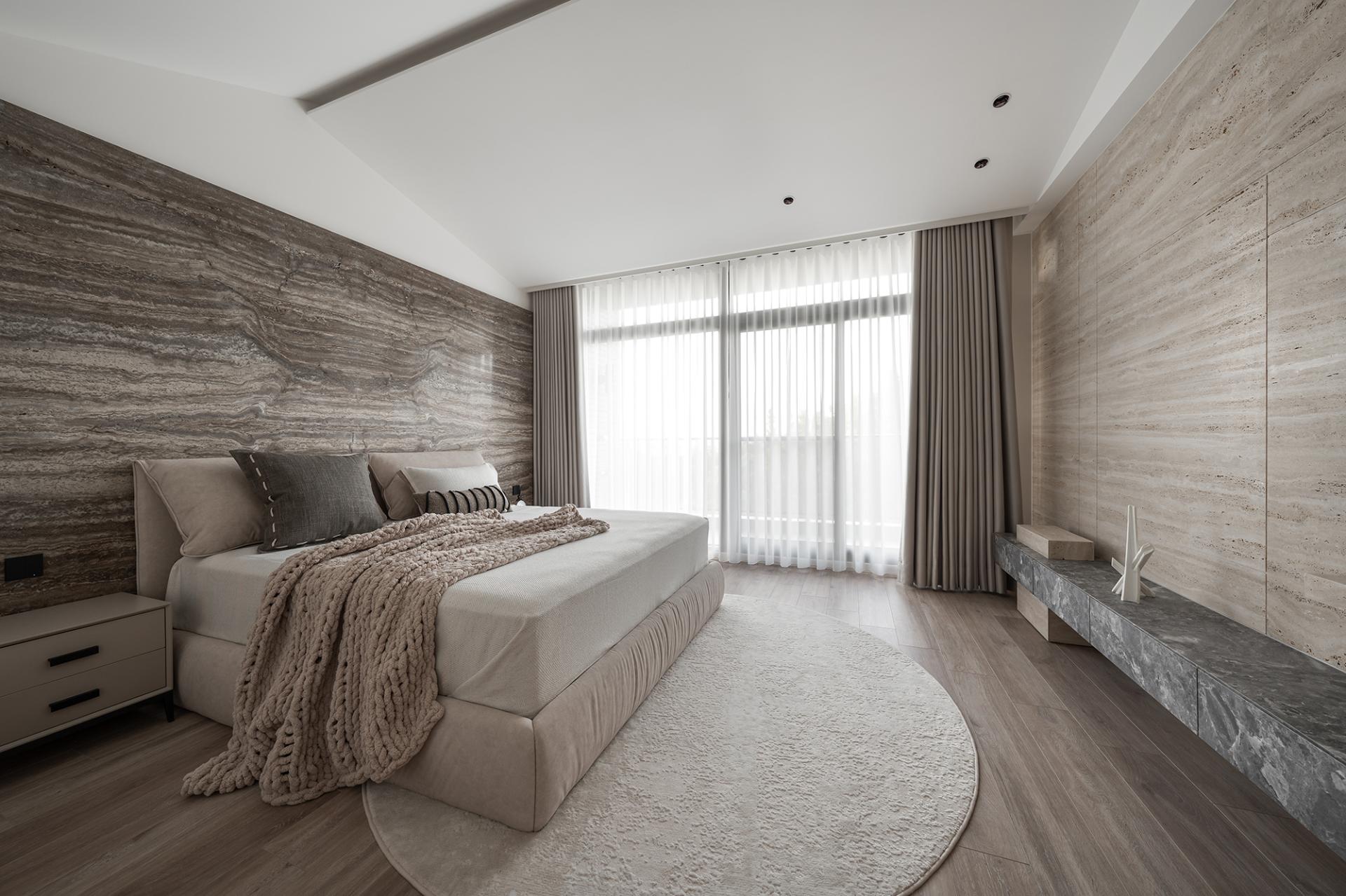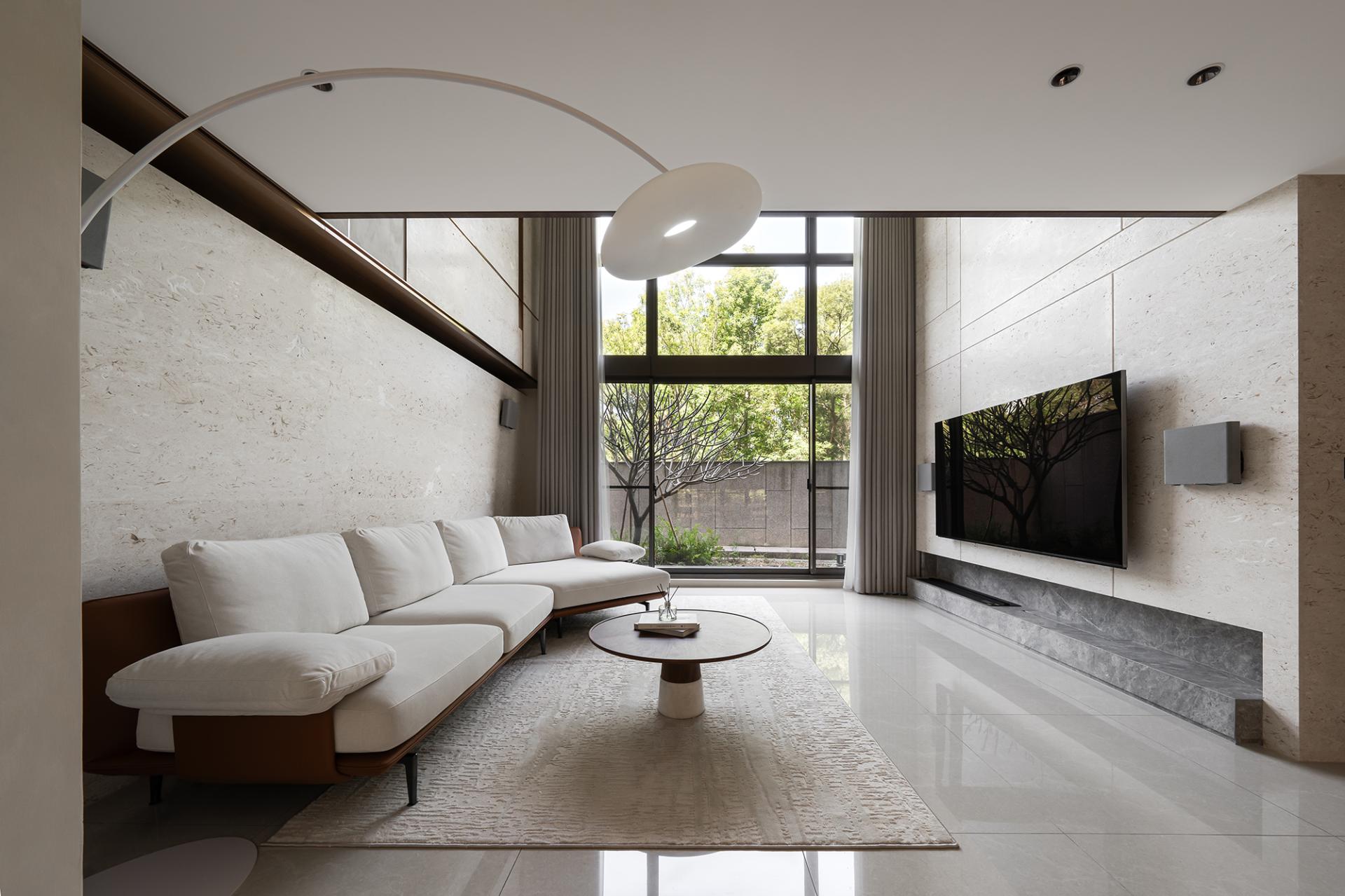 This project features a stunning modern villa, gracefully nestled within a lush landscape that offers a harmonious connection to nature. Abundant sunlight streams into the interior, enhancing the breathtaking views that surround the property. The design thoughtfully embraces the concept of “layered living,” skillfully employing light guidance, visual permeability, and a curated arrangement of diverse materials. These elements work together to create a captivating spatial rhythm that defines each area of the villa. In a seamless blend of wabi-sabi and minimalist styles, the villa showcases a sophisticated color palette dominated by rich browns, crisp whites, and soft grays. This choice not only highlights the raw textures of the materials but also elevates their interaction with natural light, resulting in an atmosphere that is both stable and vibrantly alive. Ultimately, this carefully crafted living space invites residents to experience a profound connection to their environment while enjoying the comforts of modern living.