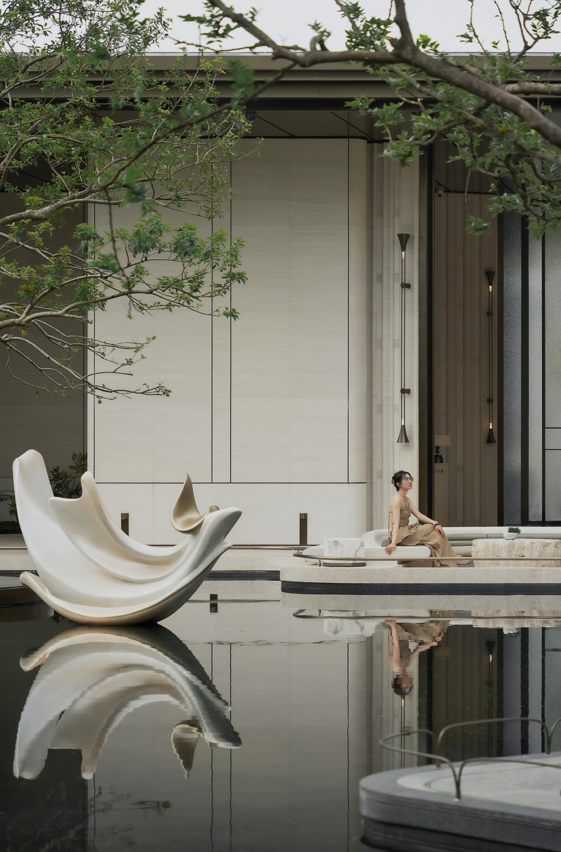 The cantilevered Tea Pavilion floats like a glowing amber jewel box, its glazed facade embodying centuries of craftsmanship in a luminous glow. Inspired by Aman’s sacred tree courtyards, the Tree Theatre centers on a grand hackberry whose canopy cascades like a verdant throne. Framed by mirror pools and a curtain of trees, this sanctuary invites rest, reflection, and deep emotional resonance—anchoring the brand’s philosophy of soulful placemaking.