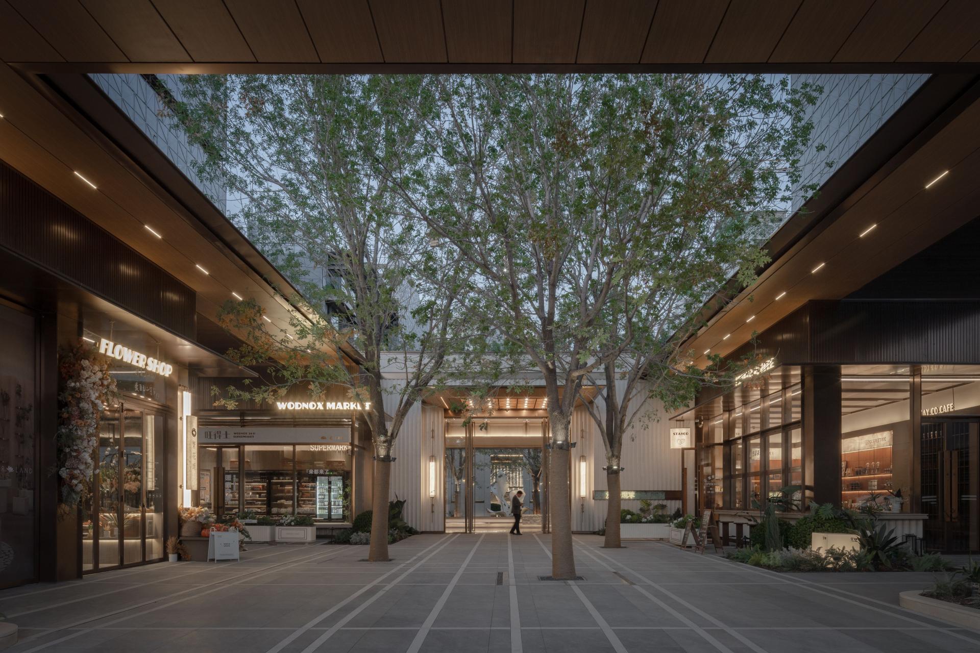 The journey begins with a sanctuary for the mind, setting a serene tone. Cascading water orchestrates an aural guide, composing a natural symphony. A mirror pool reflects the seasonal silhouettes of two Shantung maples (Acer truncatum) – tree shadows, ripples, and shifting daylight converge into a living canvas, fragmenting time into liquid paintings. A 1,300 m² retail promenade unfolds naturally, bridging urban rhythm and quiet greenery, where footsteps balance commerce and nature.
