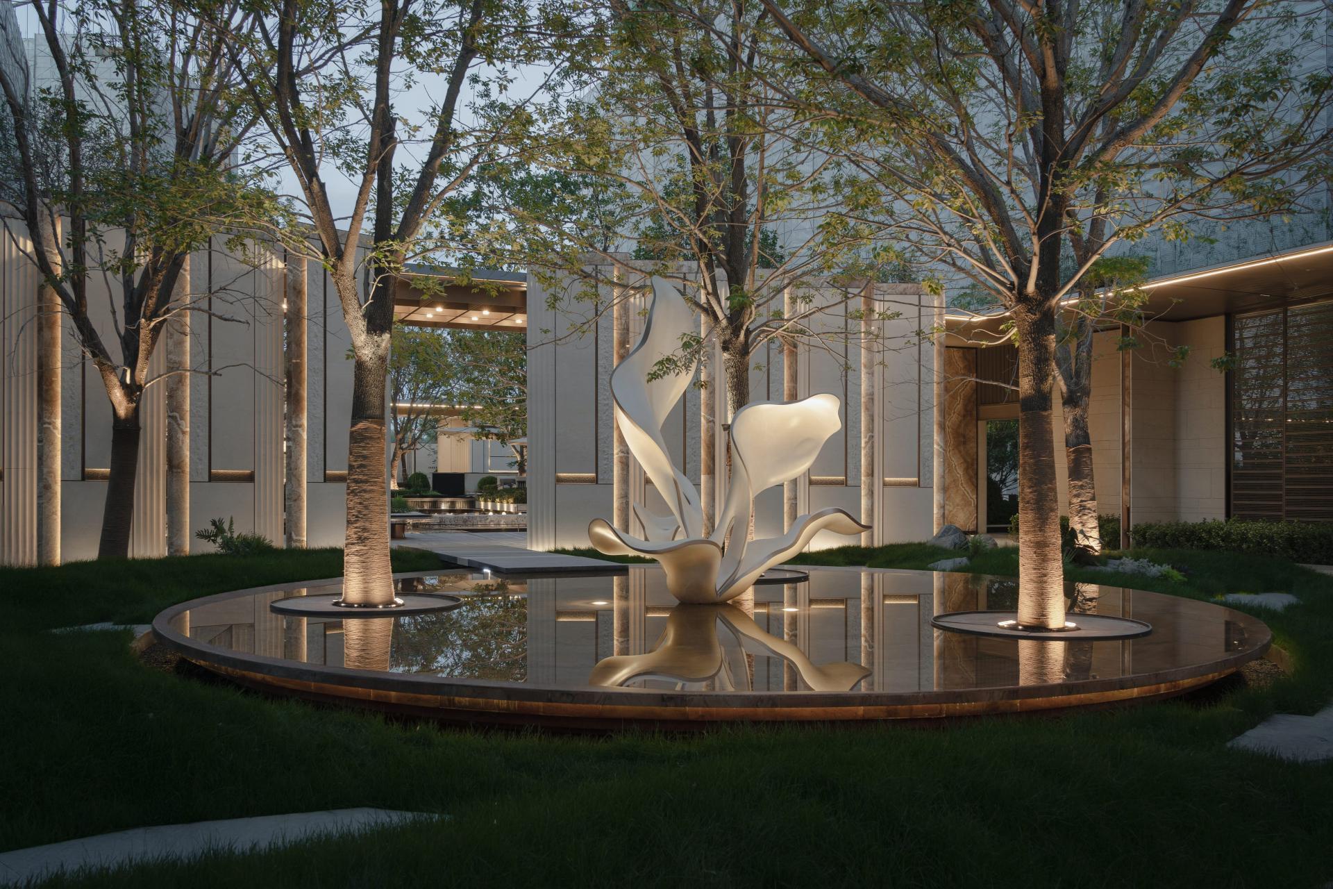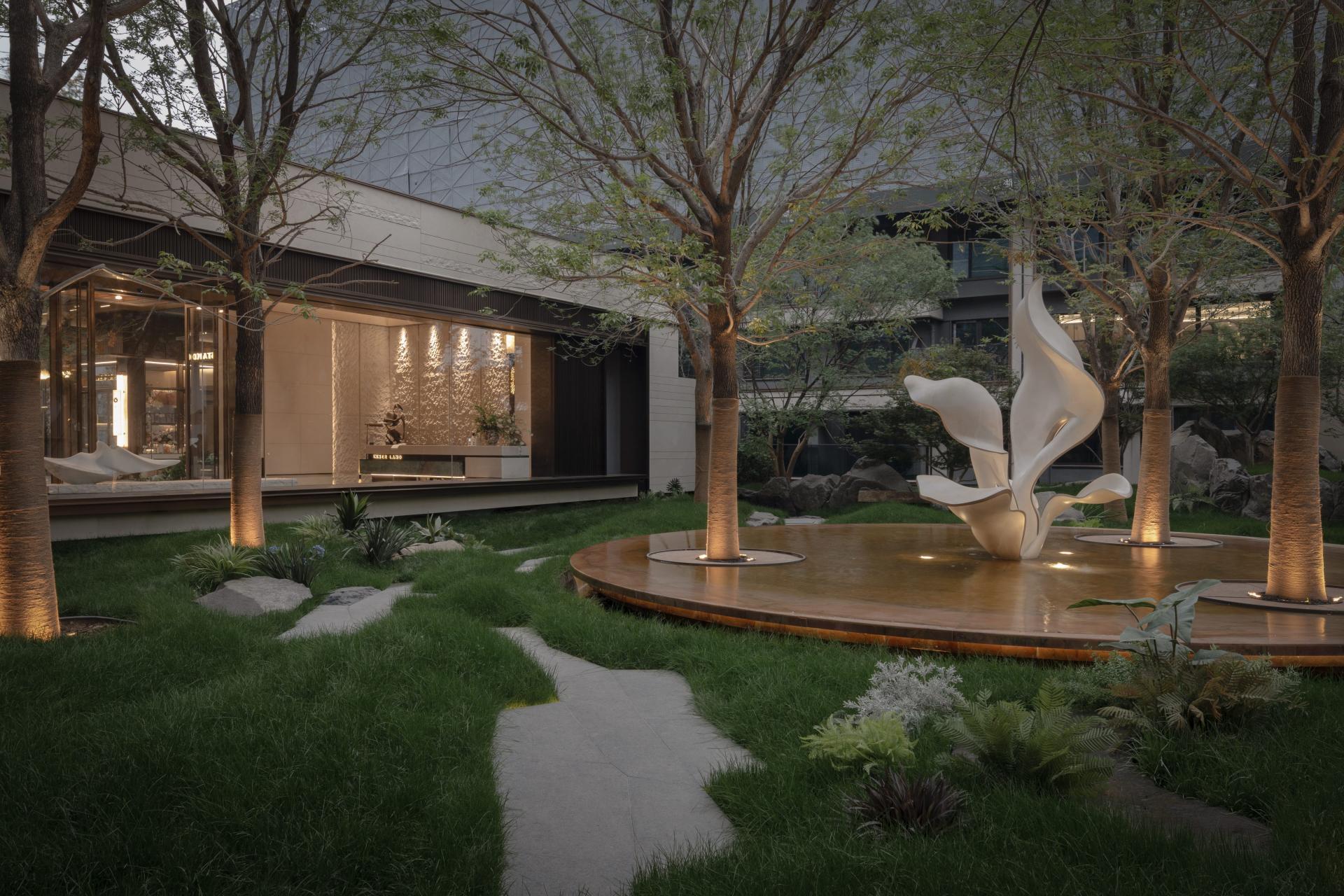 Mirroring CELINE’s material palette, the 600 m² premium waterfront adopts its signature stone. Centered by a 100 m² rainbow onyx basin, the Orchid Heart in Seclusion magnolia sculpture rises, cradled by goldenrain trees (Koelreuteria paniculata). At dusk, courtyard lights descend like stars onto the water, mirroring the Milky Way—Thoreau’s Walden dream, rendered in ethereal ripples for the solitary soul.