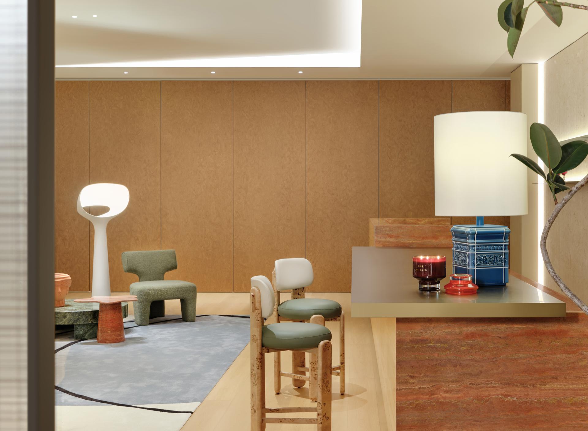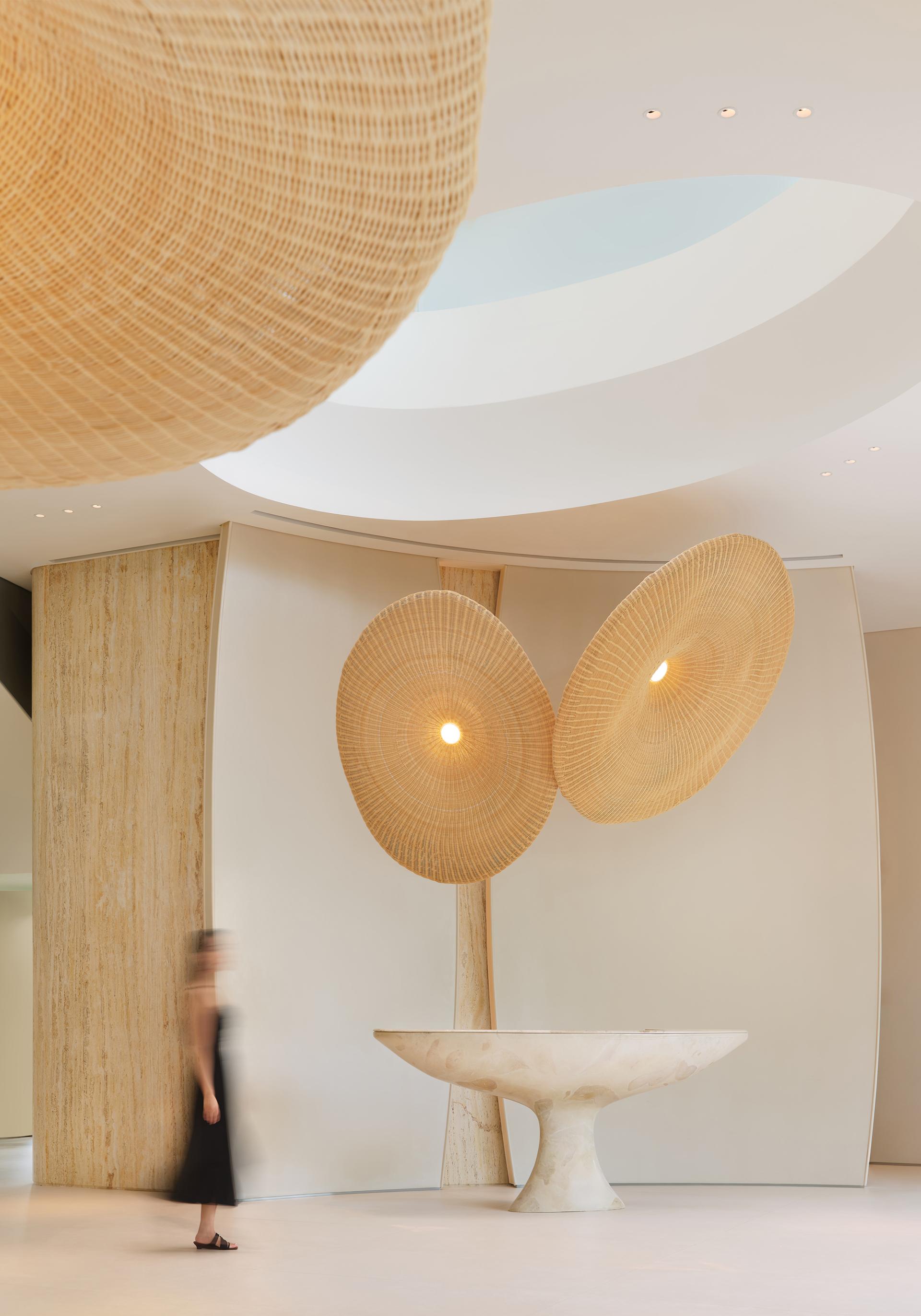 Rattan installations, resembling mushrooms after rain, breathe organic life into the space.